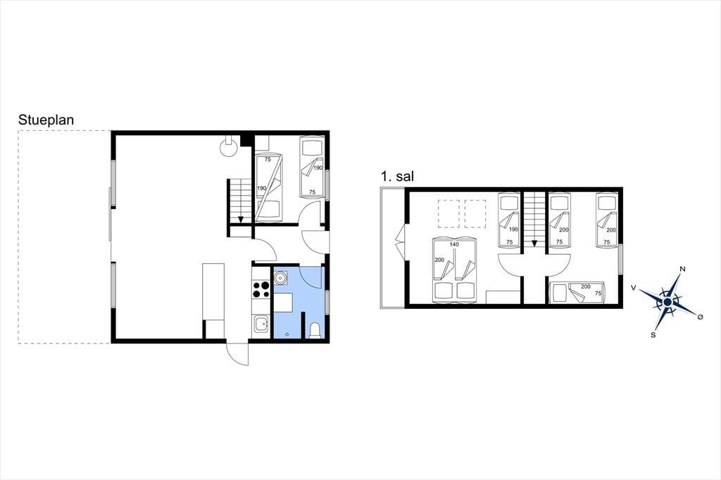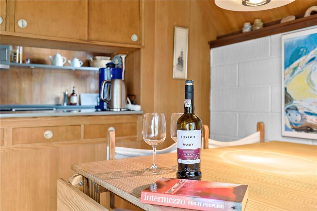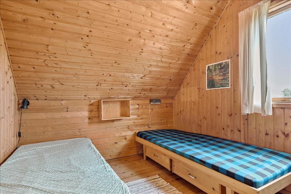 Huset er indrettet med en dejlig stue, hvor du virkelig mærker den gode stemning. Her kan der spilles et slag kort eller du kan fordybe dig i en god bog imens ilden syder i brændeovnen. I køkkenet kan I hjælpes med at tilberede en god frokost. Der er værelse med køjesenge og enkeltseng og badeværelse med brus. På 1 sal er der to soveværelser, master bedroom med dobbeltseng og en ekstra seng samt udgang til balkon. Og der er værelse med 3 enkeltsenge, alle senge måler 80 x 190 cm, dobbeltseng 140 x 200 cm. I den solrige gårdhave kan der både grilles, hygges eller hvad med et godt glas vin, mens du nyder solens stråler. Husk også at benytte den udvendige bruser med både koldt og varmt vand.