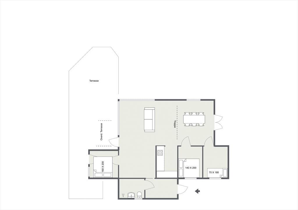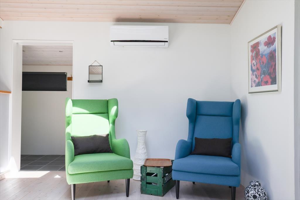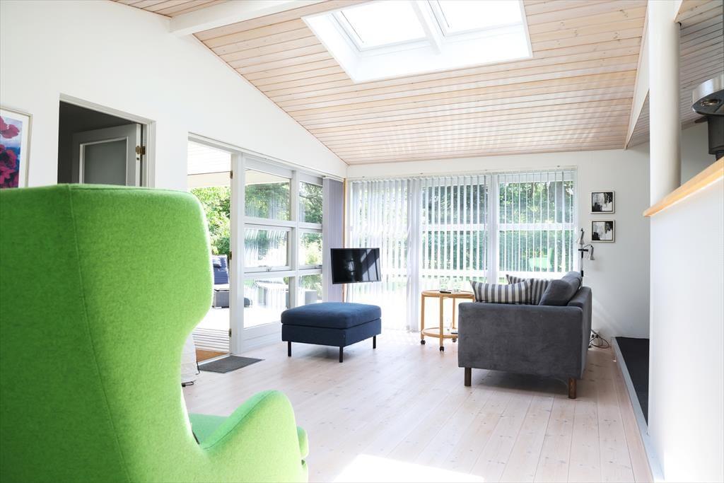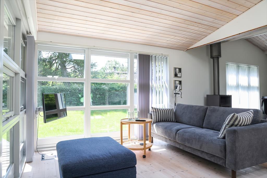 Inden døre mødes du af et lyst og indbydende sommerhus, der gennem årene er løbende renoveret med respekt for den hyggelige ferie- og sommerhusstemning. Særligt det store køkken/alrum der er husets hjerterum vil kunne bringe mange hyggelige stunder, her kan alle samles til en hyggelig aften. De kølige sommeraftener kan nydes på sofaen med en god bog og ild i brændeovnen. Fra køkken/alrum er der også udgang til husets store terrasseareal både overdækket og åbent.