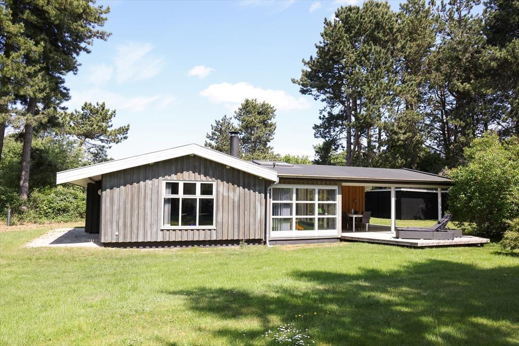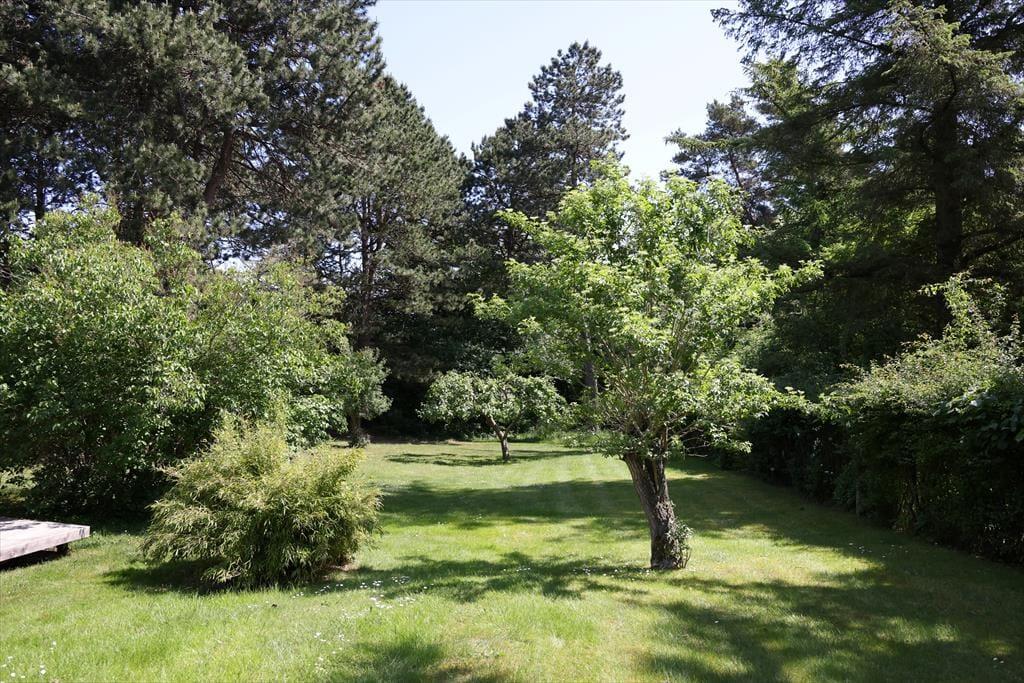 Her kan ferien nydes i ro og mag på en dejlig grund med skønne træer og buske. Der er kun 1000 meter til vandkanten på den skønneste og børnevenlige sandstrand.