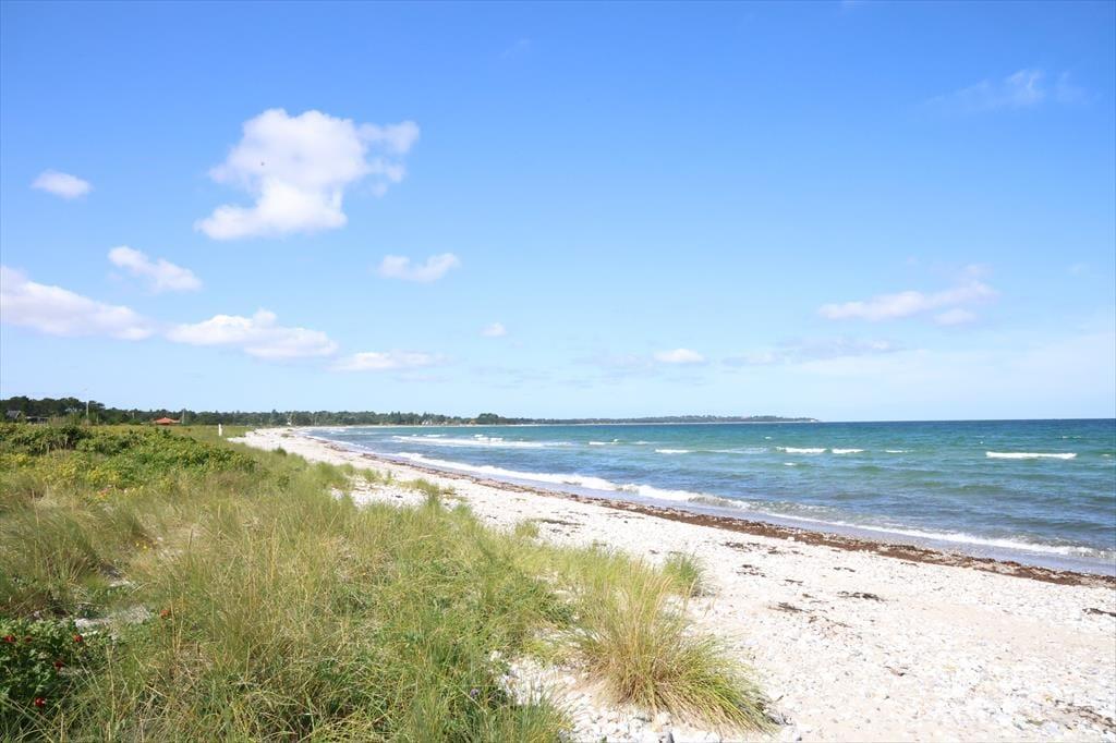 Sommerhuset er beliggende i et roligt område på en stor grund med masser af plads til udendørs aktiviteter. Grunden er med god randbeplantning, så du kan sidde ude i ugenerte omgivelser og nyde solen. På sommerhusets store terrasseareal er der rig mulighed for at ligge og slikke sol, hvorefter alle kan samles til en god middag Er det blevet tid til en dukkert, så er det bare at smide håndklædet over skulderen og så er der kun ca. 1000 meter til vandkanten.