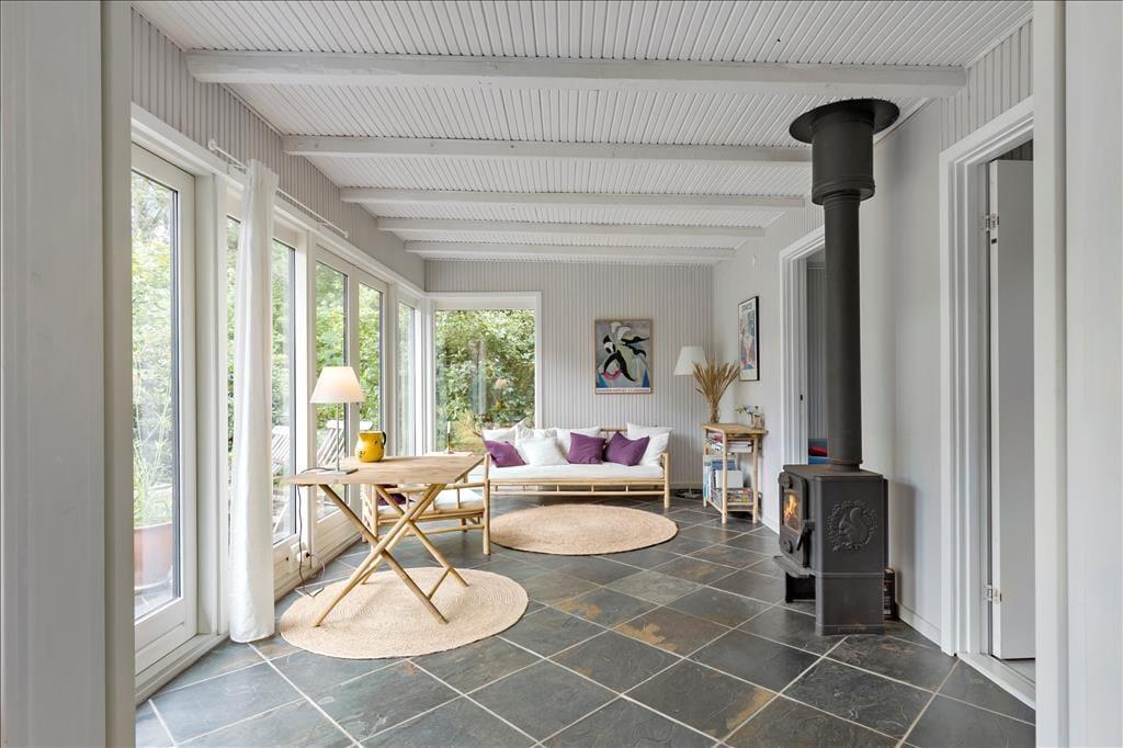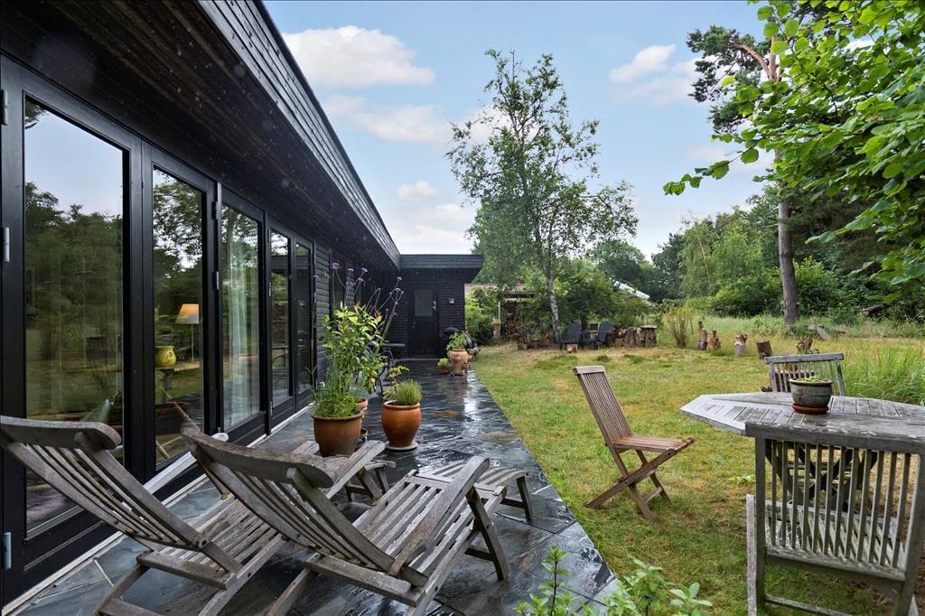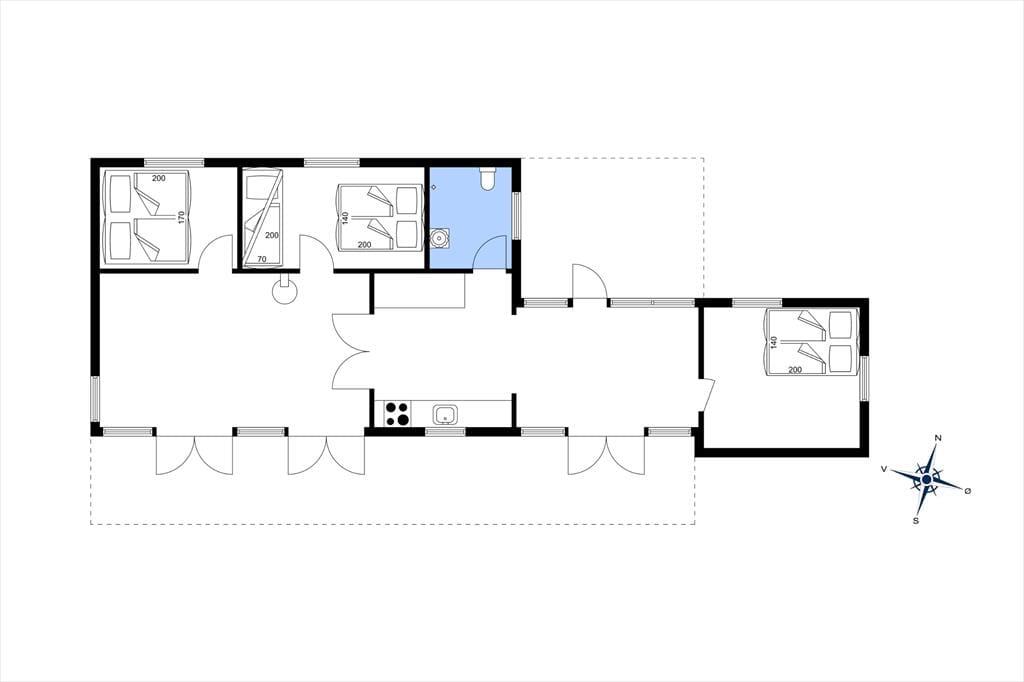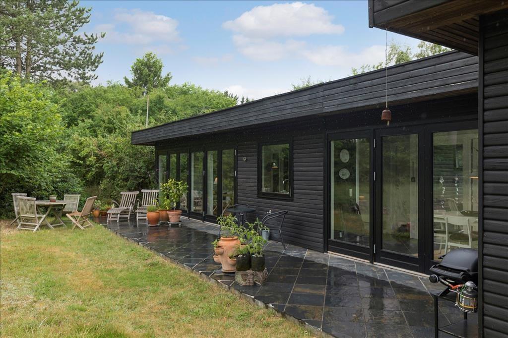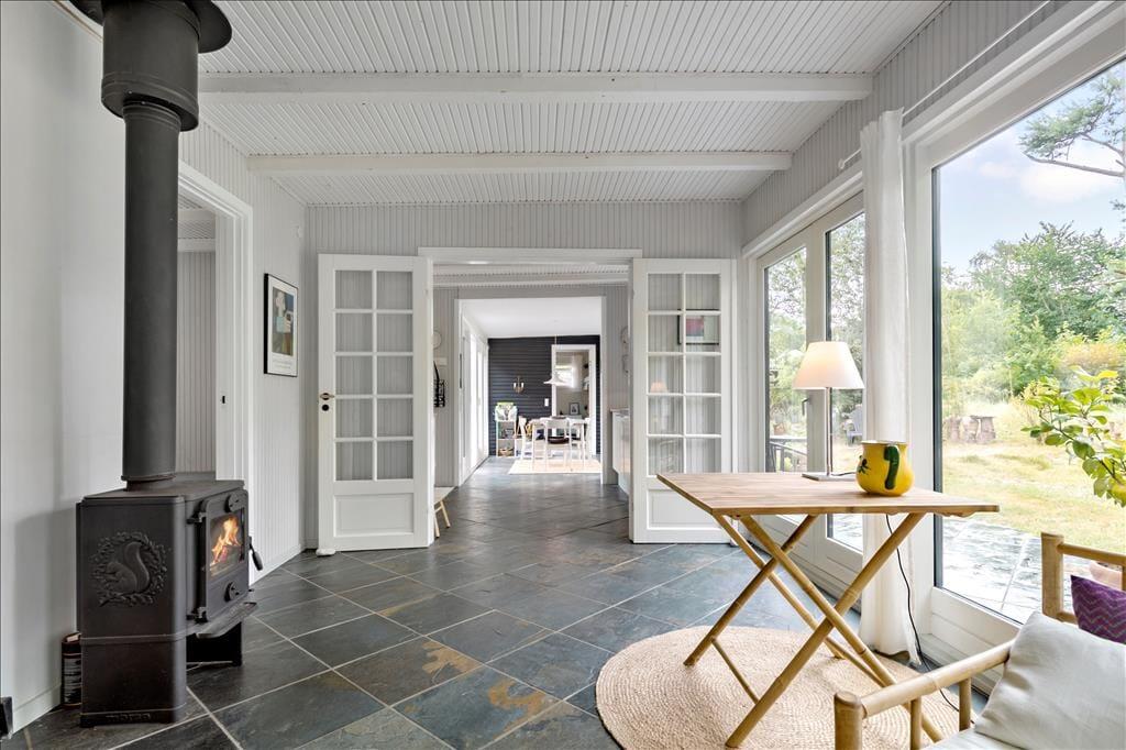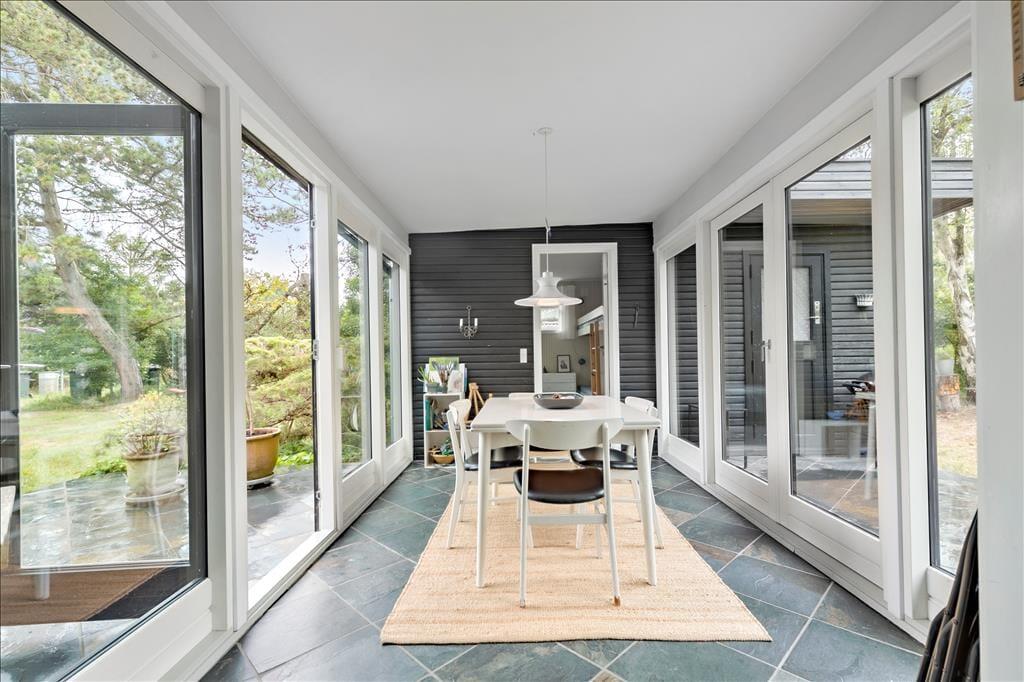 Huset er lyst rummeligt og indeholder stue med store panoramavinduer og udgang til den hyggelige terrasse. Der er 3 gode soveværelser med i alt 3 dobbeltsenge (180x200, 140x200, 140x200) samt 2 køjesenge. Bemærk, at der ingen skabsplads er, men derimod knager samt bokse under senge.