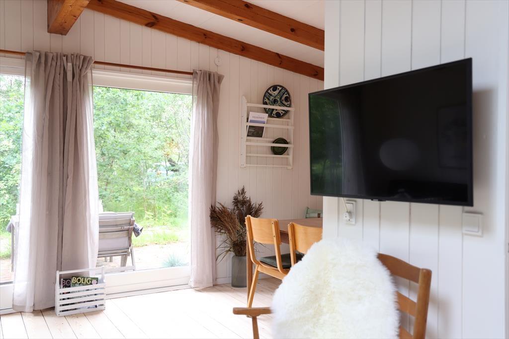 Sommerhuset har i 2024 gennemgået en større renovering og fremstår lyst og indbydende. De mange vinduer giver masser af lysindfald og udsyn fra huset og ud til den skønne naturgrund. Sommerhusets hjerterum er opholdsstuen og spisestuen i et, hvor mange gode stunder kan nydes med en god middag, eller med en god bog i sofaen imens der lyttes til at brændeovnen knitrer. I huset er der 2 gode værelser, det ene kan benyttes som familieværelse med køjeseng og en skydedør imellem ind til dobbeltsengen. I husets andet store soveværelse kan du ligge i sengen og vågne op med udsigten til den skønne naturgrund.