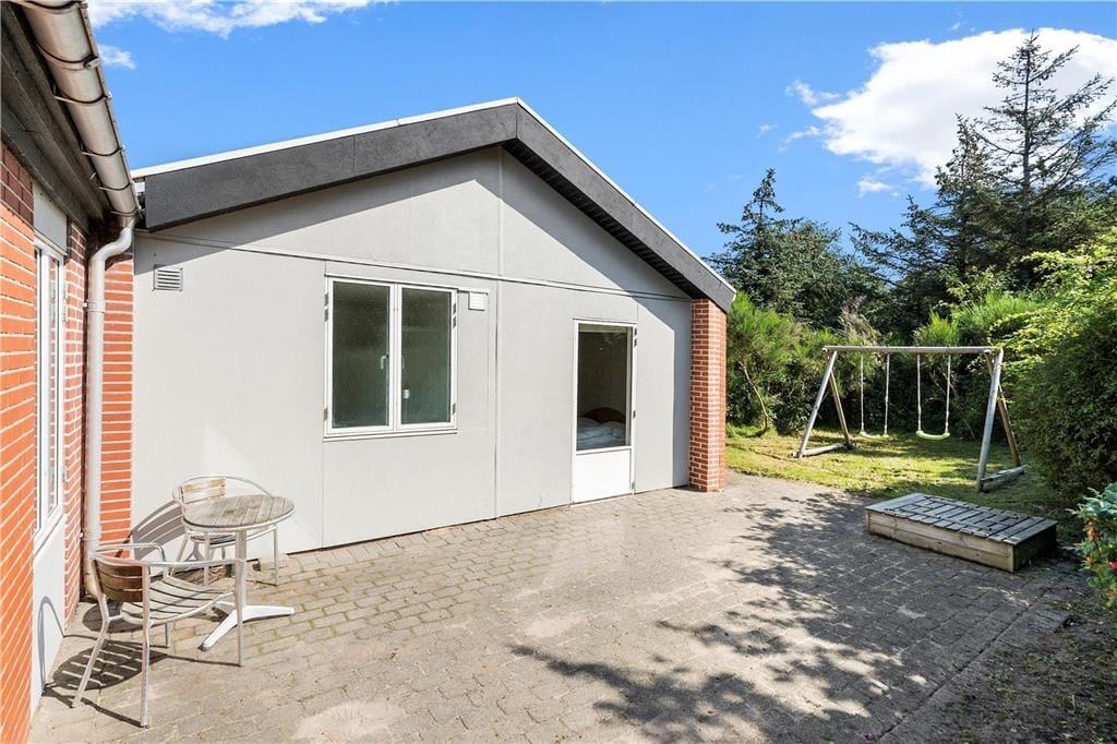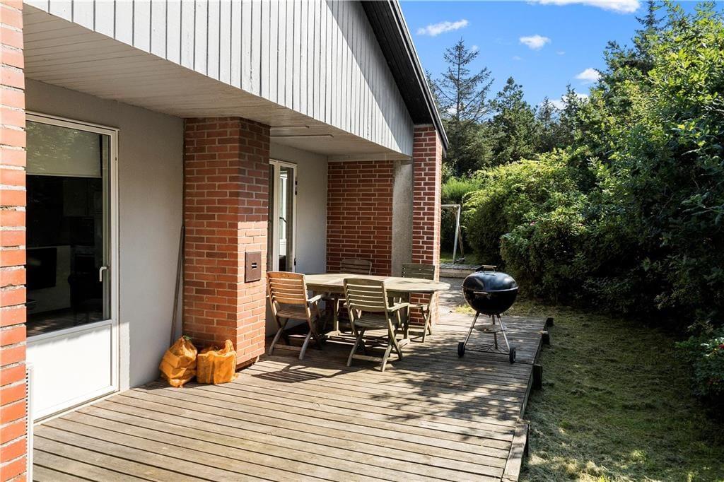 Udendørs venter en dejlig terrasse, hvor du kan nyde de varme solstråler midt på dagen. Her er det perfekte sted at læne sig tilbage, slappe af og nyde et måltid sammen. Lad grillen varme op og server lækker grillmad, som hele familien kan samles om. For dem, der elsker at tilbringe tid med deres firbenede venner, er det store græsareal perfekt til hunden, der kan snuse og udforske naturen. Find en stol og placer den under den åbne himmel, og lad en kold drink køle dig ned, mens solen varmer dit ansigt. Dette er den ideelle ramme for afslapning og samvær i ferien.
