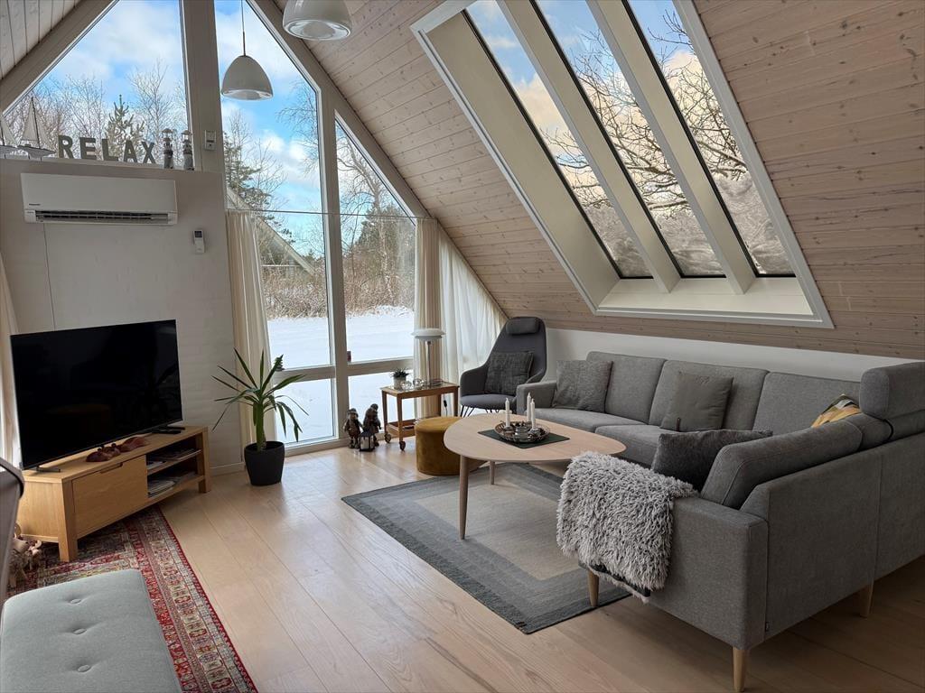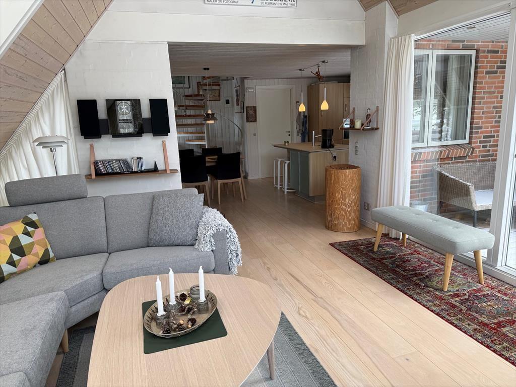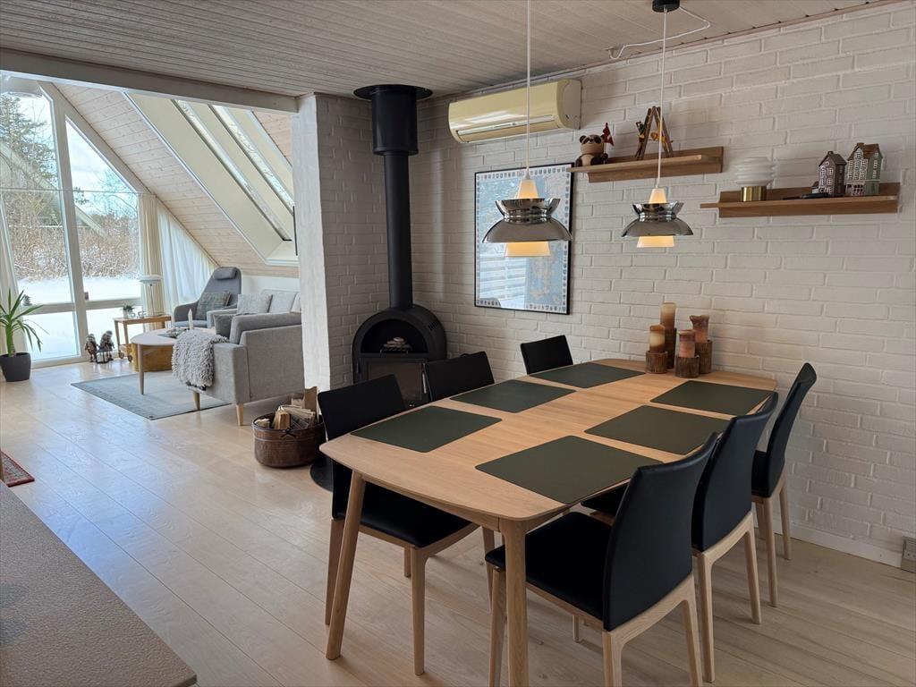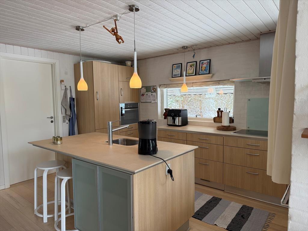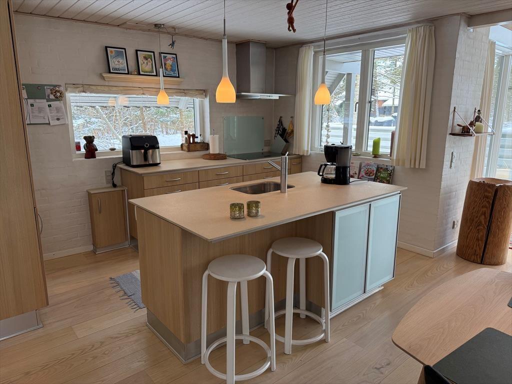 Dette hyggelige sommerhus i Nr. Fjand byder velkommen med god plads til hele familien – også familiens firbenede medlem. Indenfor er huset dejligt lyst og indbydende med loft til kip og store vinduer, der giver et fantastisk lysindfald og skaber en skøn, åben atmosfære. Stuen fungerer som familiens naturlige samlingspunkt, hvor der er plads til afslapning, brætspil og hyggelige stunder sammen. Det moderne køkken ligger i åben forbindelse med opholdsrummet, så I nemt kan være sammen på tværs af madlavning og hygge.