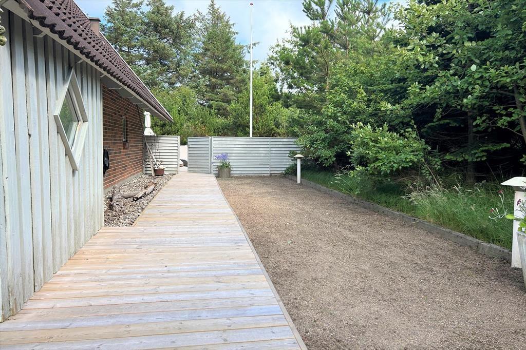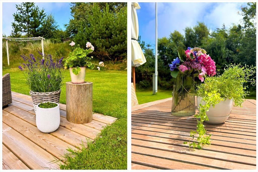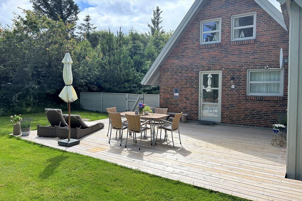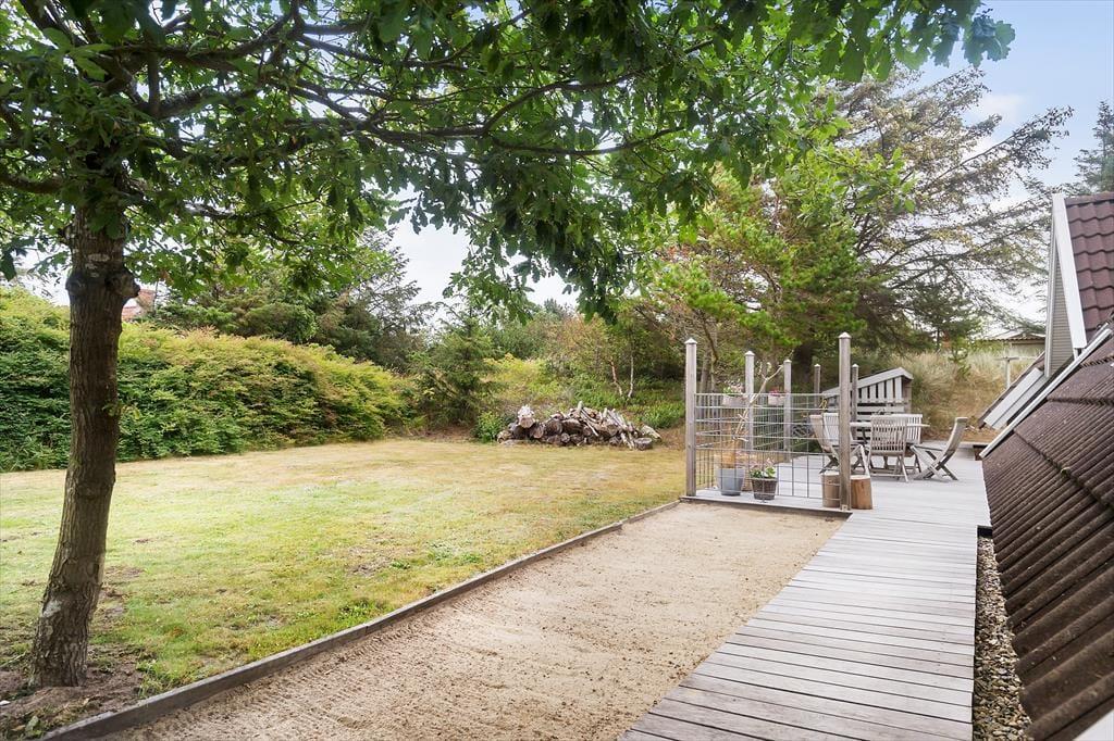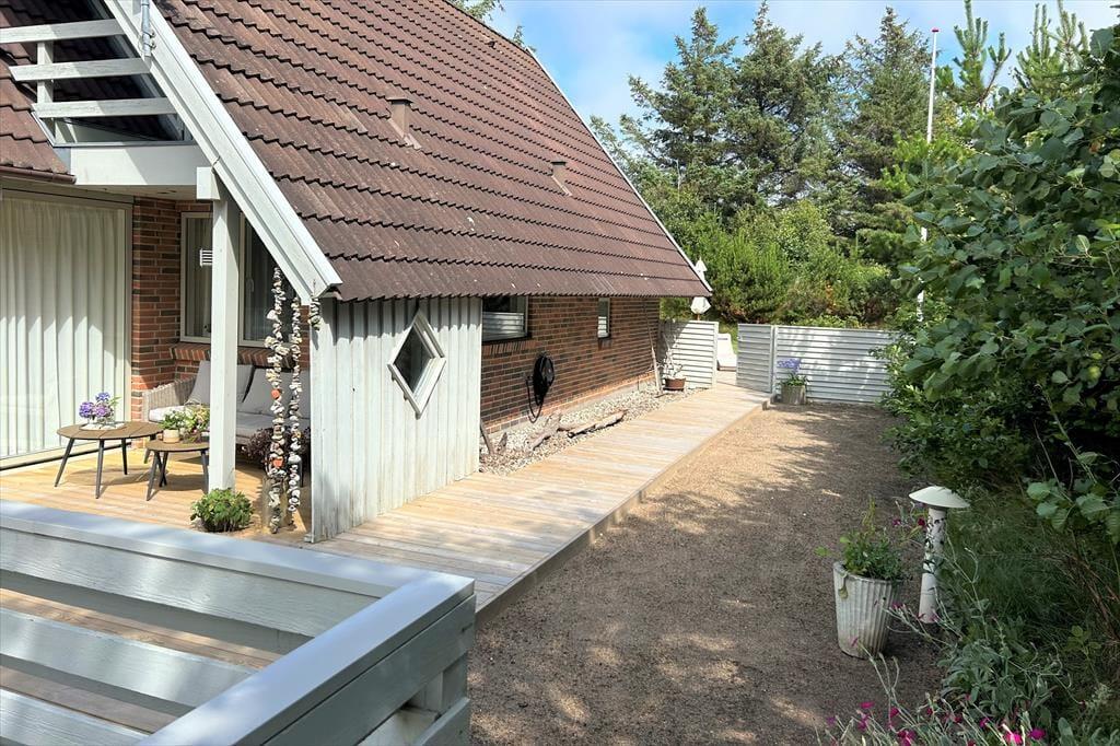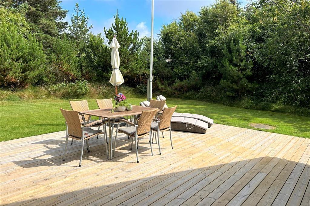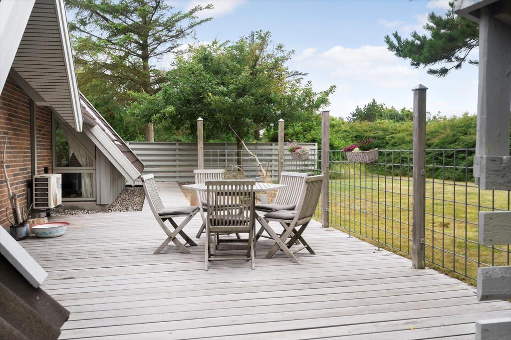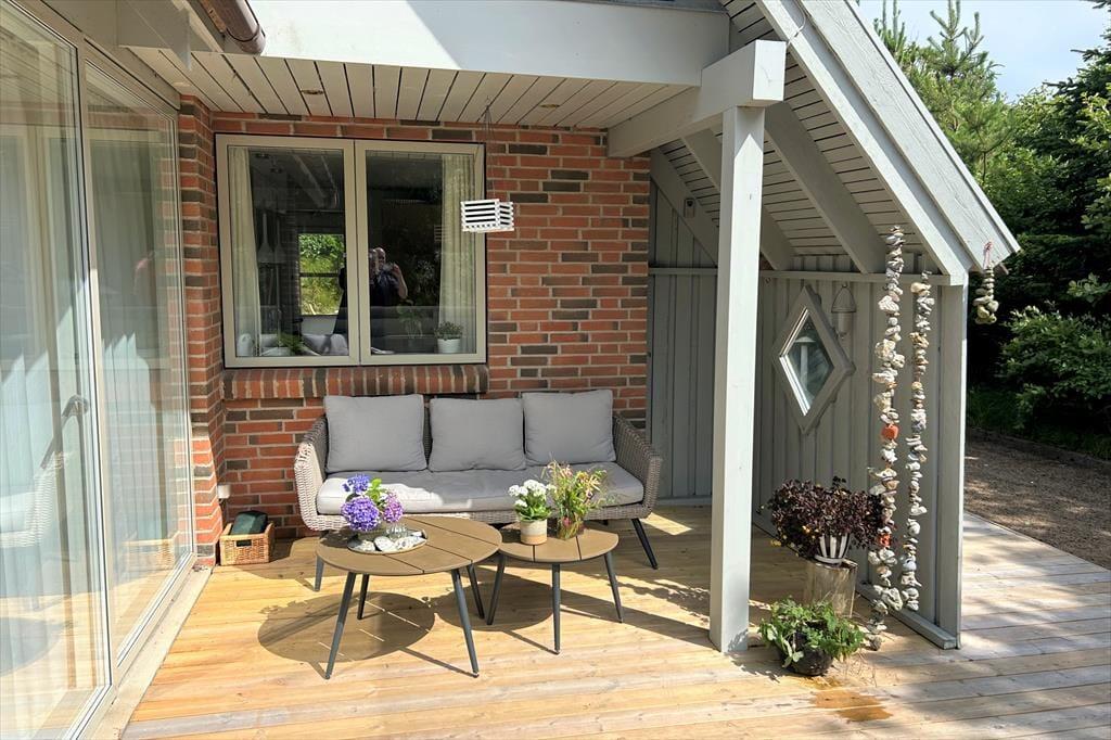 Udelivet får skønne rammer omkring huset. Sommerhuset har flere terrasser, så I altid kan finde et solrigt og læfyldt hjørne – uanset tidspunkt på dagen. En af de mindre terrasser er overdækket og giver mulighed for at nyde udelivet, selv hvis vejret skifter. Haven er indhegnet, så både børn og hund kan løbe frit og trygt rundt, mens de voksne læner sig tilbage og nyder ferien. Her er der plads til leg, afslapning og lange, rolige feriedage i det fri.