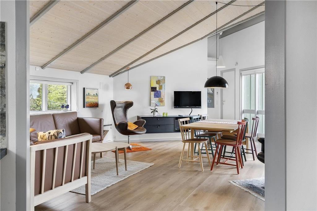 Dette hyggelige og moderniserede sommerhus i Nr. Fjand byder på god plads til hele familien og en dejlig feriestemning fra første øjeblik. Indendørs er huset lyst og indbydende med højt til loftet og komfortable møbler, der gør det nemt at slappe af og føle sig hjemme. Her er rig mulighed for at finde en hyggelig krog med en god bog og bare nyde stilheden og roen. Fra opholdsrummet kan I desuden nyde den flotte udsigt mod fjorden – et perfekt sted at starte dagen med morgenkaffen. Efter en lang dag ved Vesterhavet eller fjorden, som begge ligger tæt på huset, kan I forkæle jer selv i saunaen og lade kroppen falde helt til ro.
