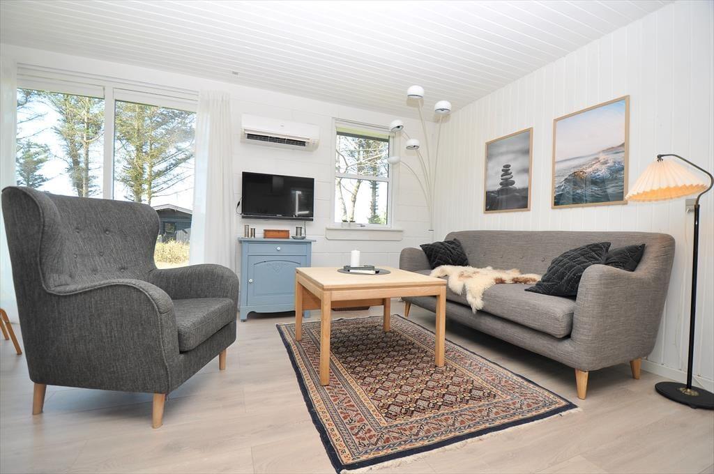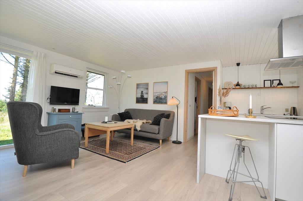 I Nr. Fjand finder I dette hyggelige og charmerende sommerhus med en skøn udsigt over Nissum Fjord. Huset er moderne indrettet, men har stadig den klassiske sommerhushygge, der får skuldrene til at sænke sig fra første minut. Køkkenet ligger i åben forbindelse med stuen, så her er det naturlige samlingspunkt for hele familien. Mens nogen tryller i køkkenet, kan andre slappe af i sofaen med en god bog, tage en omgang brætspil eller bare nyde hinandens selskab. Det er et feriehus, hvor nærvær og afslapning går hånd i hånd.