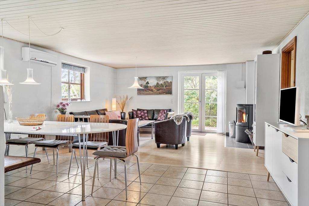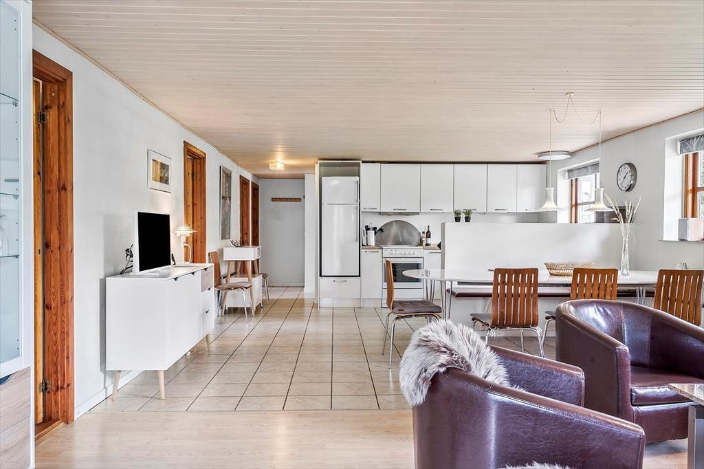 Smukke nøje udvalgte detaljer pryder det smukke feriehus og skaber en fantastisk rolig atmosfære, her kan I virkelig trække stikket og nyde den fantastiske ro der hersker over huset. Det skønne store køkkenalrum giver anledning til mange hyggelige stunder for hele familien, og står en af jer for aftensmaden mister I ikke kontakten til jeres familiemedlemmer. For ekstra hygge kan det anbefales at tænde op for den dejlige brændeovn og nyde varmen der spreder sig. Tænd op i husets skønne sauna og nyd dens varme der blidt omfavner jer.