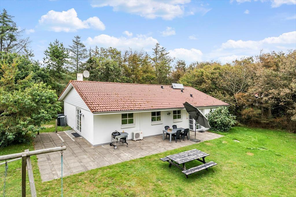 Dette dejlige feriehus er beliggende på en delvis lukket naturgrund hvor der er masser af plads til sjov og leg, og til familiens yngste er der opsat både sandkasse, gynger, vippe og en lille rutsjebane. På grunden er der fantastiske læmuligheder giver jer mulighed for at nyde solens stråler på trods af en kølige brise. Sæt jer på den dejlige terrasse og tænd op i grillen, smid bøfferne på og åben en flaske kølig vin og nyd solens sidste stråler inden solen begynder at gå ned.