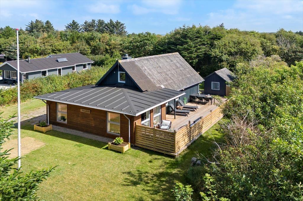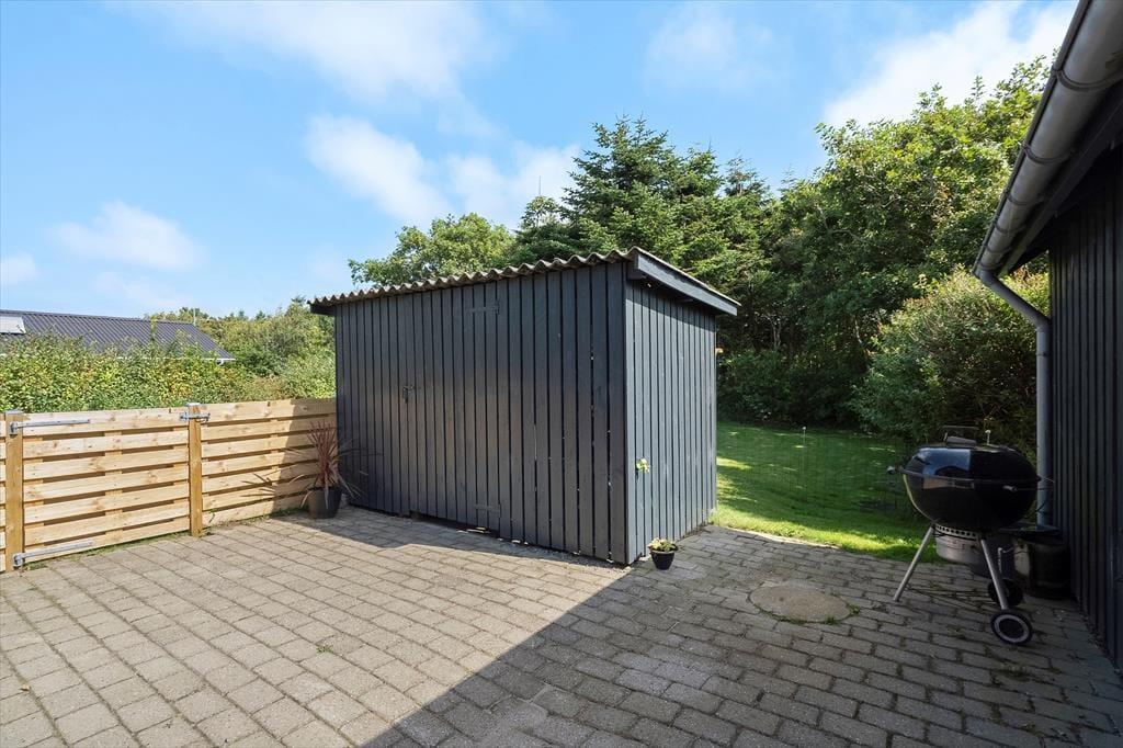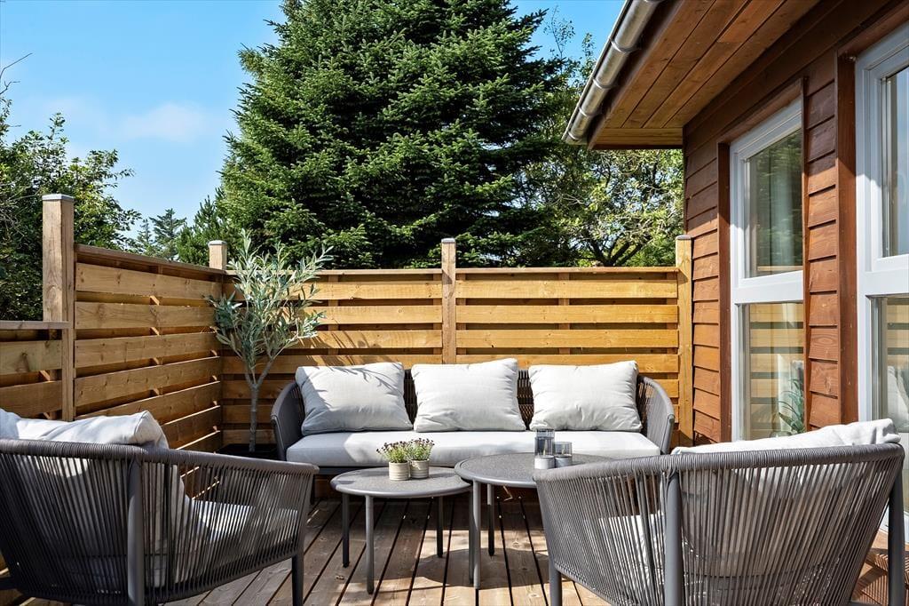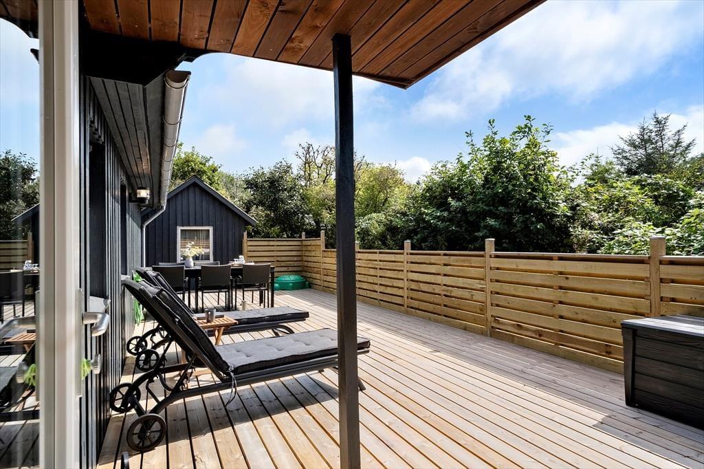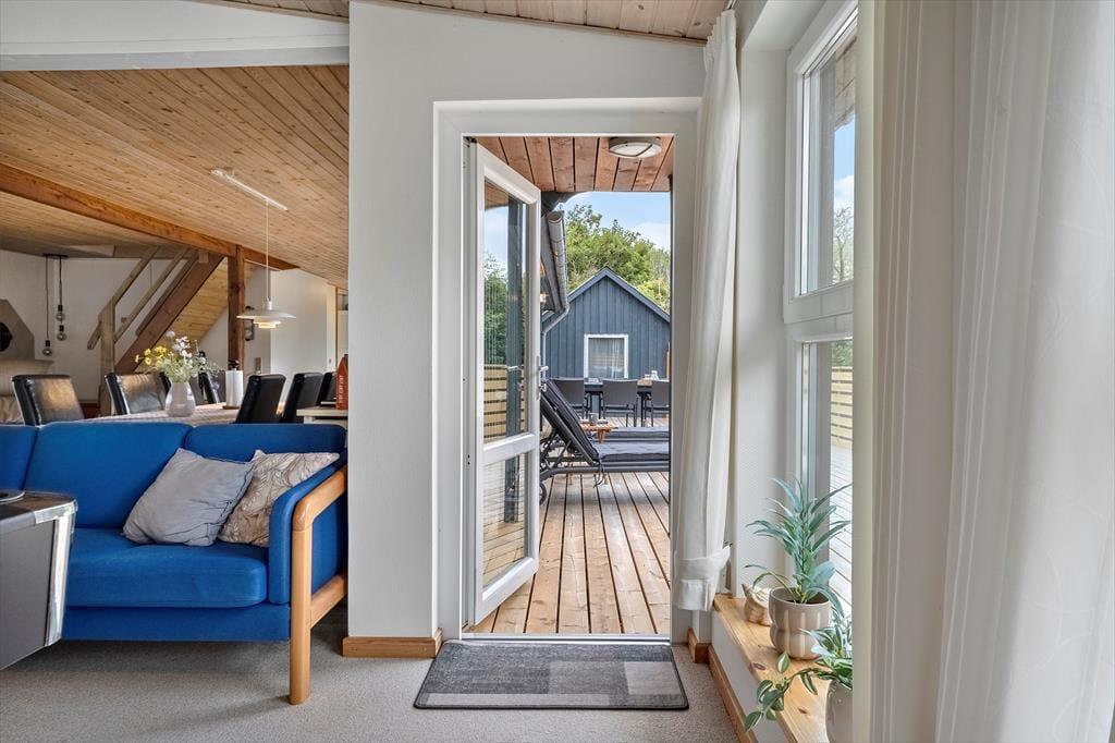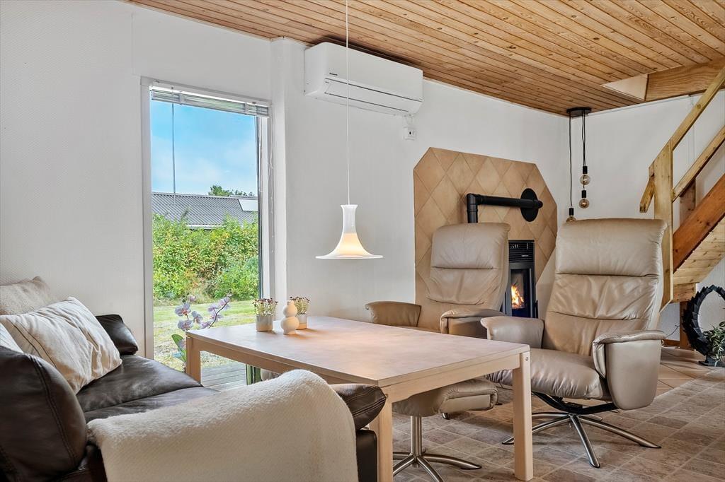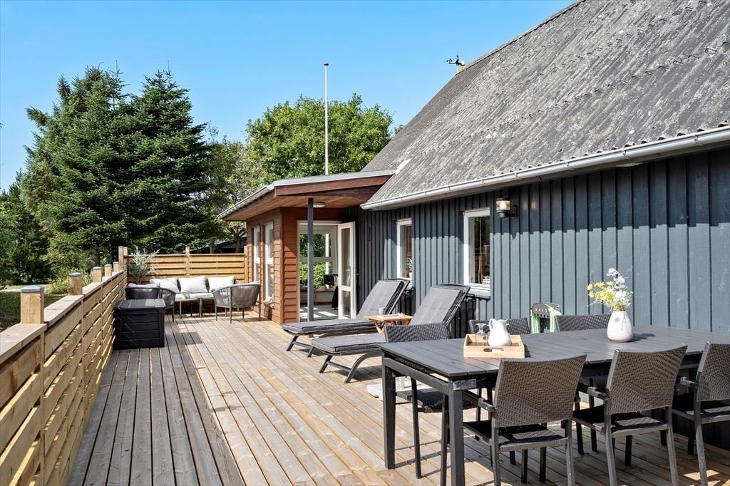 Fra stuen træder I direkte ud på en skøn, stor træterrasse, hvor der er rig mulighed for at nyde solen hele dagen. Her kan I starte morgenen med en friskbrygget kop kaffe, nyde en rolig frokost i det fri eller samle familien til en hyggelig grillaften, mens dagens oplevelser bliver vendt. Beliggenheden gør det nemt at koble helt af – og lige i nærheden finder I både fjorden og Vesterhavet, hvor I kan gå lange ture langs vandet, mærke vinden i håret og nyde det unikke vestjyske lys.