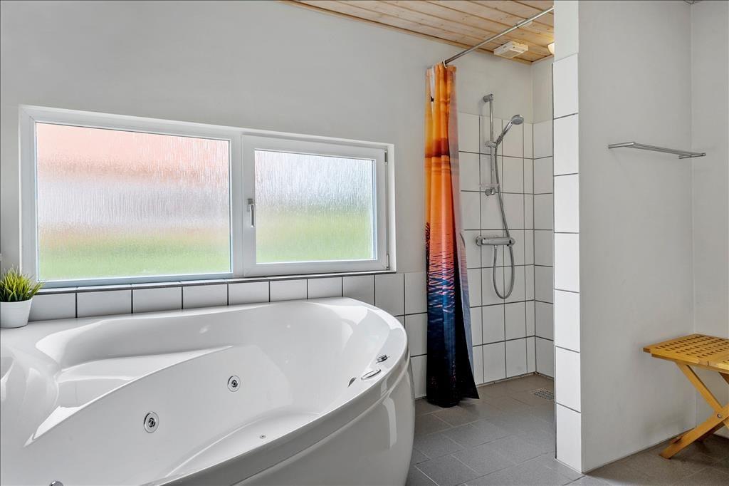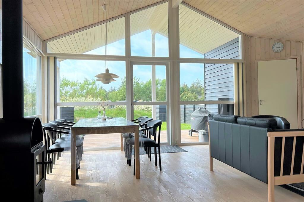 Her får I den ægte sommerhusstemning fra det øjeblik, I træder ind ad døren. Huset er lyst, hyggeligt og indrettet med fokus på samvær og afslapning. Køkkenet ligger i åben forbindelse med stuen, så I nemt kan hygge om maden, mens de andre slapper af foran brændeovnen. Over stuen finder I en hyggelig hems – et perfekt sted for børnene at lege, læse eller bare have deres eget lille fristed. Efter en dag fyldt med oplevelser kan I forkæle jer selv med et afslappende bad i spabadet.