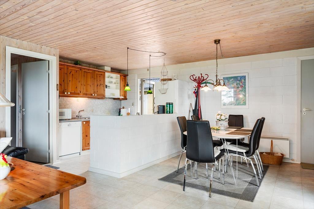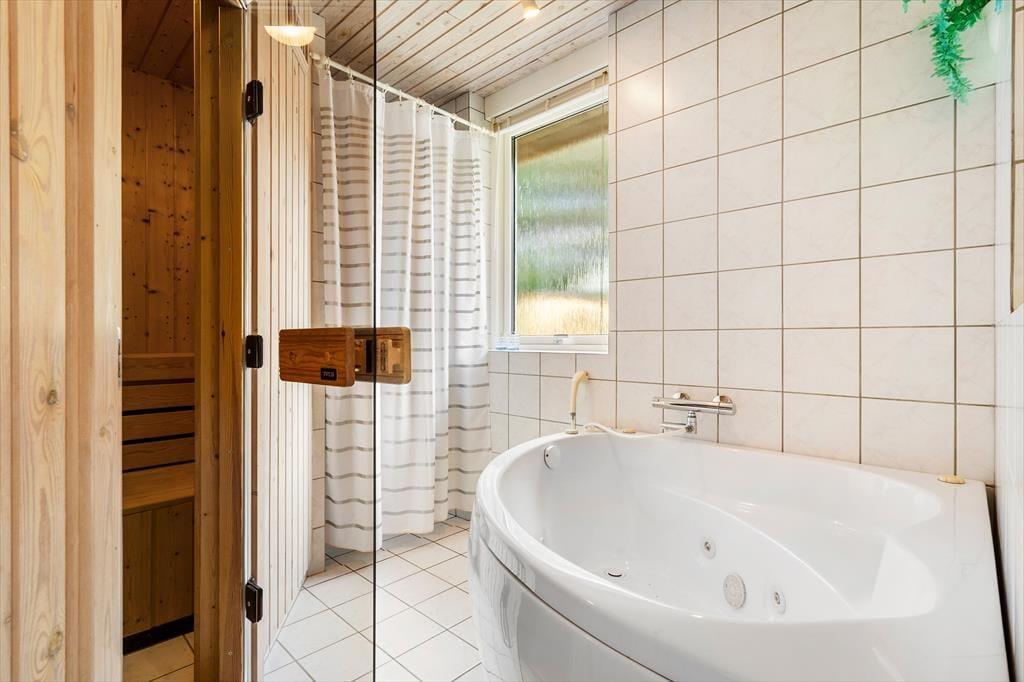 Træd indenfor i dette charmerende feriehus der emmer af god stemning og hygge. Her er der fantastiske muligheder for at komme helt ned i gear og koble helt fra hverdagens trummerum. Det store køkkenalrum giver jer rig mulighed for at nyde hinandens selskab på trods af at I laver forskellige ting. Tag strikketøjet frem og nyd en afslappende stund imens I nyder den dejlige fred og ro der hersker over huset. Giv jer i kast med et lækkert måltid i det store køkken, hvor der er godt udsyn udover stuen og spiseafdelingen. Når I træner til total afslapning så hop en tur ind i den dejlige varme sauna og nyd den dejlige varme der blidt omfavner jer, eller tag et dyp i den dejlige spa. Til huset er der også et aktivitetsrum som hele familien kan få glædeligt gavn af.