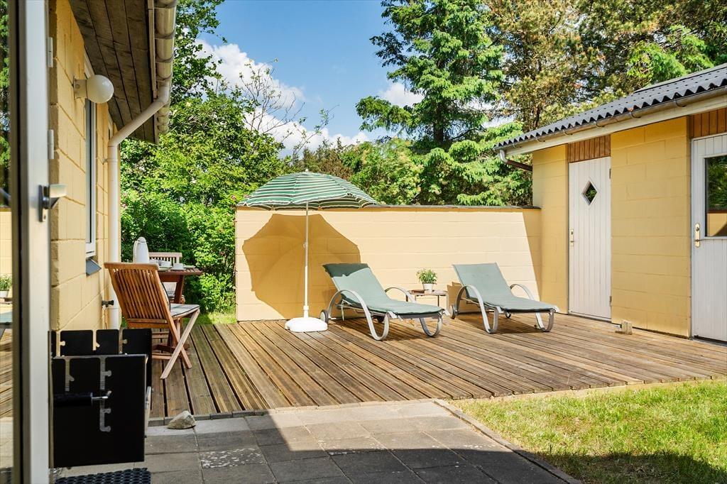 Den dejlige grund byder på flere forskellige hygge kroge hvor I kan nyde den dejlige varme sol og den flotte blå himmel. På grunden er der opsat et gyngestativ som kan være til stor glæde for familiens yngste, den store grund gør det også oplagt at tage en fodboldkamp for hele familien for at finde ud af hvem der er det bedste hold. Når sulten trænger sig på, kan I smide et par lækre bøffer på grillen og nyde den lækre duft af mad der stiger op og spreder sig i luften.