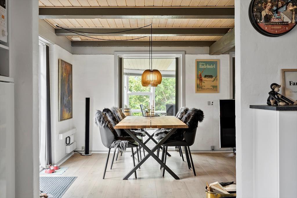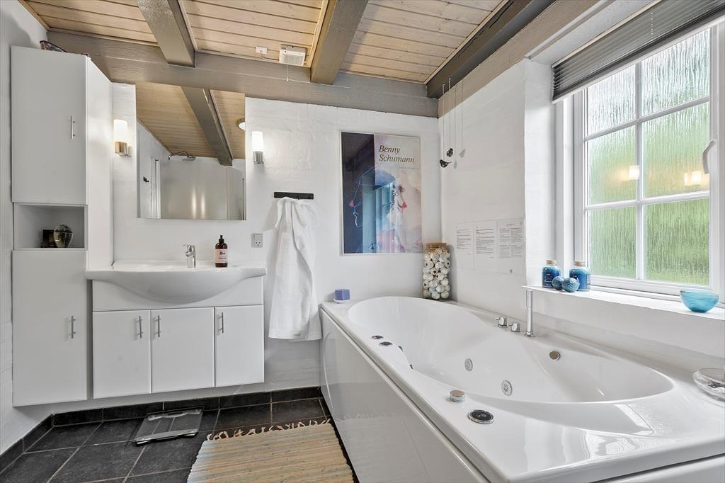 Moderne, stilrent og yderst hyggeligt er hvad I møder når I træder ind i dette skønne feriehus, her er der kræset for detaljerne. Sæt jer i den dejlige sofa og nyd det smukke lysindfald og det fantastiske lys der strømmer ind fra alle sider. Når aftensmaden skal nydes så sæt jer ud i den dejlige udestue og nyd den fantastiske sol der skinner ind igennem de store vinduer, og når solen er på vej ned, kan I nyde den smukke orangerøde himmel imens I nyder et lækkert glas vin til maden. Når I trænger til afslapning, kan I tænde op for det dejlige spabad og nyde dens dejlige varme og behagelige vand.