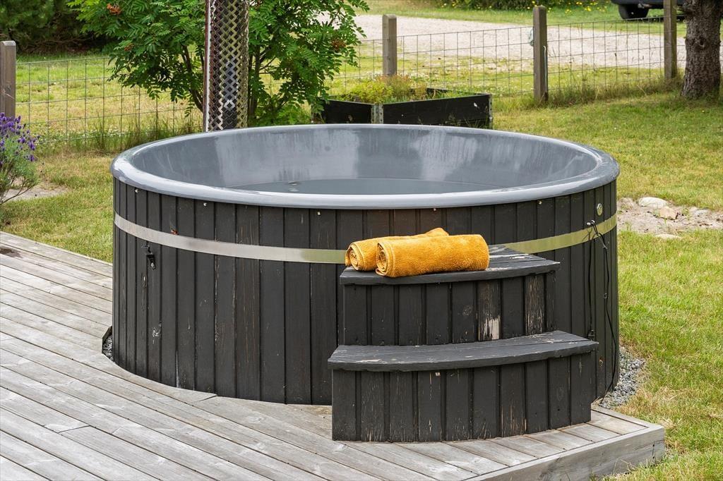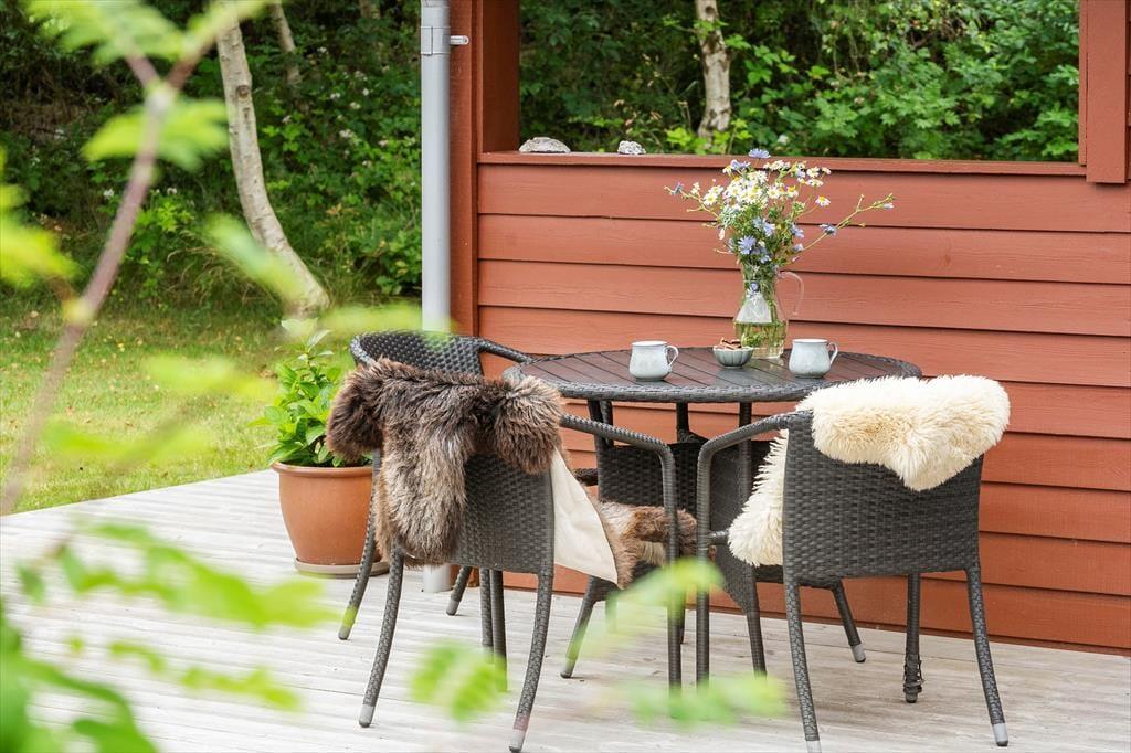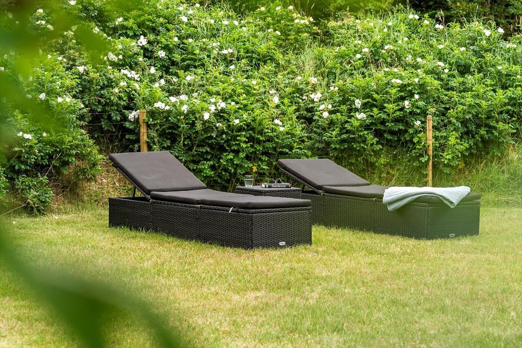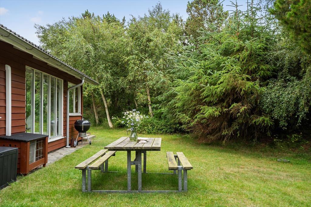Udenfor venter en stor og indbydende naturgrund, hvor der er plads til både leg og afslapning. Her kan børn og barnlige sjæle spille fodbold, bygge huler eller bare boltre sig frit. Til de stille stunder er der også rig mulighed for ro og fordybelse – måske med et glas vin i hånden og fødderne i vildmarksbadet. På den store terrasse kan du altid finde et hjørne med læ, uanset vind og vejr, og her er der rig mulighed for at nyde solen fra morgen til aften.