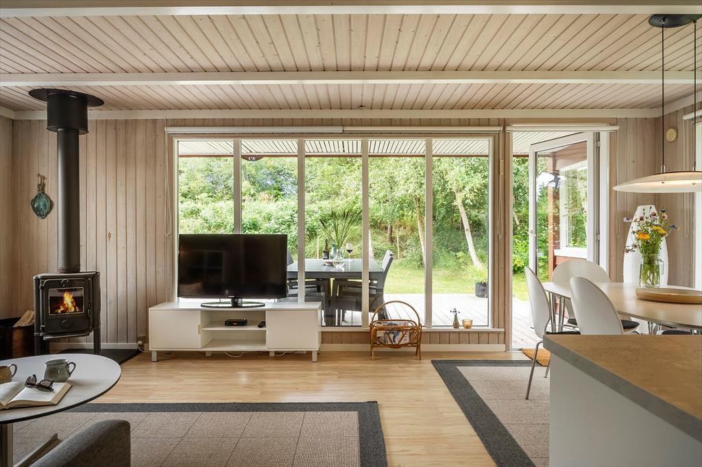 Her er et sommerhus, der emmer af ægte hygge og klassisk sommerhusstemning – det føles som at komme hjem, bare lidt bedre. Huset byder på en afslappet atmosfære, hvor du hurtigt falder til ro. I stuen kan du slænge dig i de gode, bløde sofaer med en kop kaffe eller en spændende bog, mens brændeovnens knitren og varme breder sig og skaber en hyggelig stemning. Her er plads til nærvær og samvær, uanset om I spiller spil, læser, nyder stilheden – eller bare lader tiden gå i roligt tempo. Sommerhuset har plads til 6 gæster og op til 2 hunde.