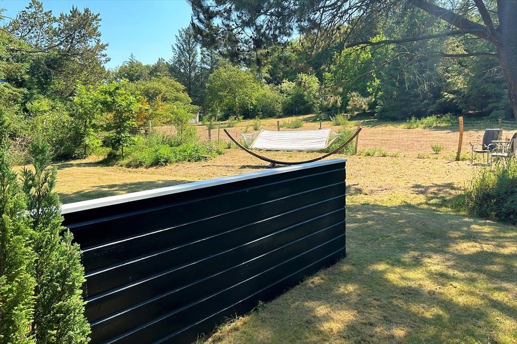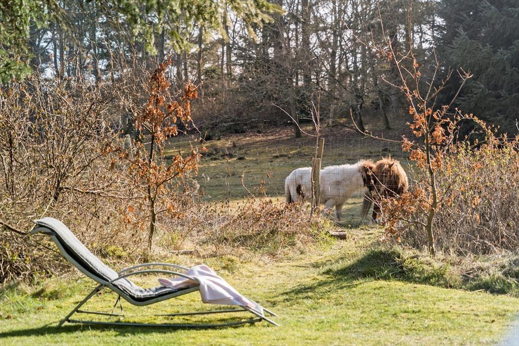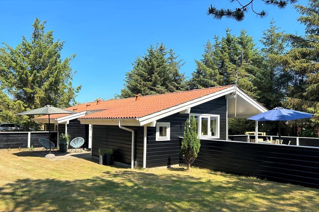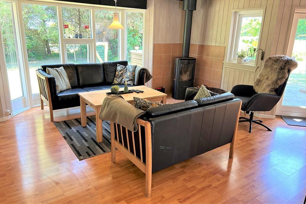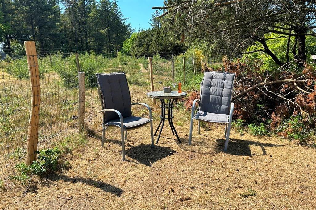 I vil elske dette charmerende træferiehus, der er smukt placeret på en naturgrund med masser af læ og privatliv. Her kan I virkelig koble af og nyde ferien i rolige omgivelser, hvor fuglesang og den friske luft er en del af hverdagen. Fra den hyggelige stue træder I direkte ud på en sydvendt, delvist overdækket terrasse – perfekt til solrige morgenstunder, lange frokoster eller aftener med grill og god vin. Her står komfortable havemøbler klar til jer. På husets vestside finder I endnu en dejlig terrasse, hvor I kan nyde solen helt til den, går ned. Et ideelt sted til både afslapning og samvær midt i naturen.