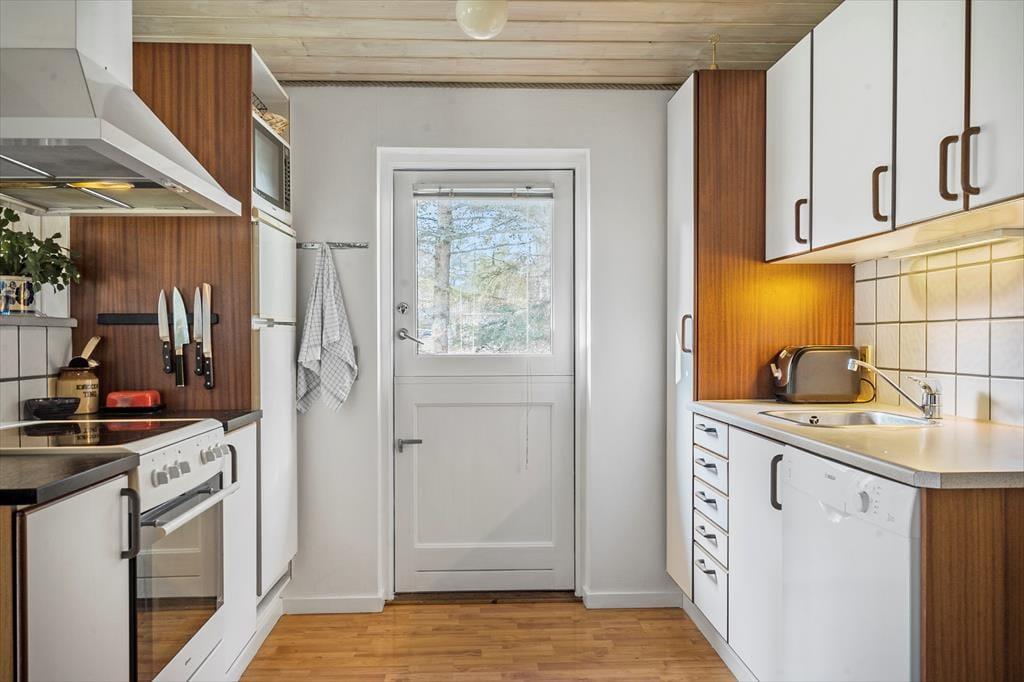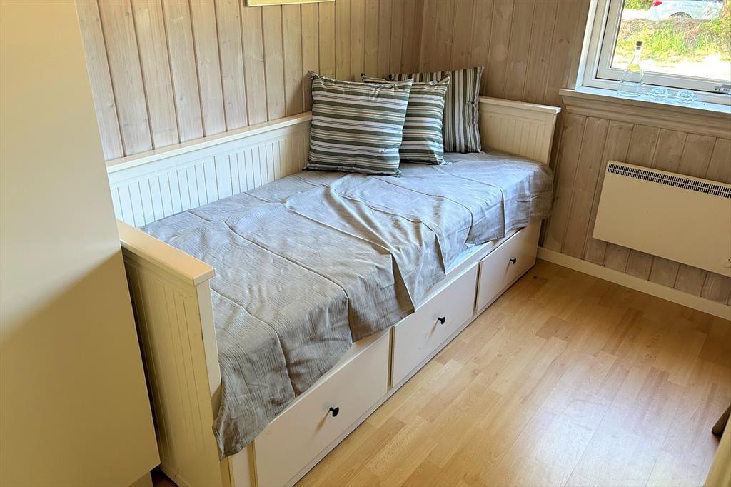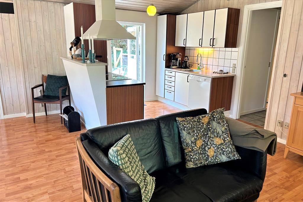 Her venter jer et hyggeligt og indbydende sommerhus, perfekt til afslappede feriedage fyldt med nærvær og gode stunder. Huset er smagfuldt indrettet med pæne, komfortable møbler, og det åbne køkken ligger i direkte forbindelse med spiseafdeling og stue – et oplagt samlingspunkt for fælles madlavning, brætspil og lange aftener i godt selskab. Her er plads til både grin og ro. I råder over to lyse badeværelser med bruser, så ingen behøver at stå i kø, og når det er køligt udenfor, kan I varme jer i husets dejlige sauna. Der er to rummelige soveværelser med dobbeltsenge og et ekstra værelse med sovesofa – ideelt til børn, teenagere eller et lille læsehjørne. Et skønt feriehus, hvor både komfort og hygge går hånd i hånd.