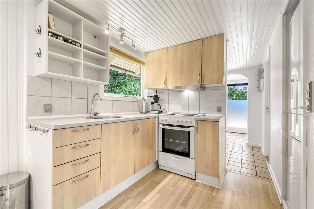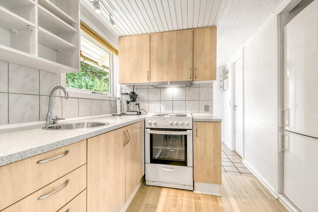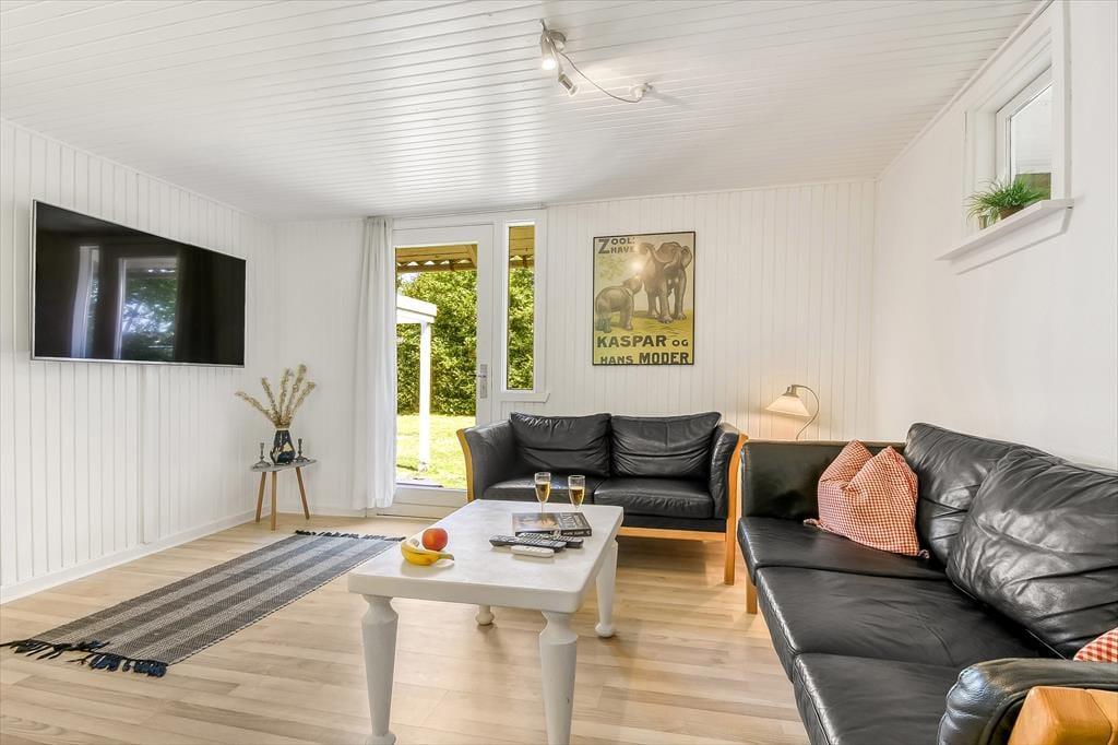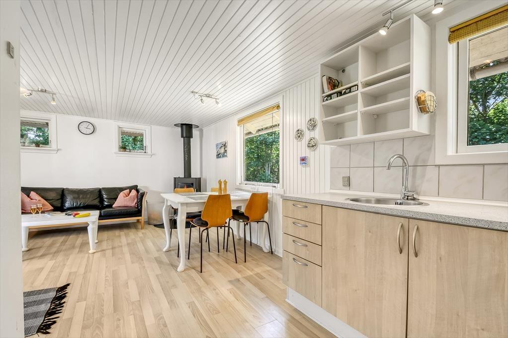 For enden af en stille grusvej, midt i det fredelige og naturskønne Fjand, ligger dette hyggelige sommerhus – et oplagt sted til afslapning, samvær og ferie i rolige omgivelser. Huset er lyst og indbydende med et åbent opholdsrum, hvor køkken, spiseplads og stue går ud i ét. Her kan I samles omkring måltiderne, spille spil og nyde varmen fra brændeovnen. I den anden ende af huset finder I en skøn spaafdeling med både sauna, bruser og spabad – lige til at synke ned i efter en dag i naturen.