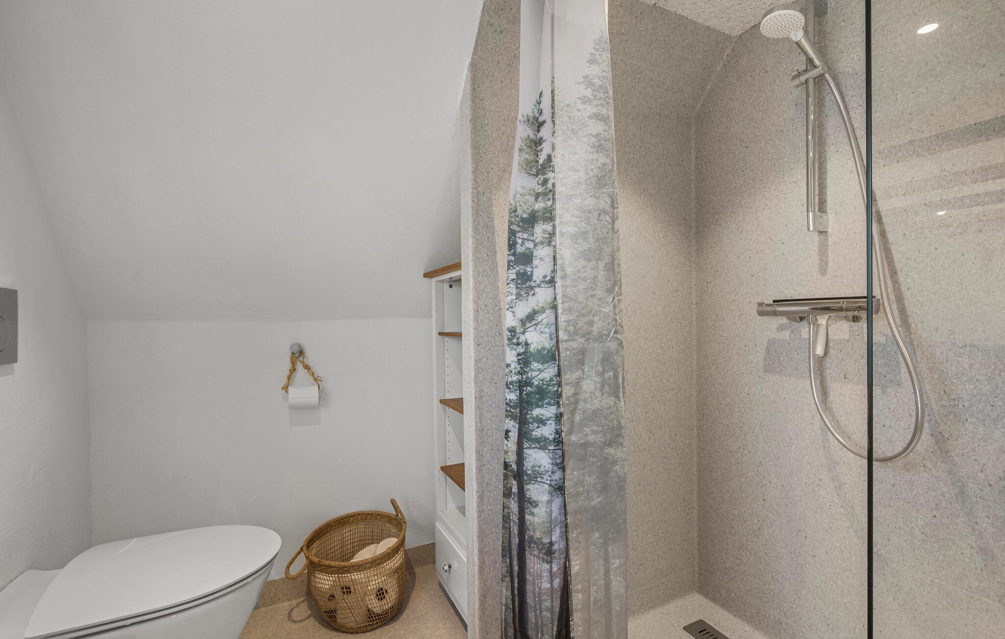 Badeværelse (nr. 1) - WC. Varmt og koldt vand. Bruser