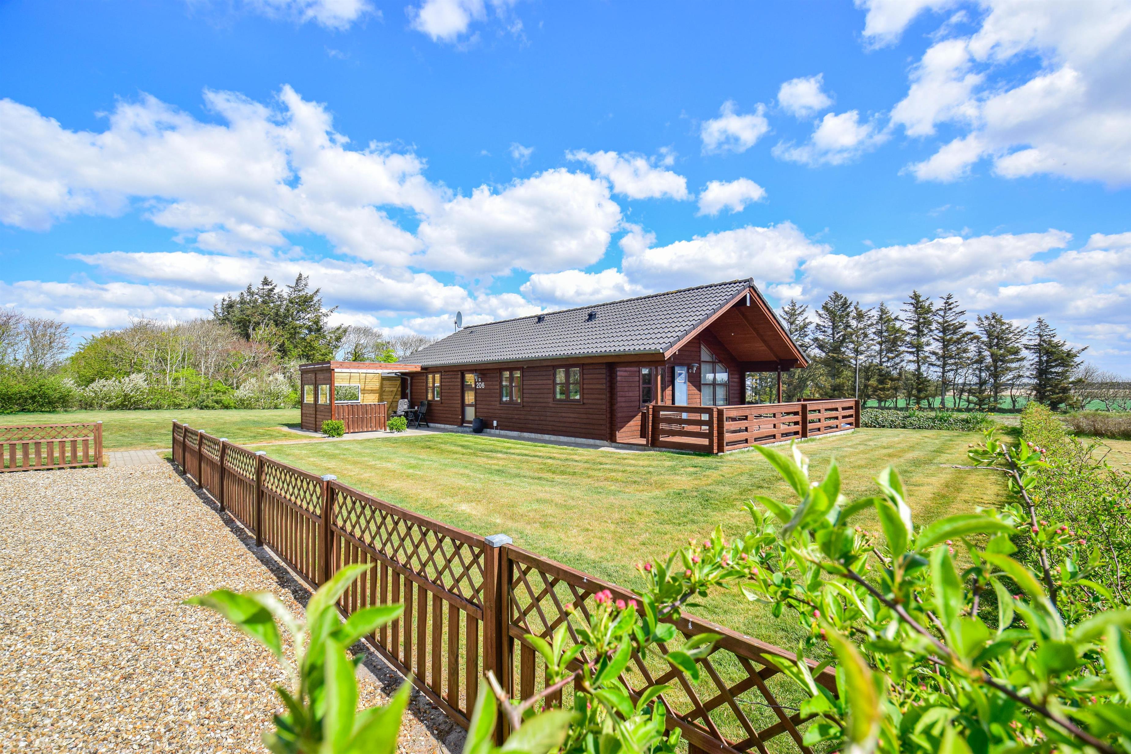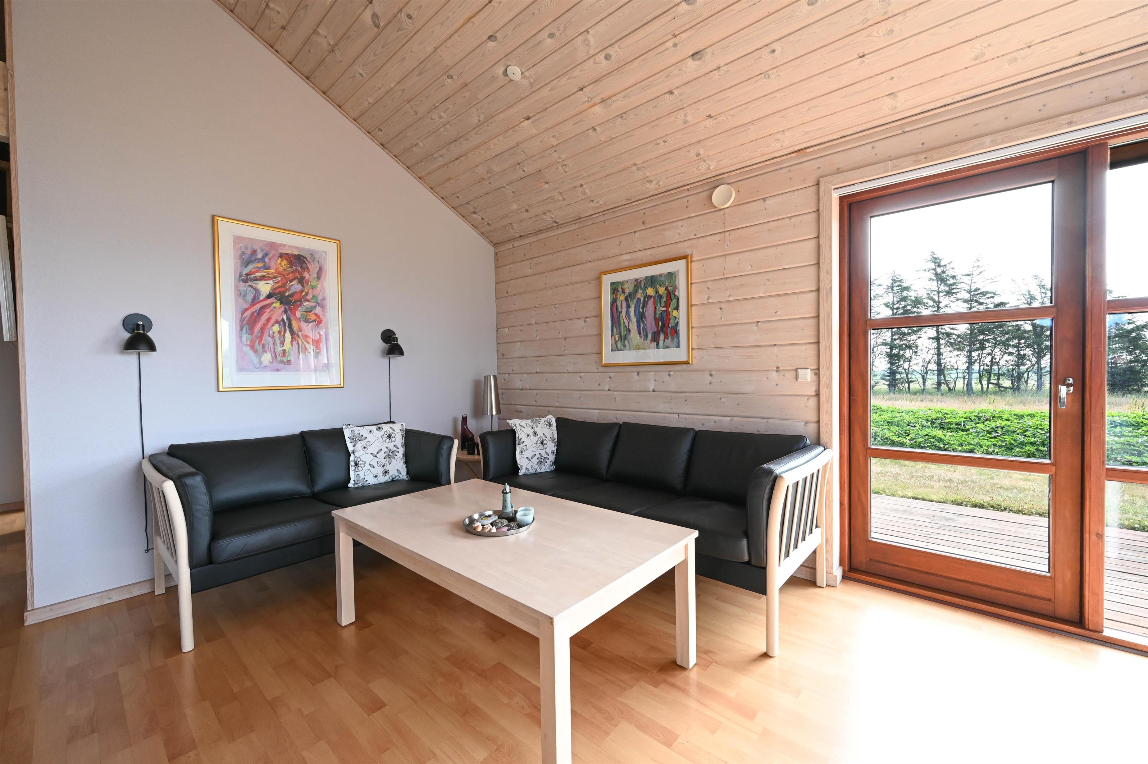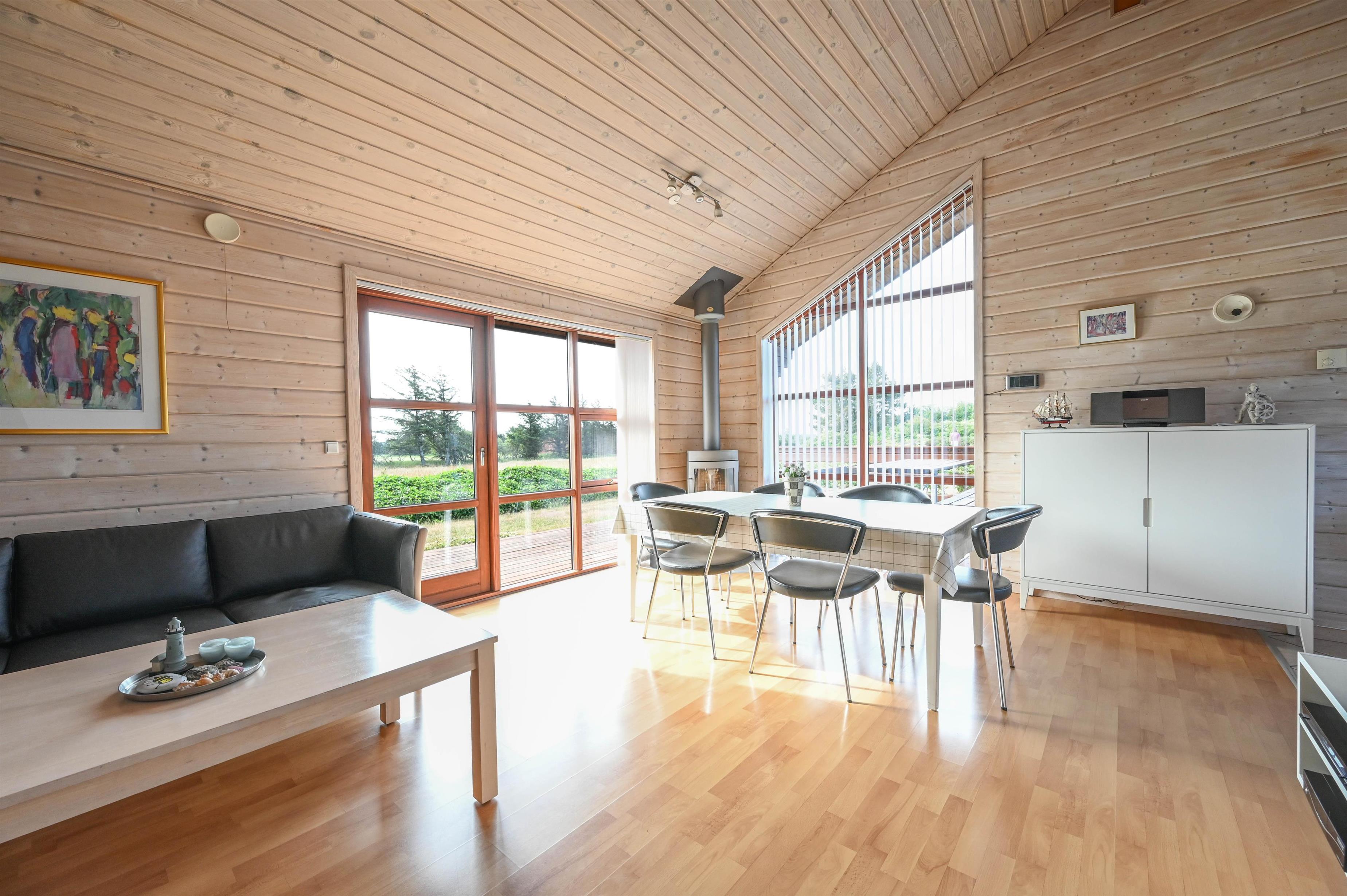 En flot naturoplevelse i ferien, kan findes ved dette dejlige træhus på 85 kvm, som ligger på en 1600 kvm grund med udsigt over markerne til Nissum fjord med det rige fugleliv.
