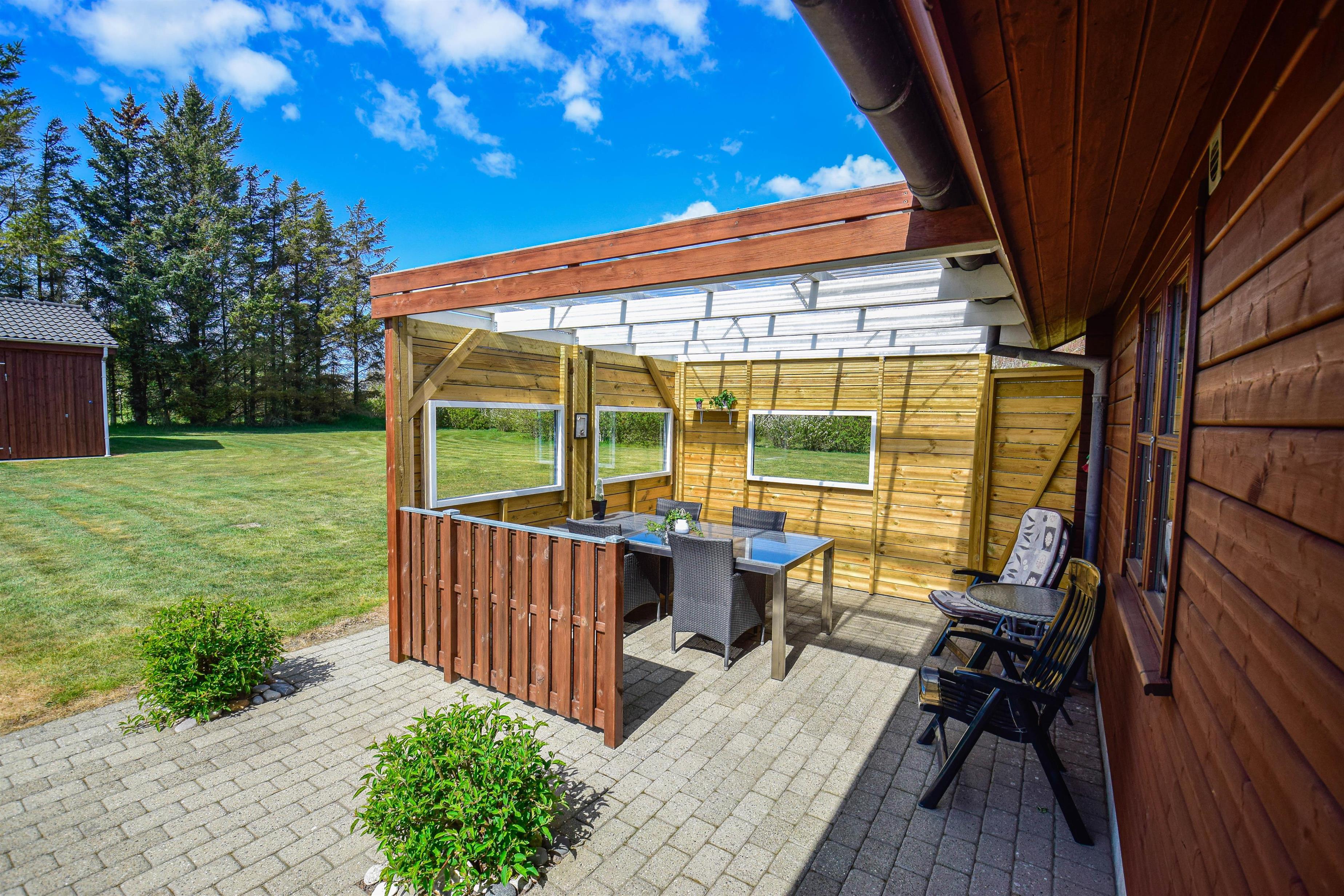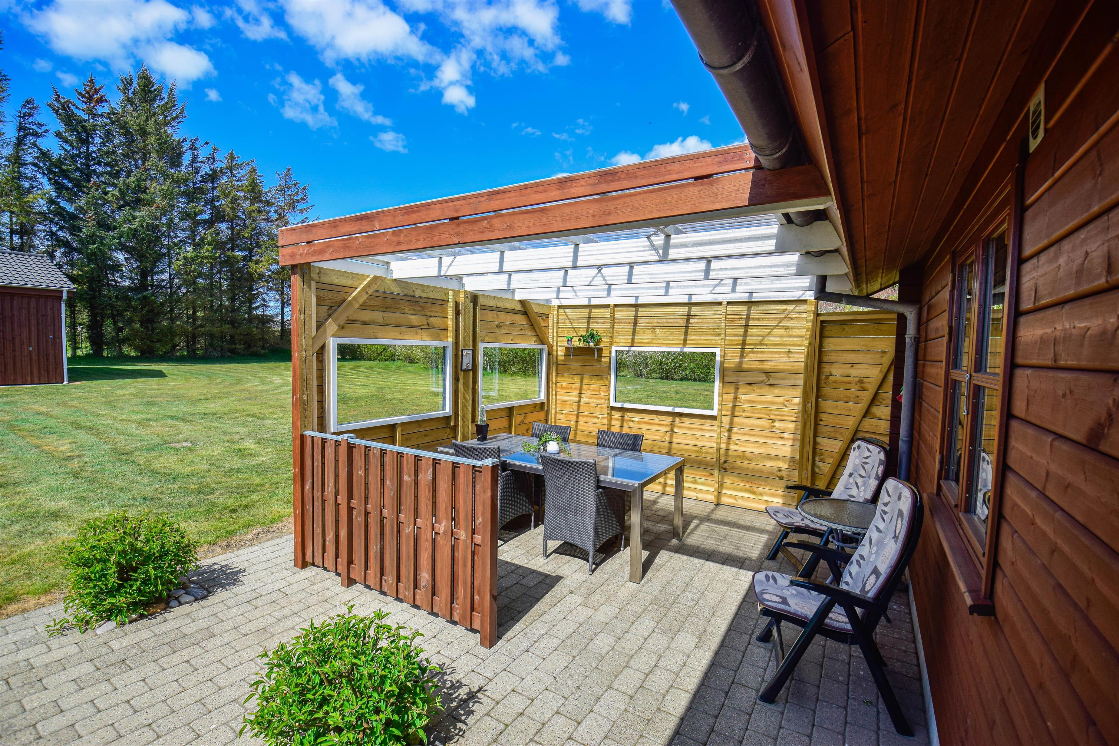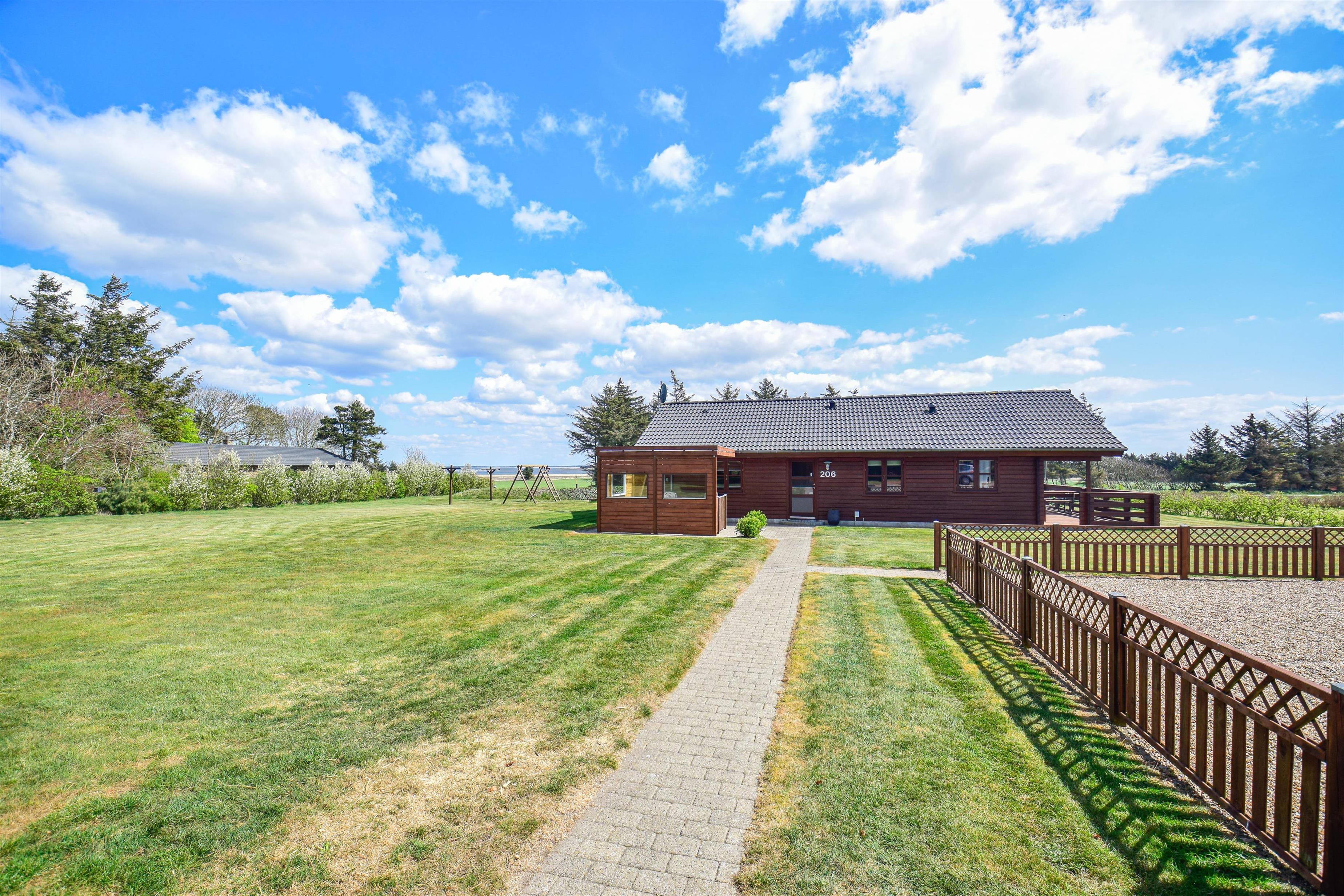 En flot naturoplevelse i ferien, kan findes ved dette dejlige træhus på 85 kvm, som ligger på en 1600 kvm grund med udsigt over markerne til Nissum fjord med det rige fugleliv.