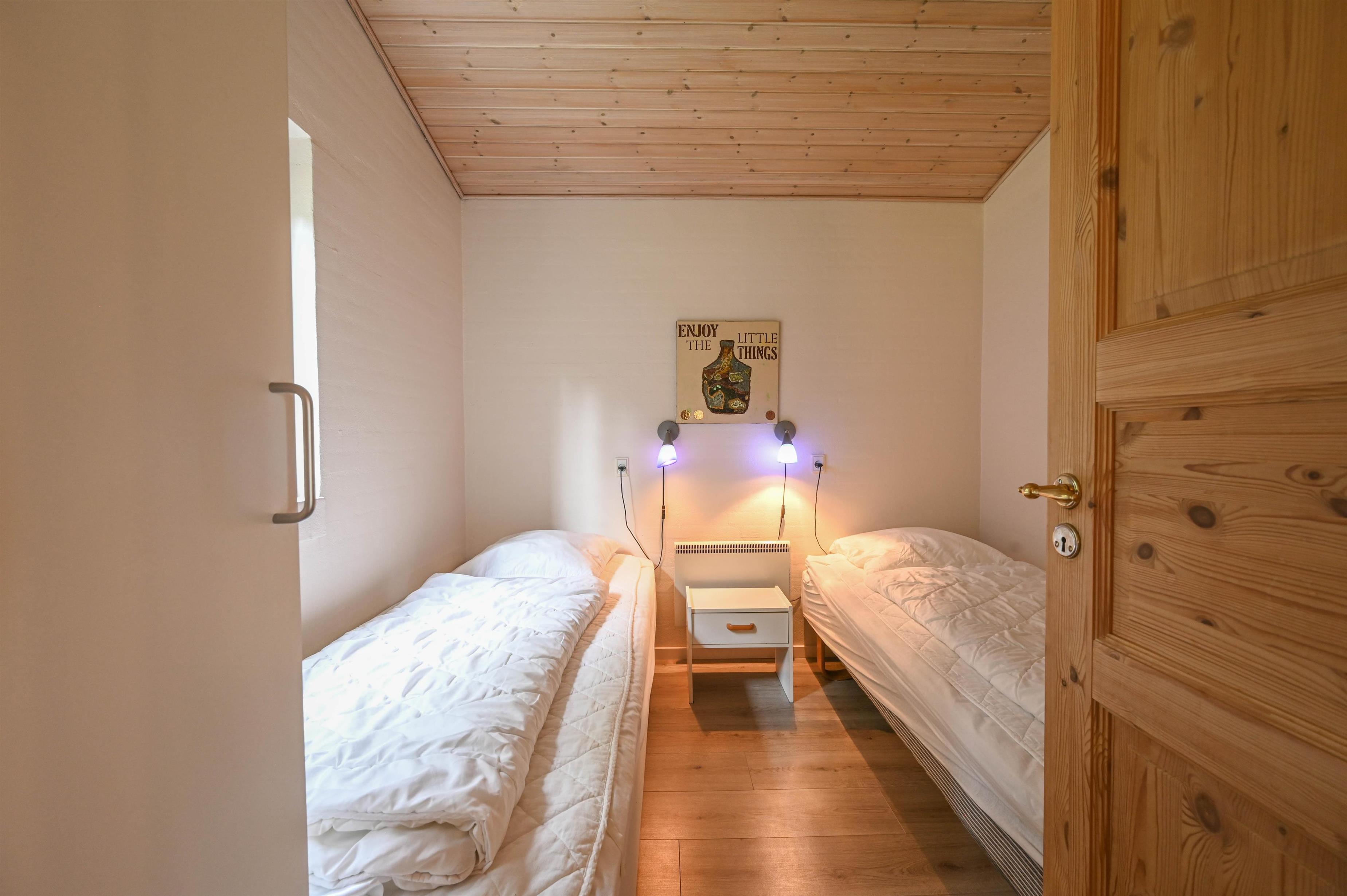 Der er et godt soveværelse med dobbeltseng samt to værelser med hver to enkeltsenge.