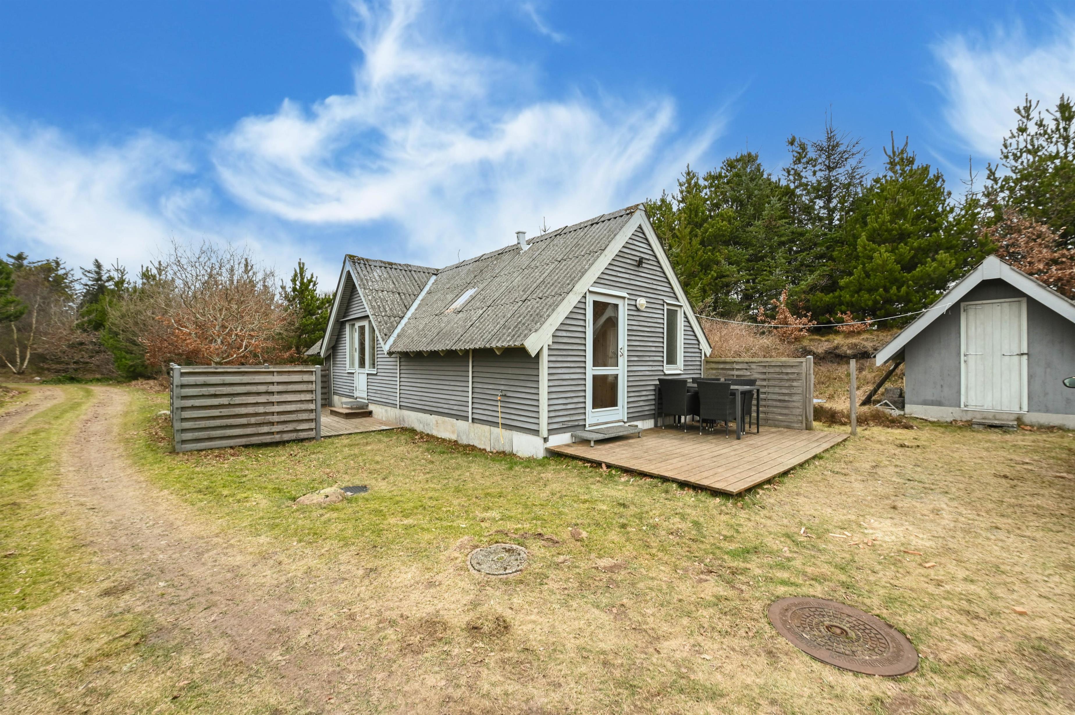I fredelige omgivelser på Skindbjergvej, ikke langt fra den smukke og rolige Nissum Fjord, ligger dette charmerende feriehus – helt for sig selv og omgivet af vestjysk natur. Her får I de perfekte rammer for en afslappende ferie, hvor stilheden, den friske luft og naturens ro sætter tempoet.