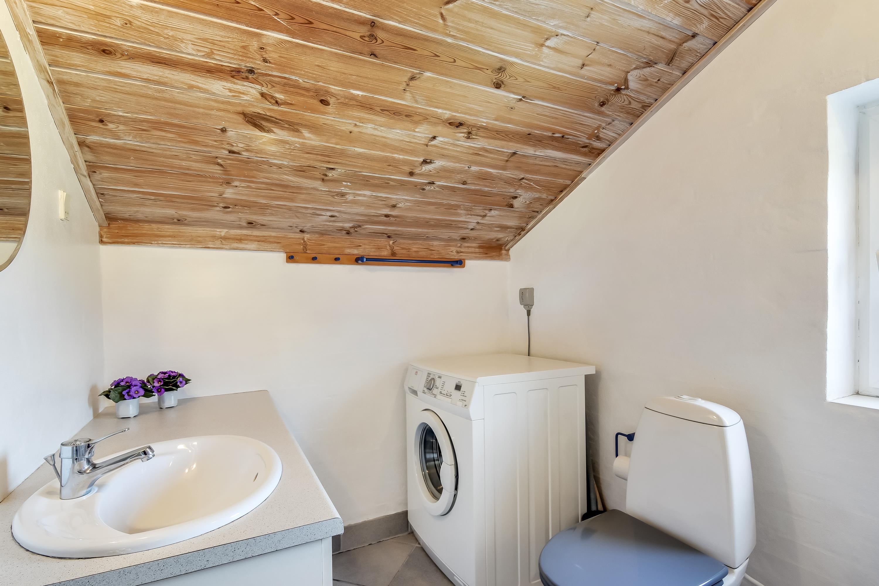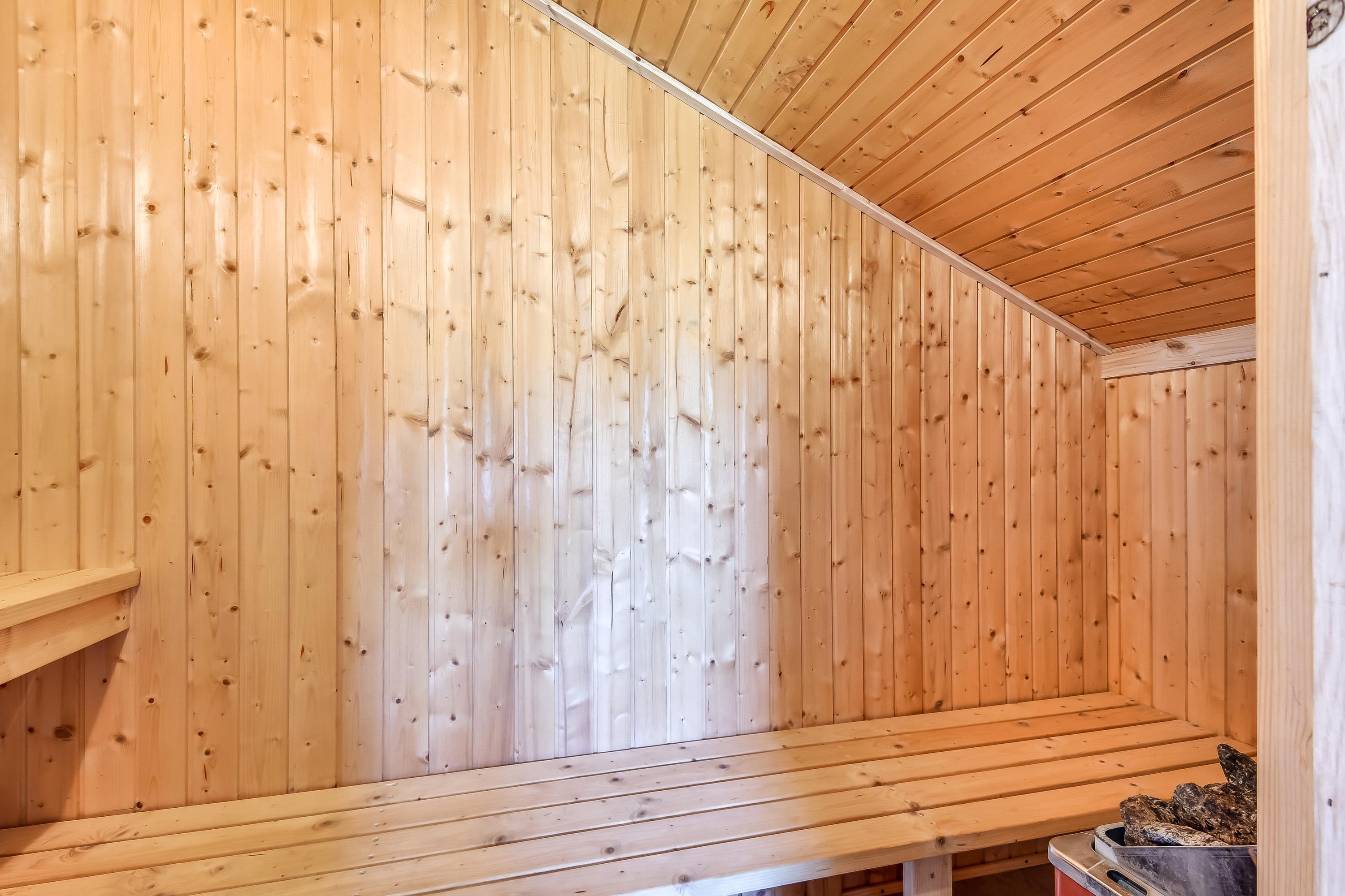 Badeværelset byder på en dejlig bruseniche og adgang til sauna, hvor I kan slappe af efter en dag ved stranden eller på cykeltur i området.