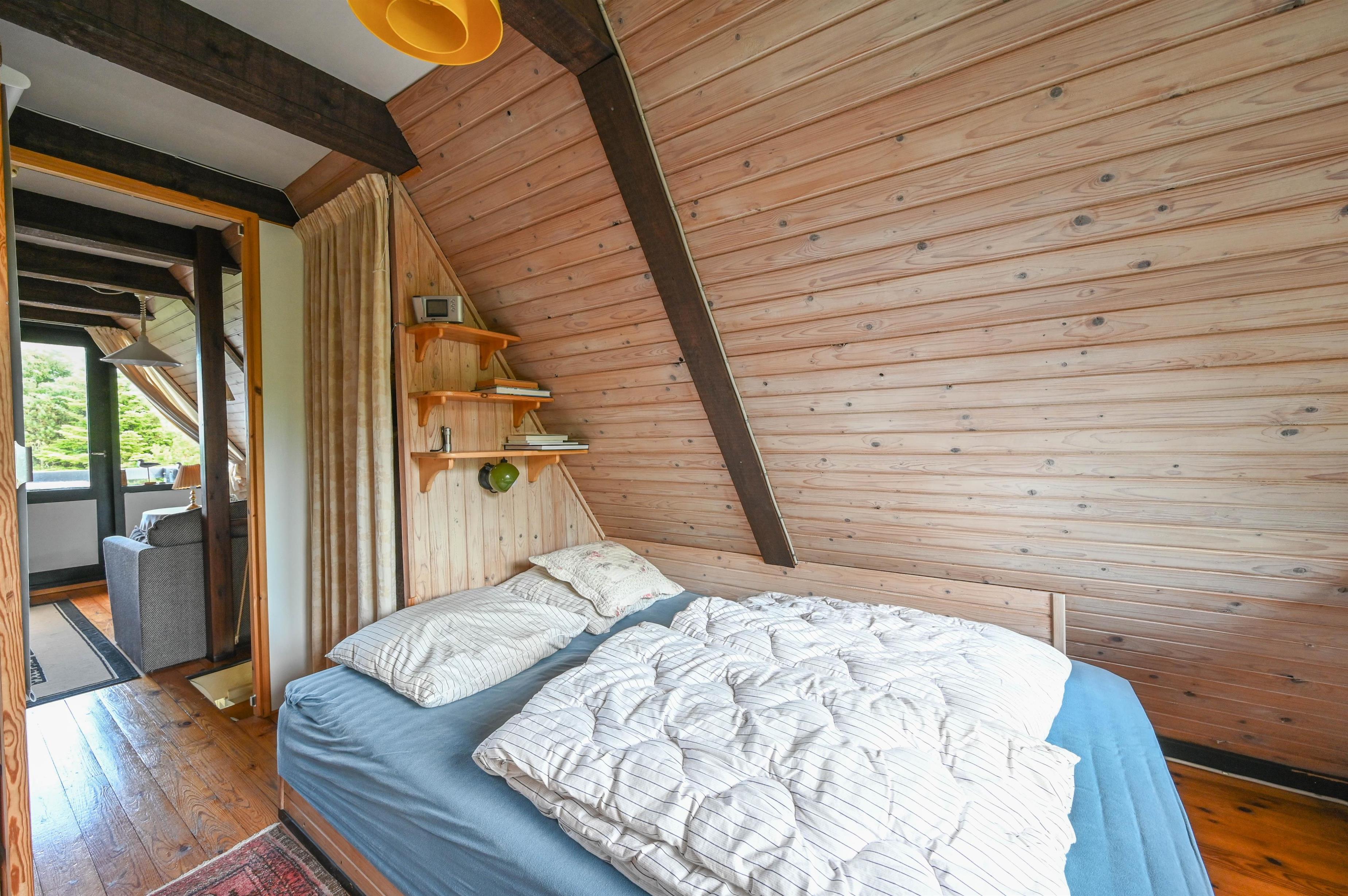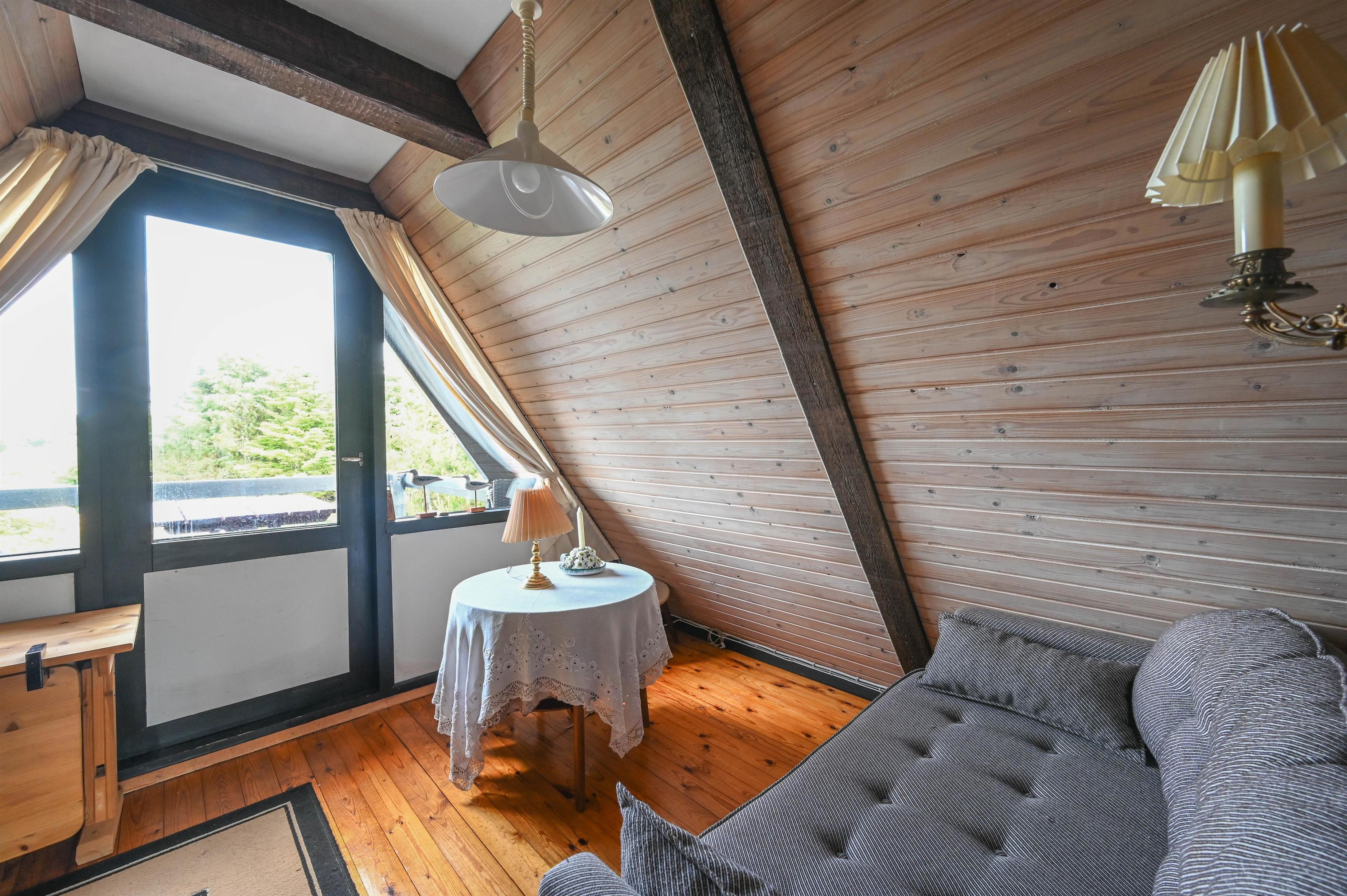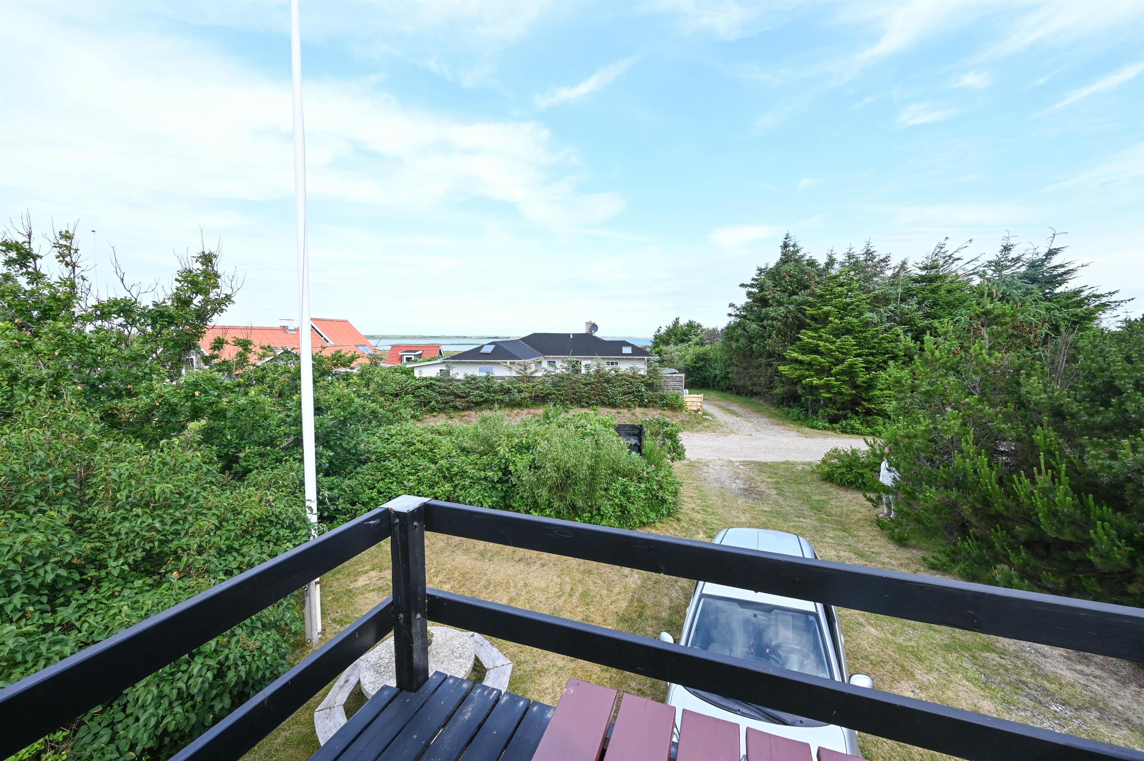 På 1. sal er der to soveværelser med dobbeltsenge (bemærk: sengene er ikke høje). Fra det ene værelse er der udgang til en altan med en skøn udsigt over fjorden – et dejligt sted at starte dagen med en kop kaffe.