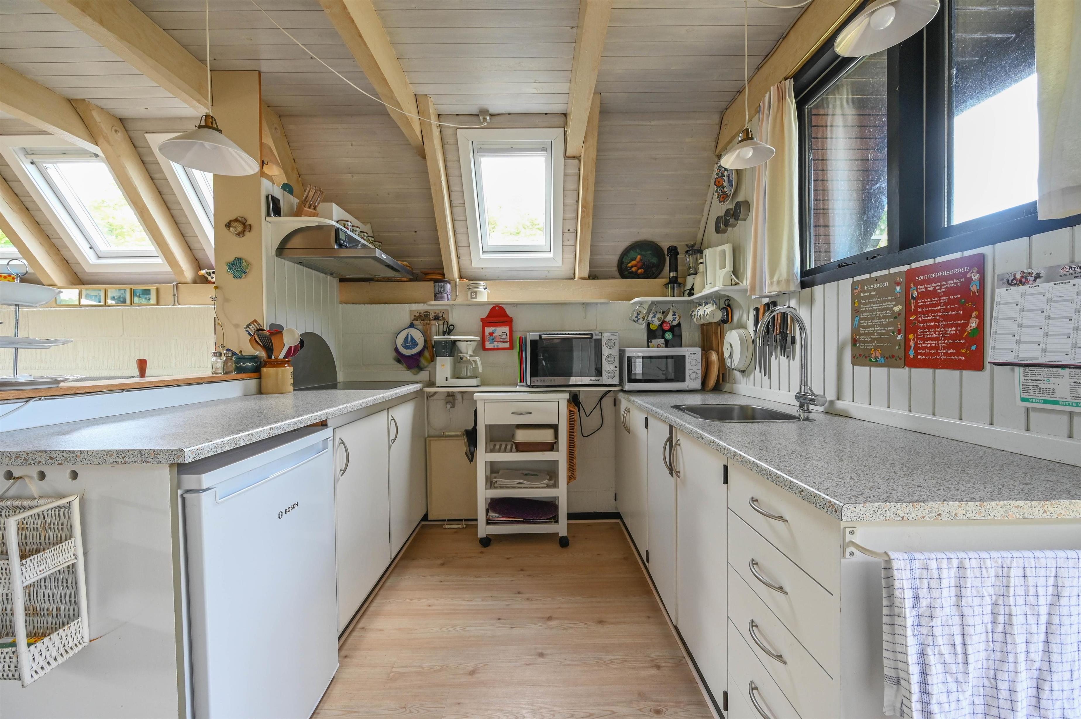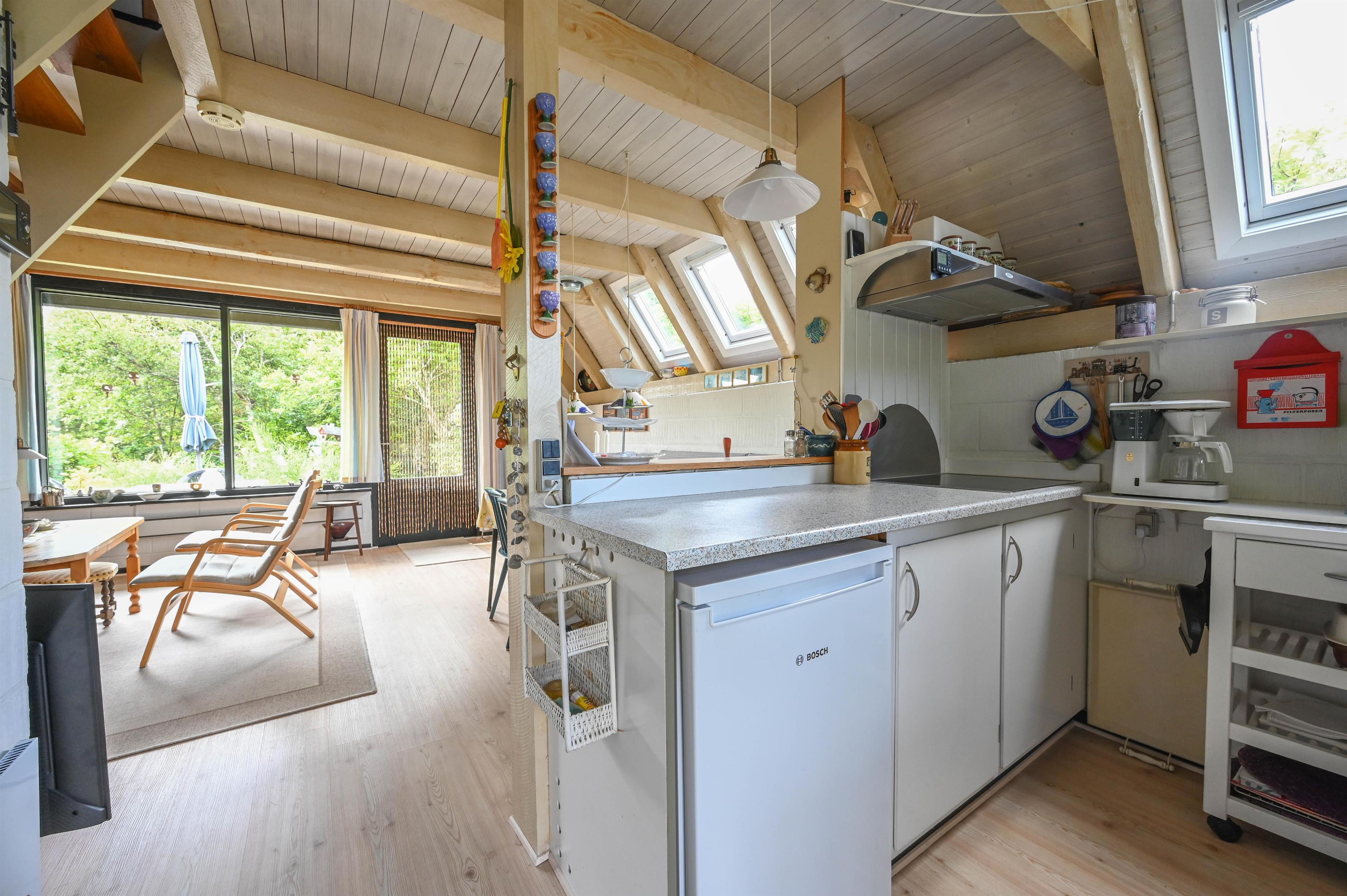 Feriehuset er oprindeligt opført i 1967 og er løbende blevet moderniseret. Her er hverken luksus eller designerindretning, men en hyggelig og hjemlig atmosfære med blandet møblement og brændeovn i stuen. Køkken og stue er i åben forbindelse, og i stueplan findes desuden et badeværelse med bruseniche.