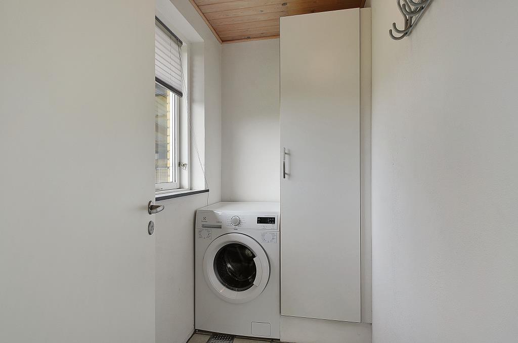 Der er udendørs vask til brug for rensning af fisk. Derudover en god stor fryser i skuret