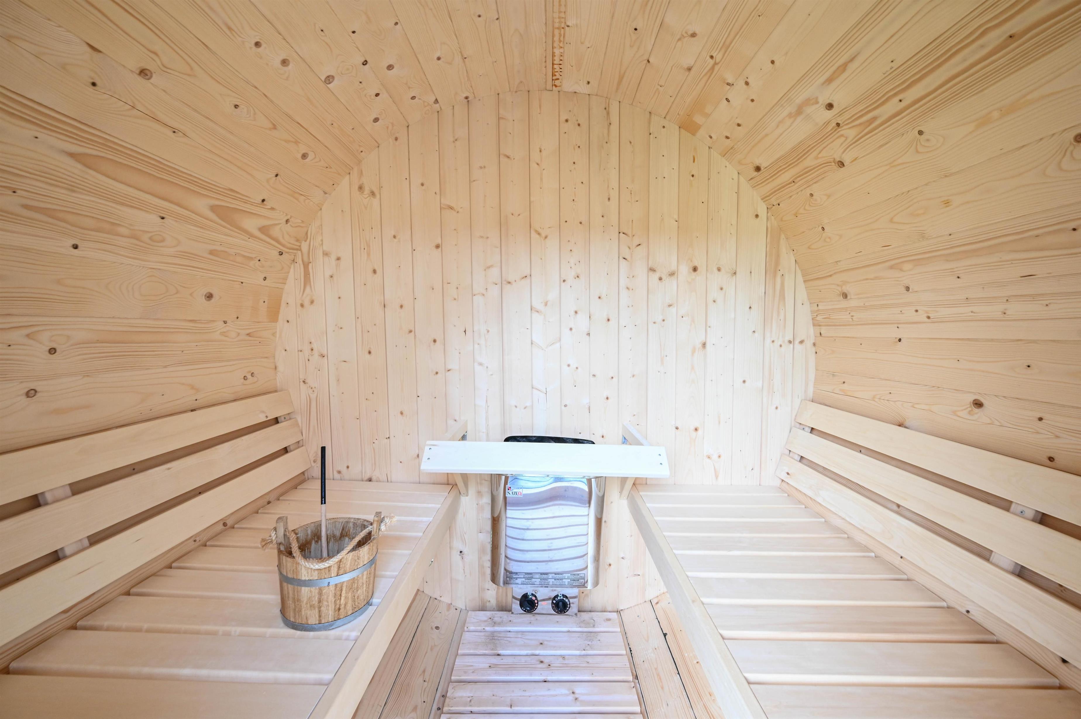 Skal ferien være afslappende i gode omgivelser, så er det dette flotte feriehus I skal bestille. Huset har bl.a. saunatønde i den skønne have.