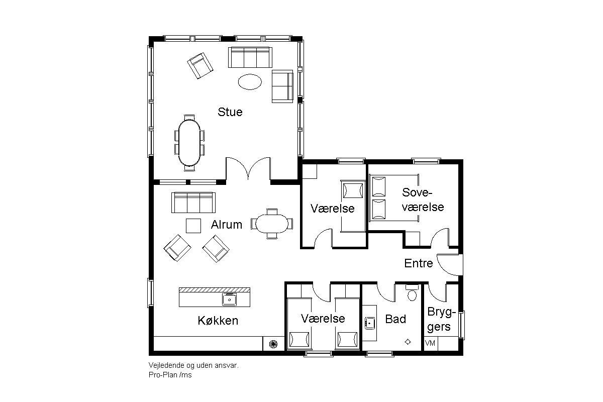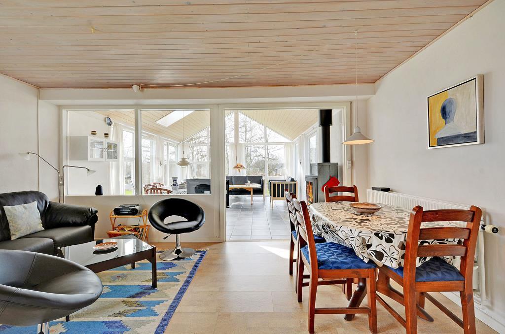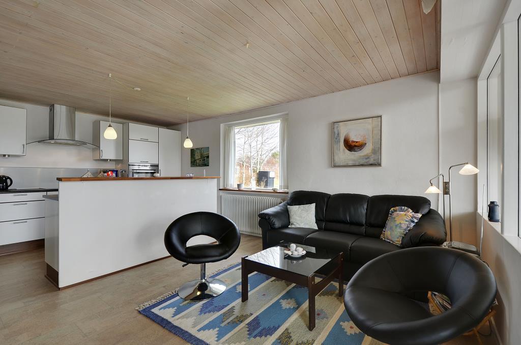 Indretning: Entre, soveværelse med dobbeltseng, værelse med 2 enkeltsenge, værelse med sovesofa. Dejligt badeværelse, åben køkken/stue samt stor lys udestue med klinkegulv og loft i kip. Fra udestuen er der udgang til en dejlig sydvendt terrasse, og dejlig stor carport.