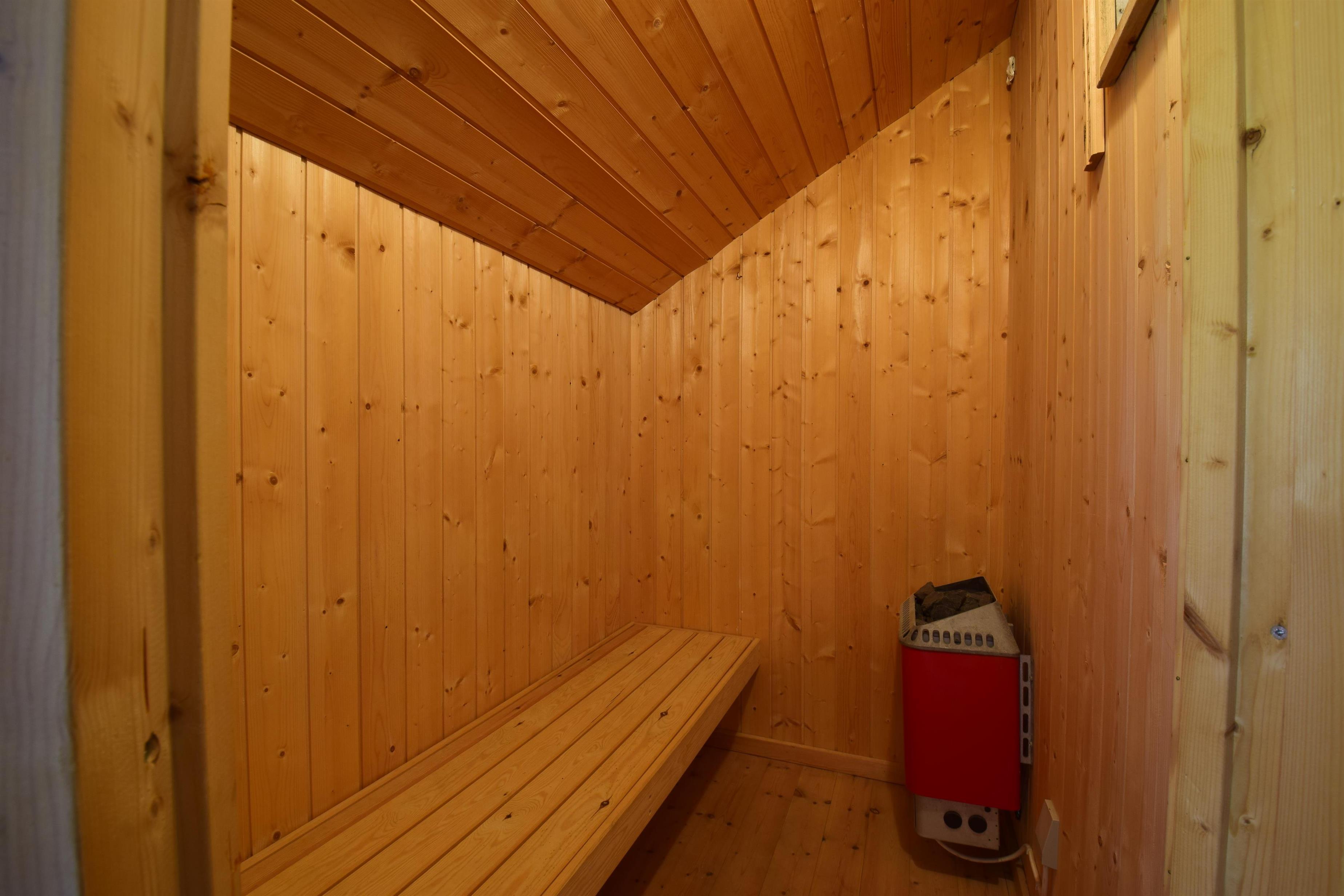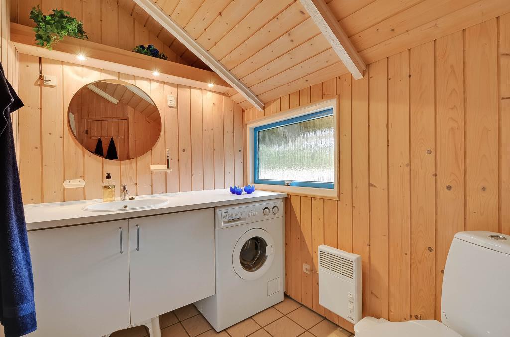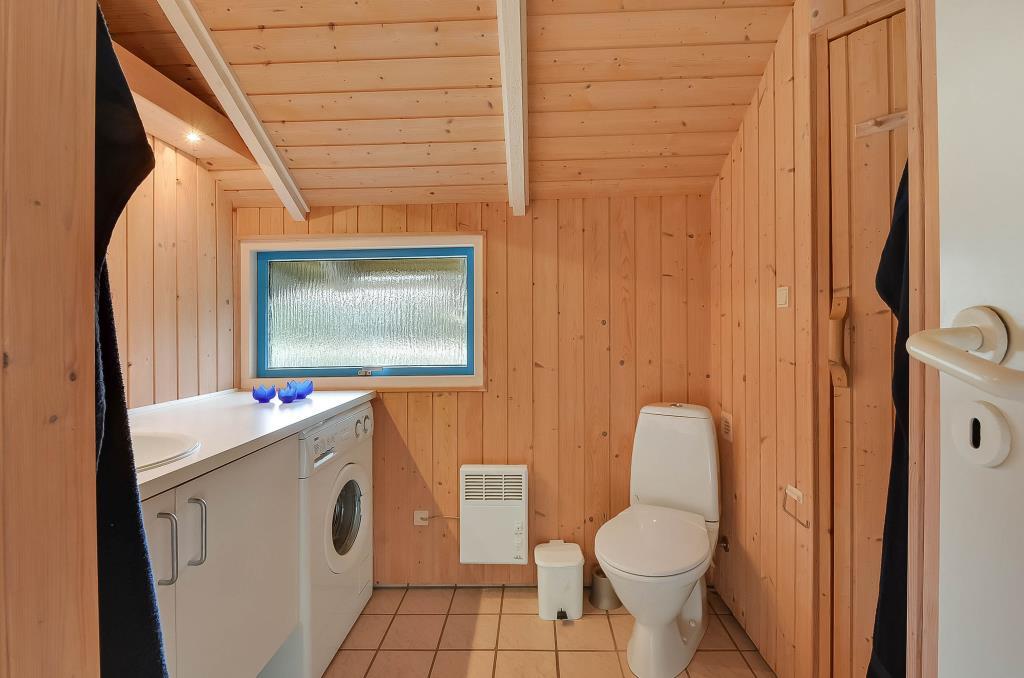 Efter en dag ved stranden eller på tur i naturen kan I slappe af i husets sauna, der ligger i forbindelse med det lyse badeværelse med bruseniche og vaskemaskine.