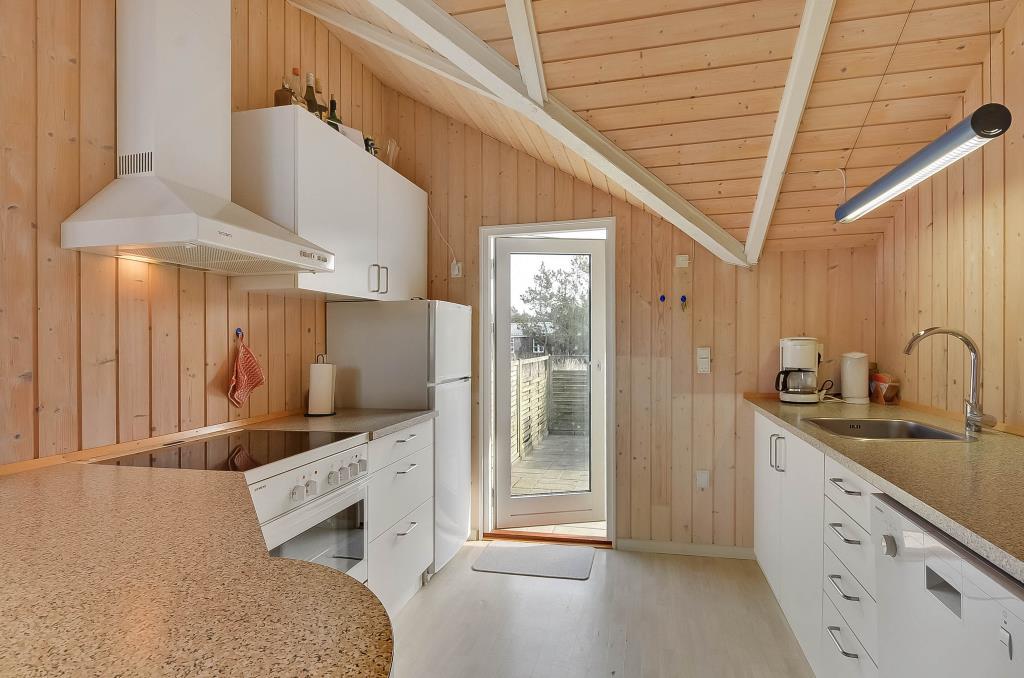 Køkkenet er lyst og funktionelt med direkte udgang til den sydvestvendte terrasse, hvor der er god læ og plads til både spisning og afslapning.