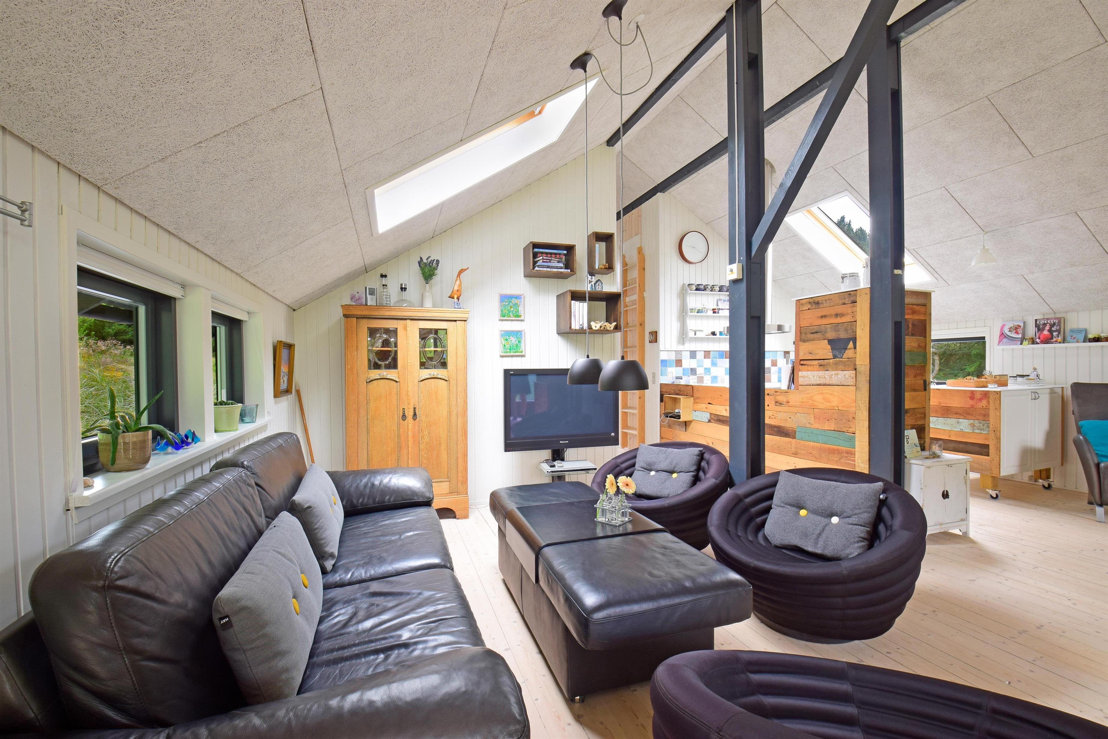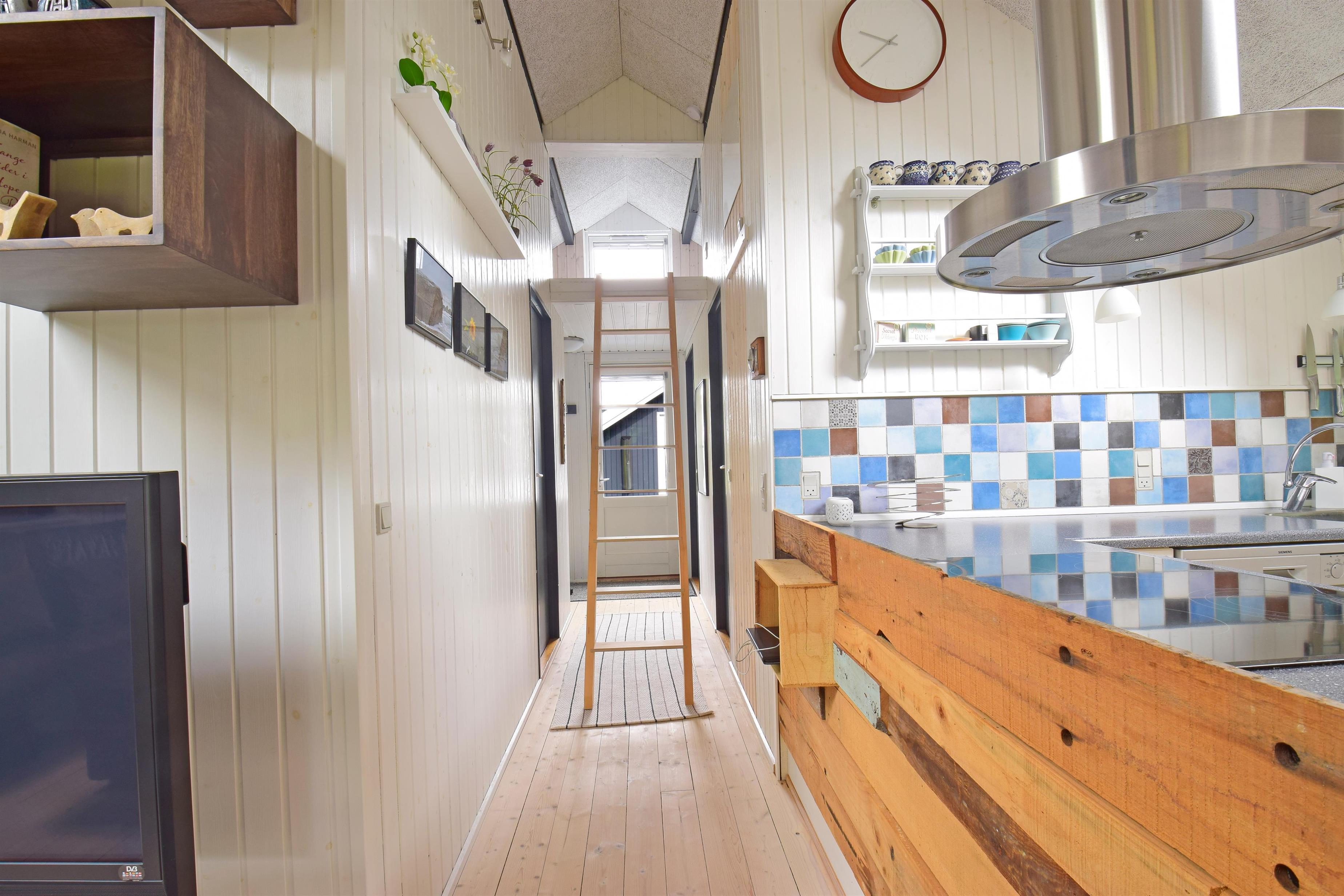 Indenfor mødes du af en hyggelig atmosfære og et funktionelt feriehus med alt, hvad du behøver for en afslappet ferie.