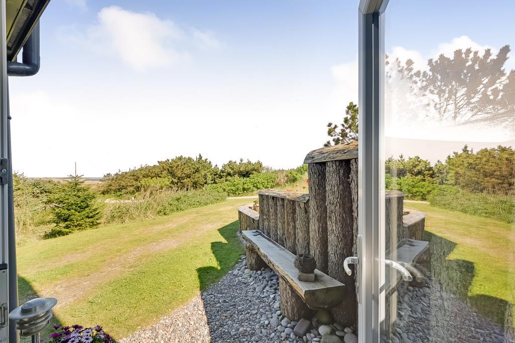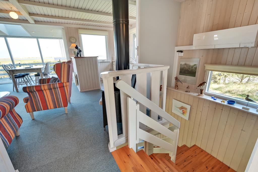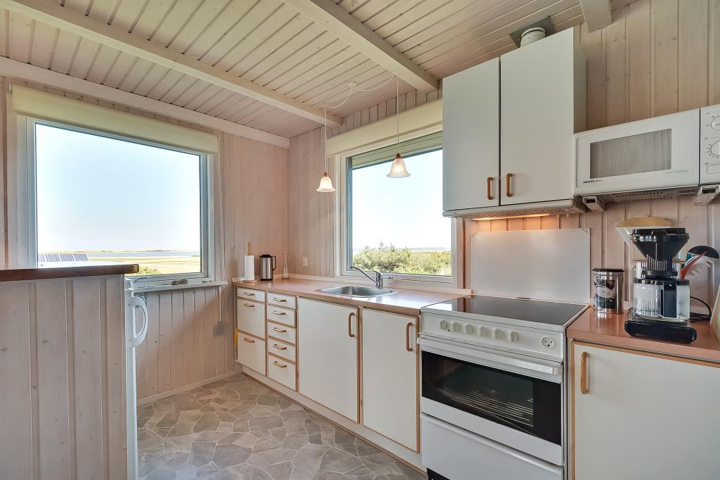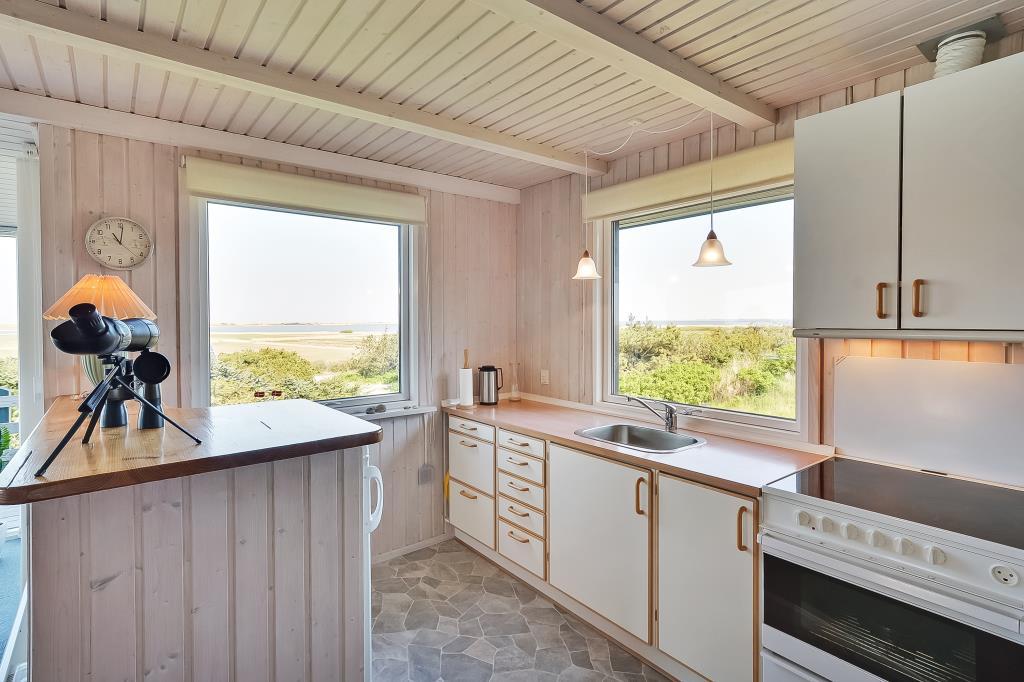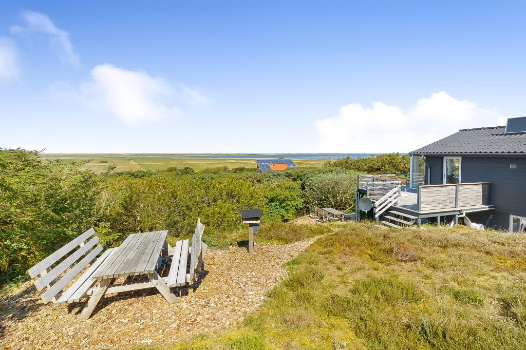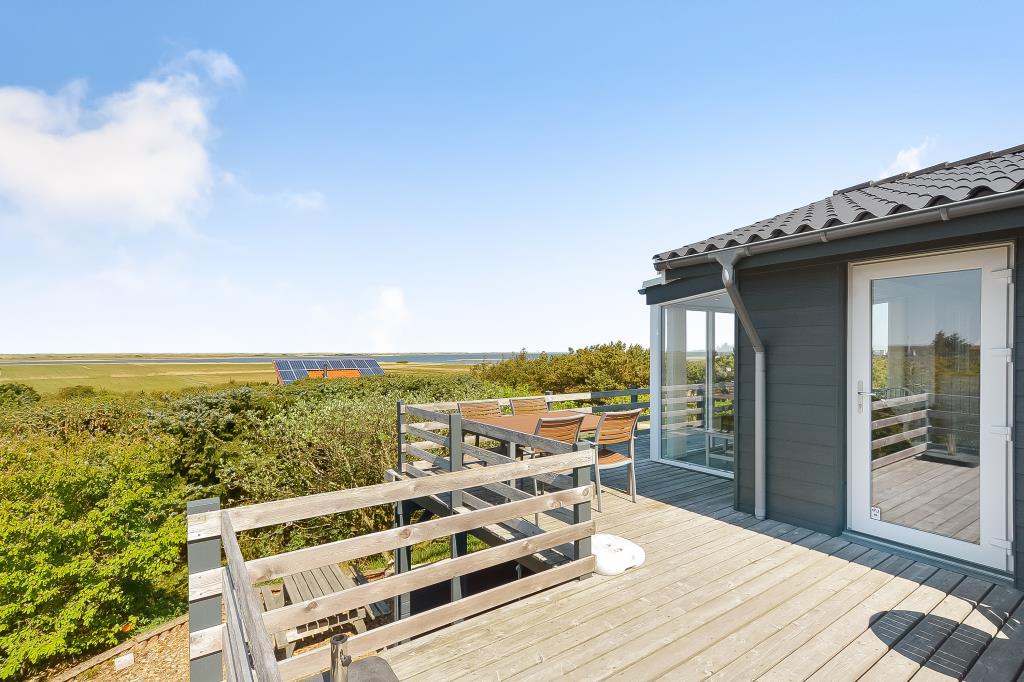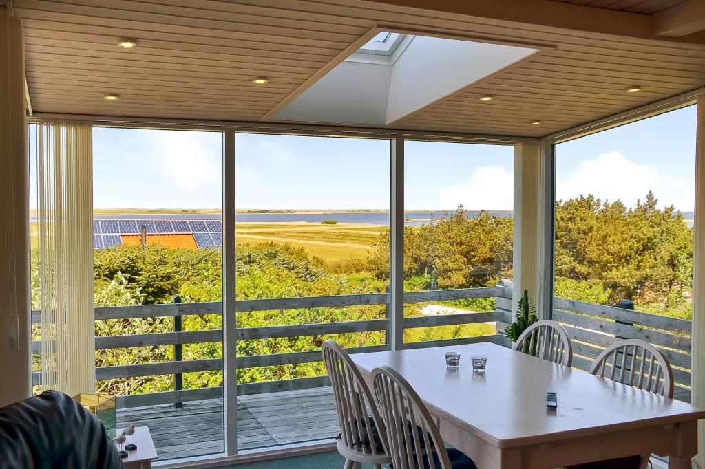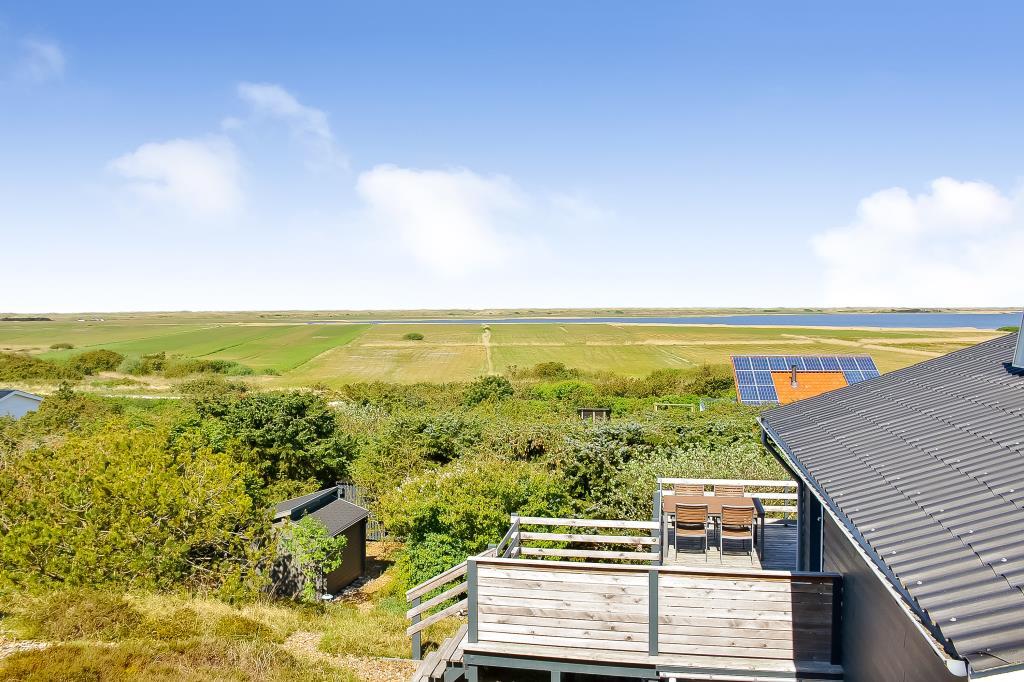 Fra både køkken, stue og terrasser er der et fantastisk panorama over Nissum Fjord og de grønne engarealer – med Vesterhavets klitter som en smuk baggrund.