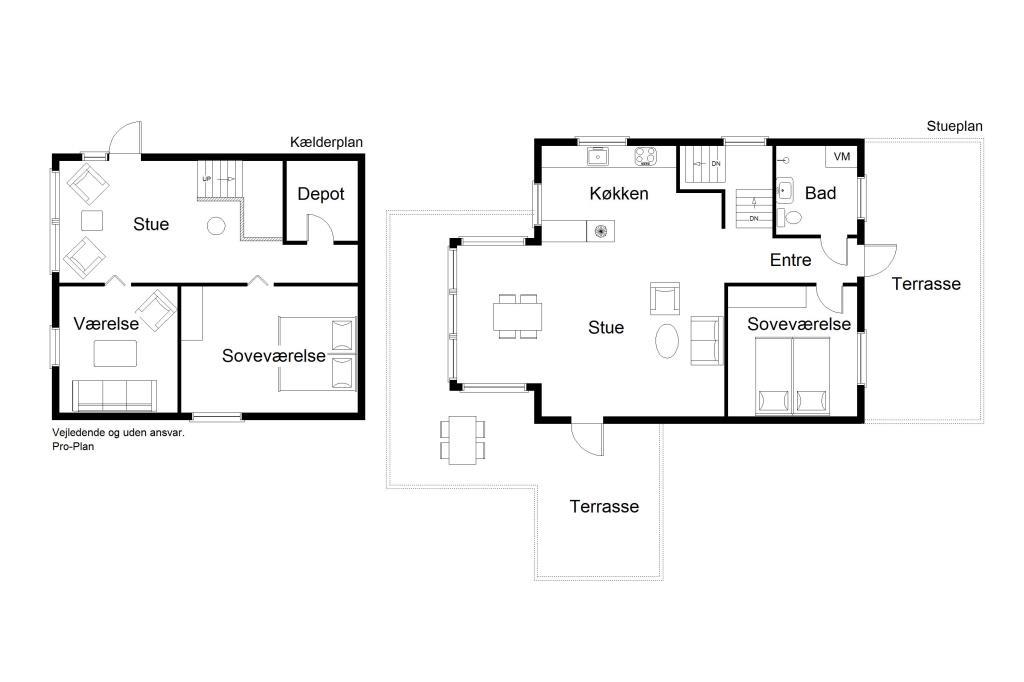 Underetage med stue, værelse/stue og stort soveværelse
