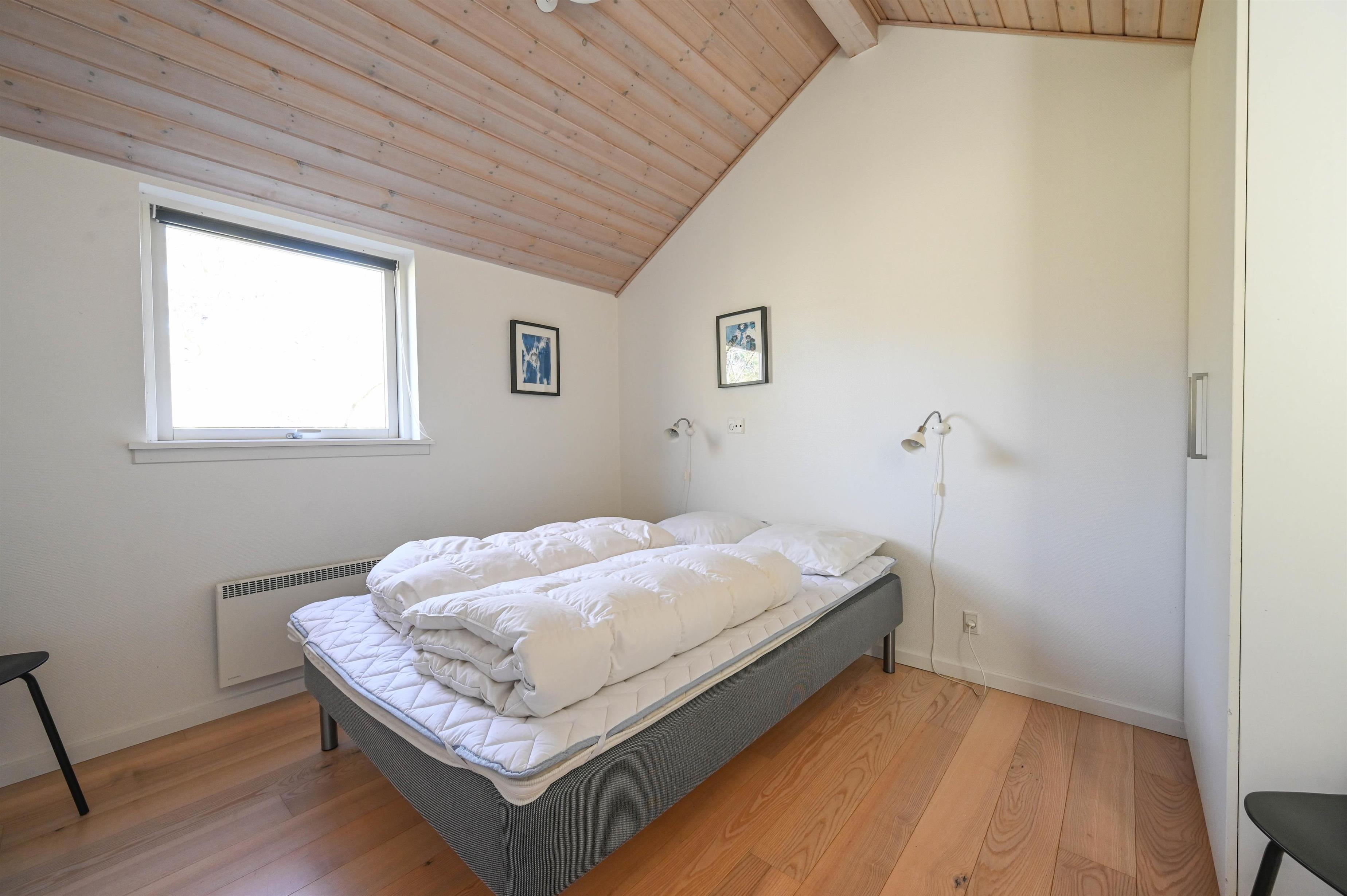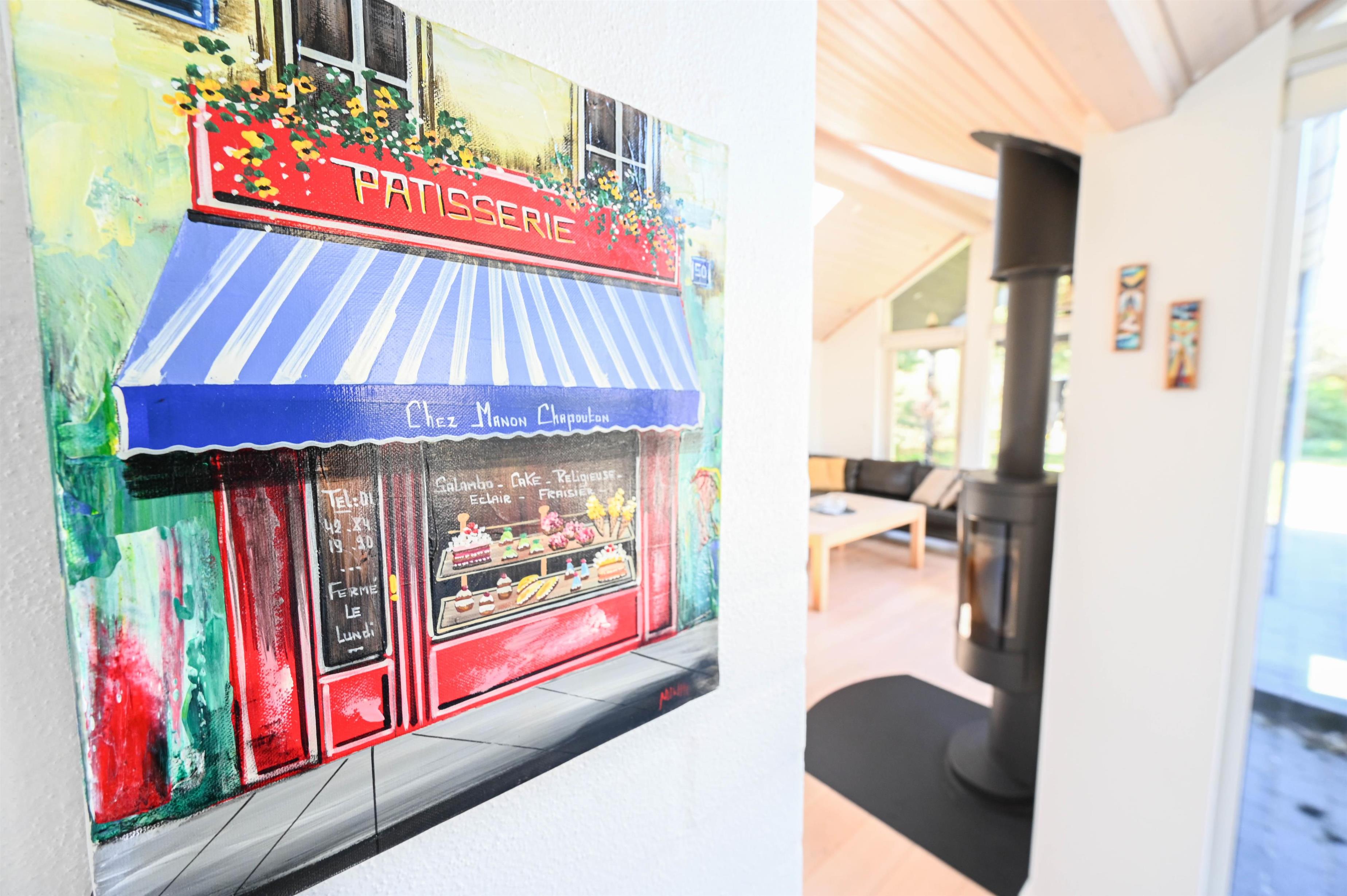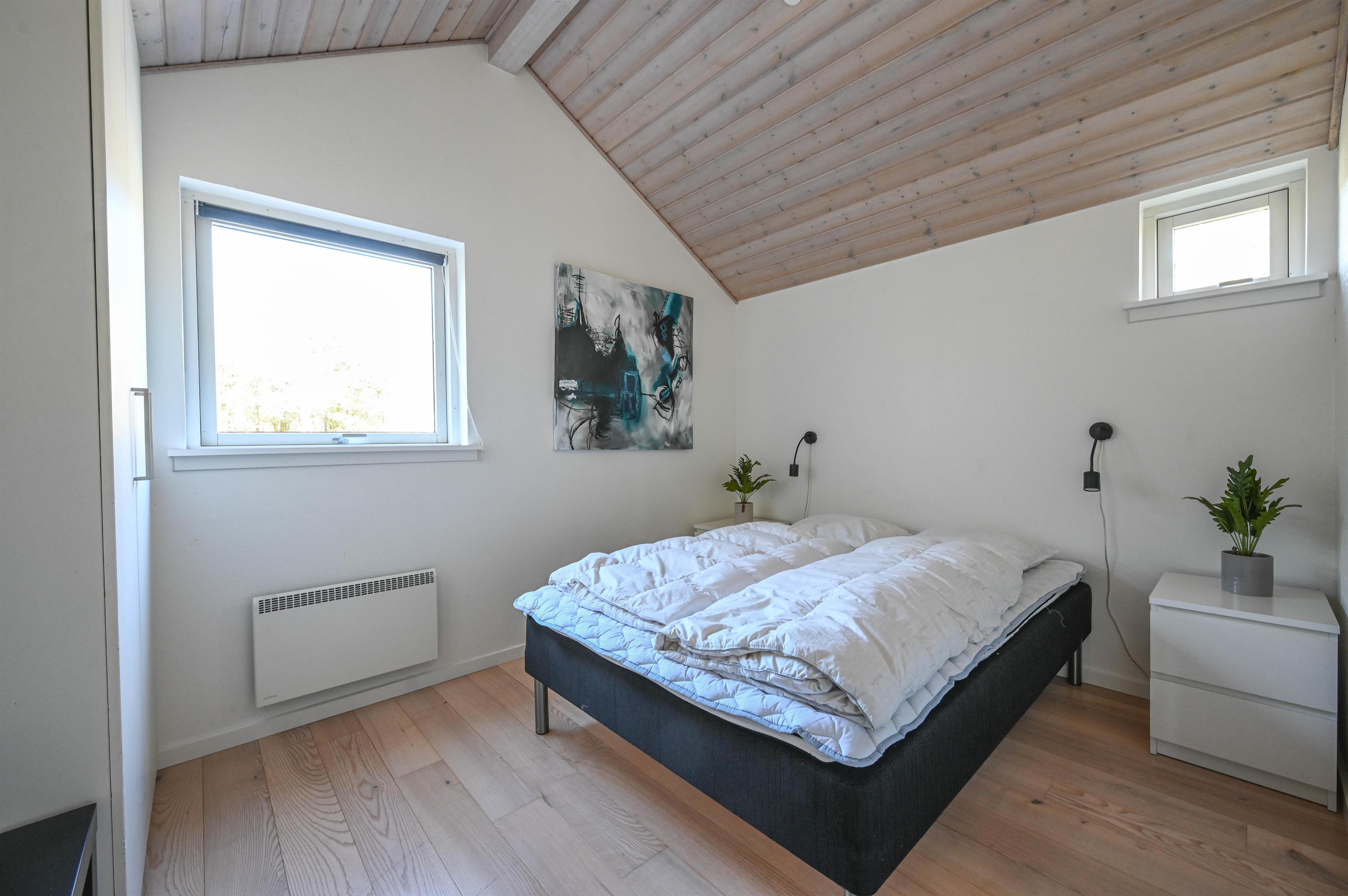 I stuen skaber brændeovnen hygge på kølige aftener, og møblerne indbyder til afslapning og samvær. Badeværelset byder på lidt ekstra luksus med nedsænket spa, og derudover findes et gæstebadeværelse med bruser.