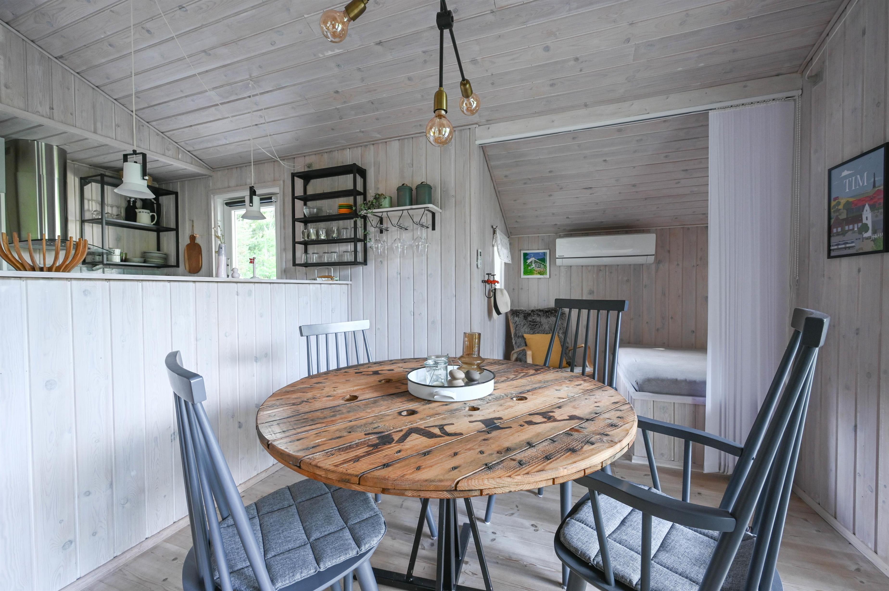 Indenfor er huset lyst, venligt og indrettet med fokus på hygge og komfort.