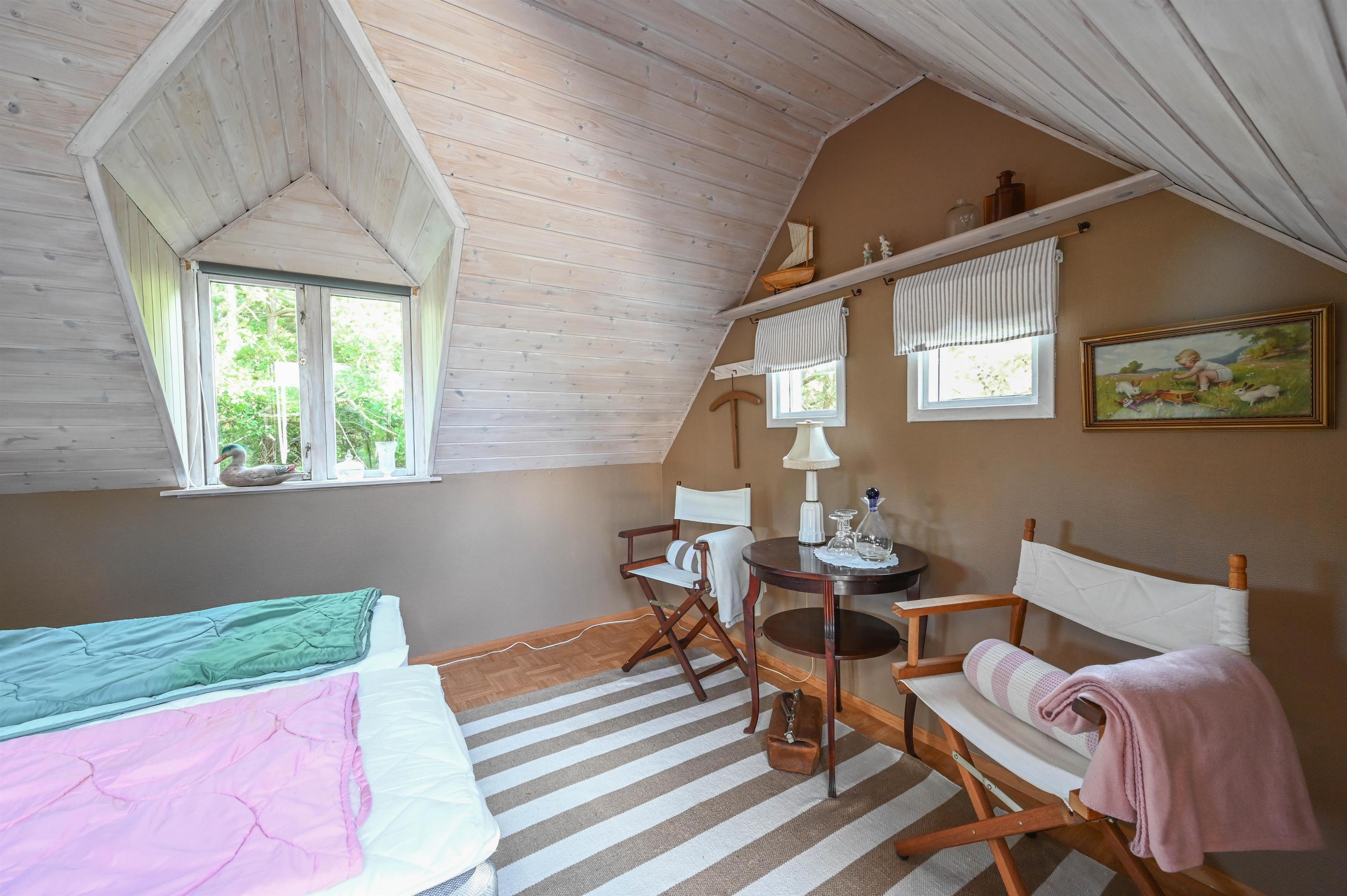 Derudover byder huset på et dejligt badeværelse med bruser og gulvvarme, et stort soveværelse med dobbeltseng samt en hems med ekstra soveplads.