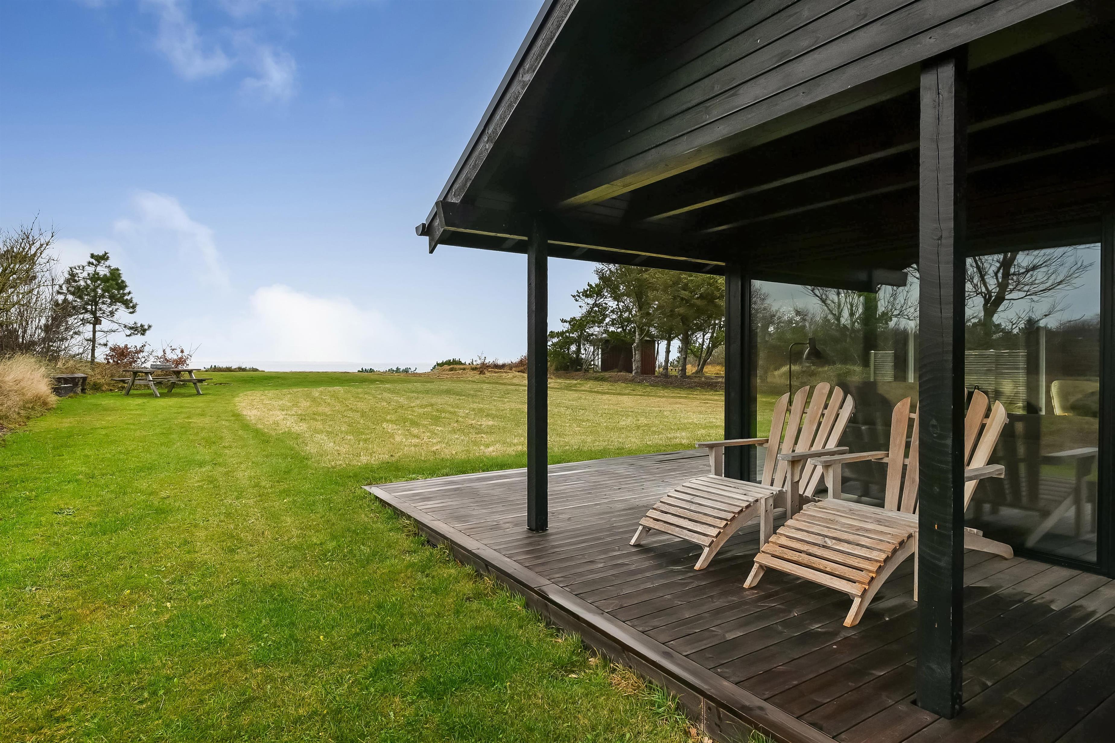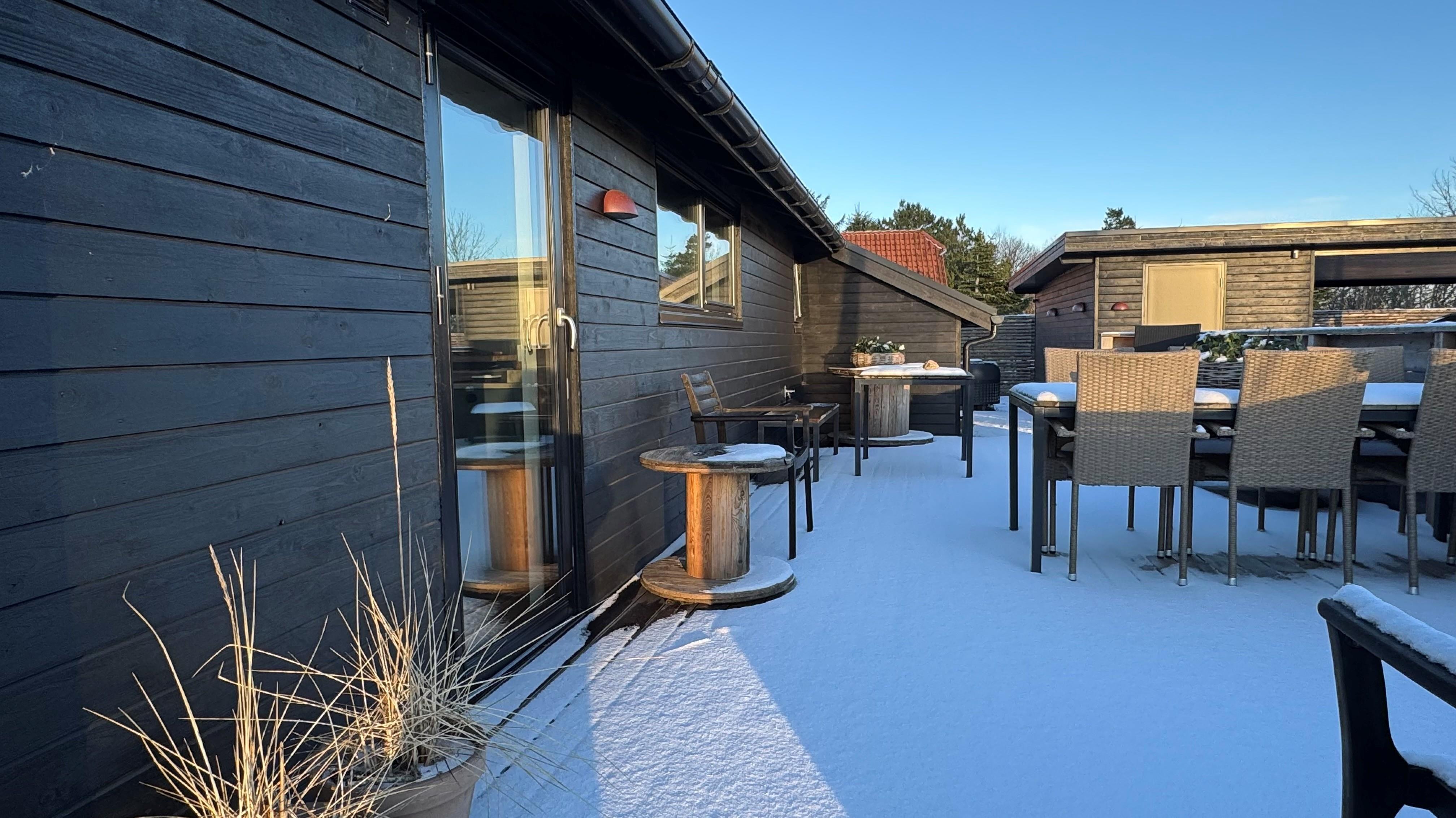 Fra stuen er der udgang til en delvist overdækket terrasse, og rundt om hele huset finder du yderligere terrasser med gode læforhold, så du altid kan finde et solrigt eller vindstille sted at opholde dig.