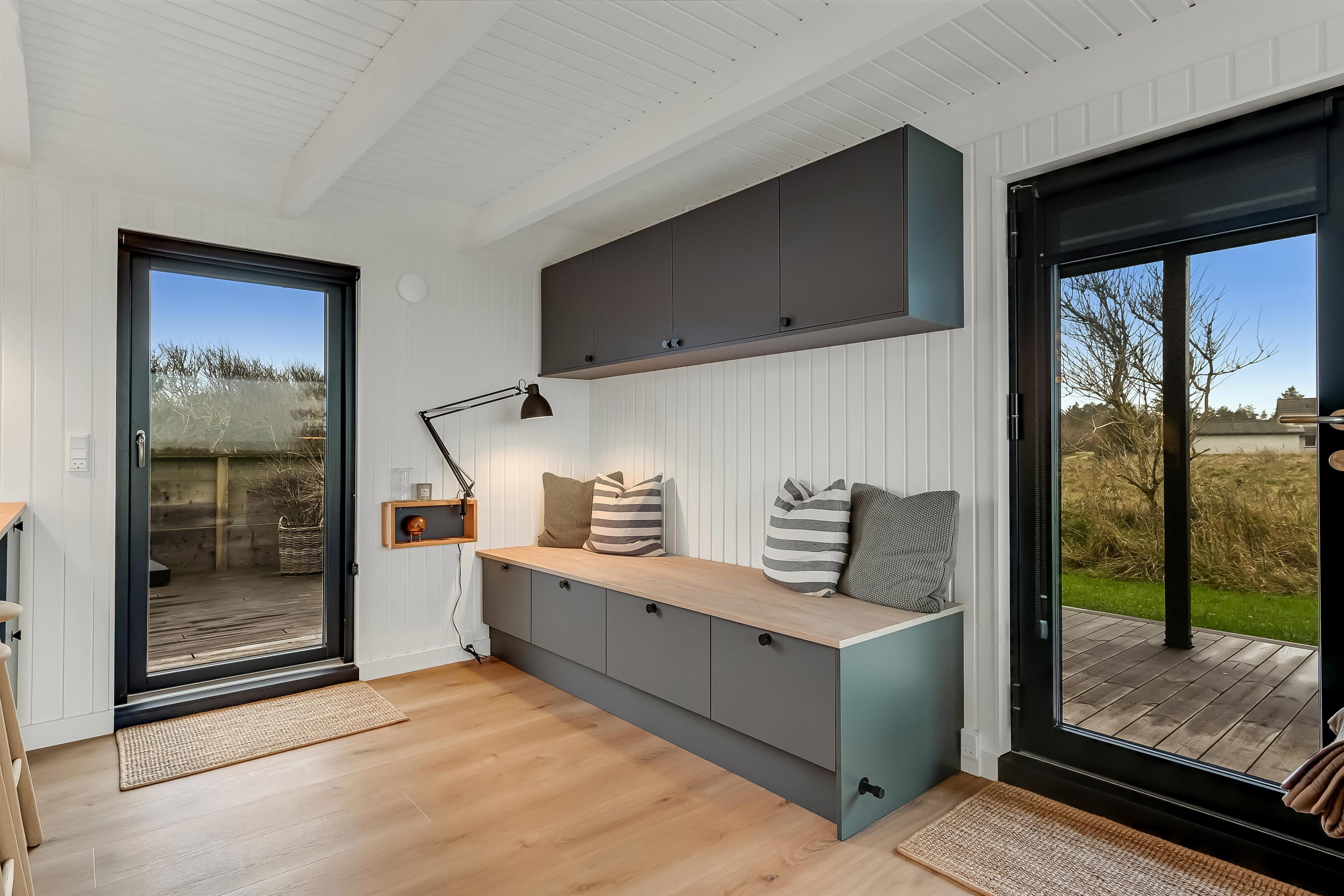 Huset fremstår overalt særdeles smagfuldt, moderne og harmonisk indrettet. Kvalitet og æstetik går hånd i hånd, og alle detaljer er nøje gennemtænkt for at skabe en afslappende og behagelig ramme for ferien. Specielt kan det bemærkes, at huset har et behageligt indeklima året rundt med gulvvarme i alle rum, som forsynes af en energieffektiv luft-til-vand-varmepumpe.
