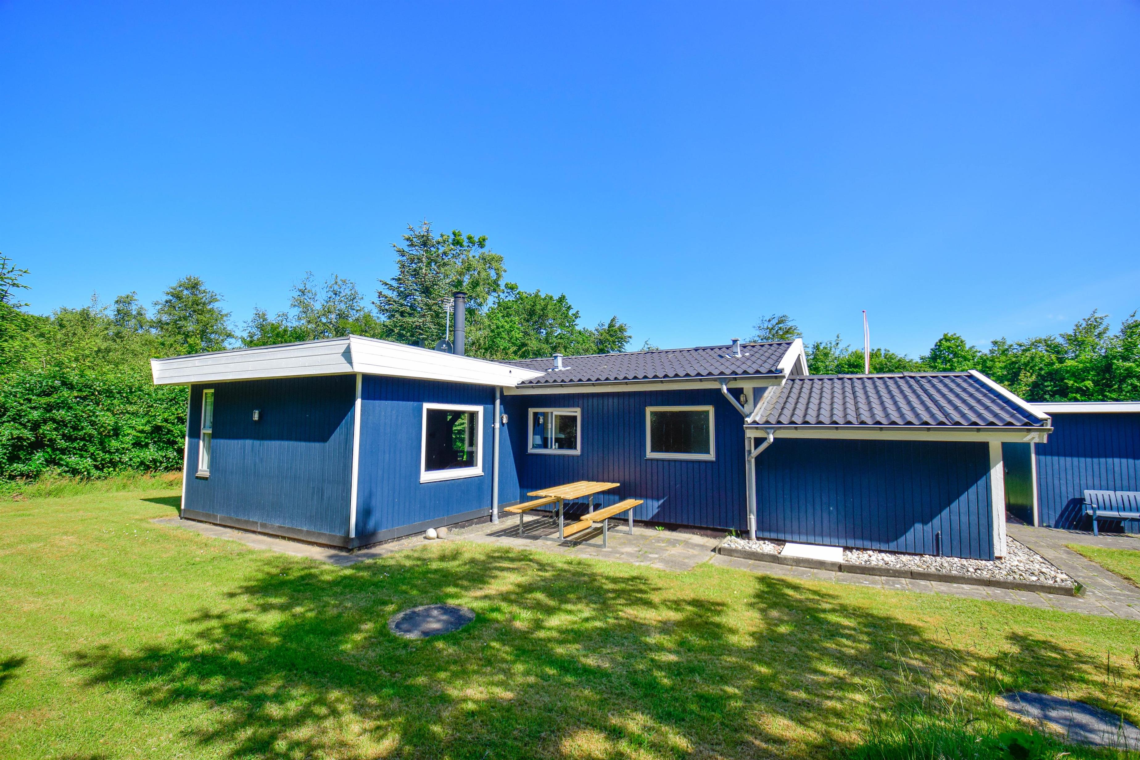 Huset er indrettet med hyggelige møbler og en varm atmosfære, og brændeovnen i stuen er med til at skabe den helt rigtige feriestemning – uanset årstid. Det er et oplagt valg for familien, der ønsker ro, nærvær og ægte sommerhusstemning tæt på naturen.