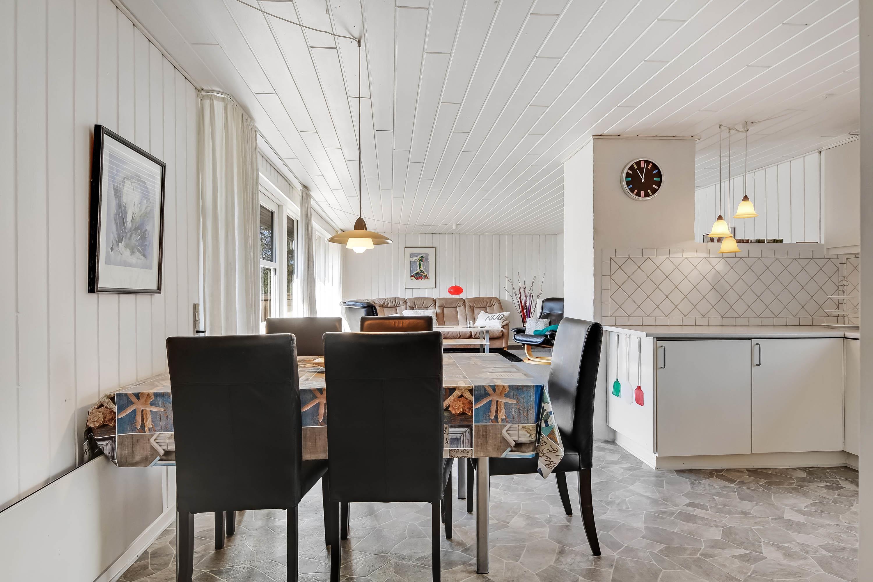 Feriehuset er lyst og indbydende med god plads til hele familien. Fra entréen kommer man ind i en gang med hyggelige lænestole – et lille hjørne til afslapning eller en god bog.