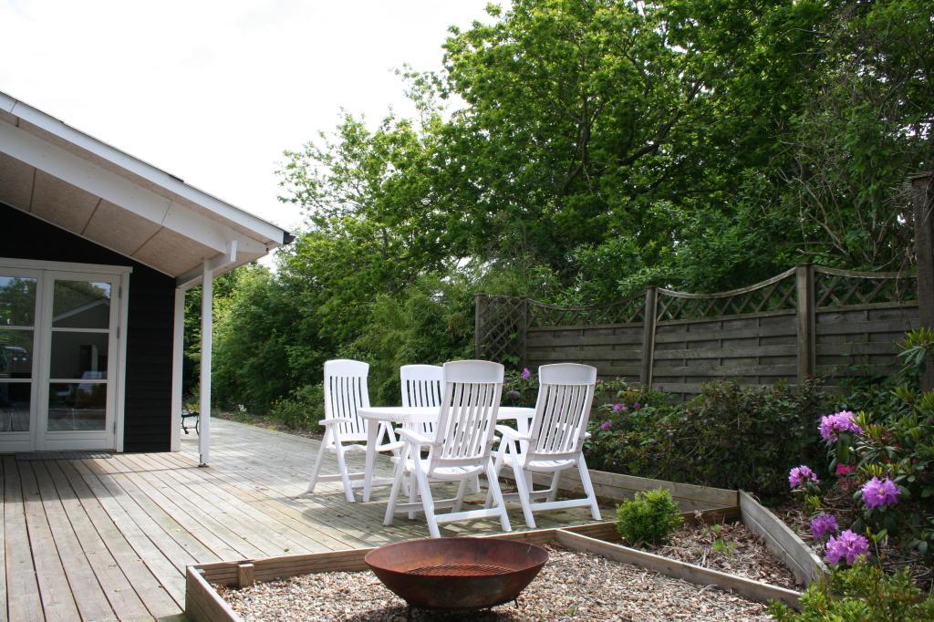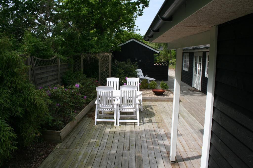 Den 1.000 m² store lukkede grund giver trygge og ugenerte rammer for både afslapning og leg. Omkring huset finder du flere flotte træterrasser – nogle delvist overdækkede – så du altid kan finde læ og nyde solen dagen igennem.