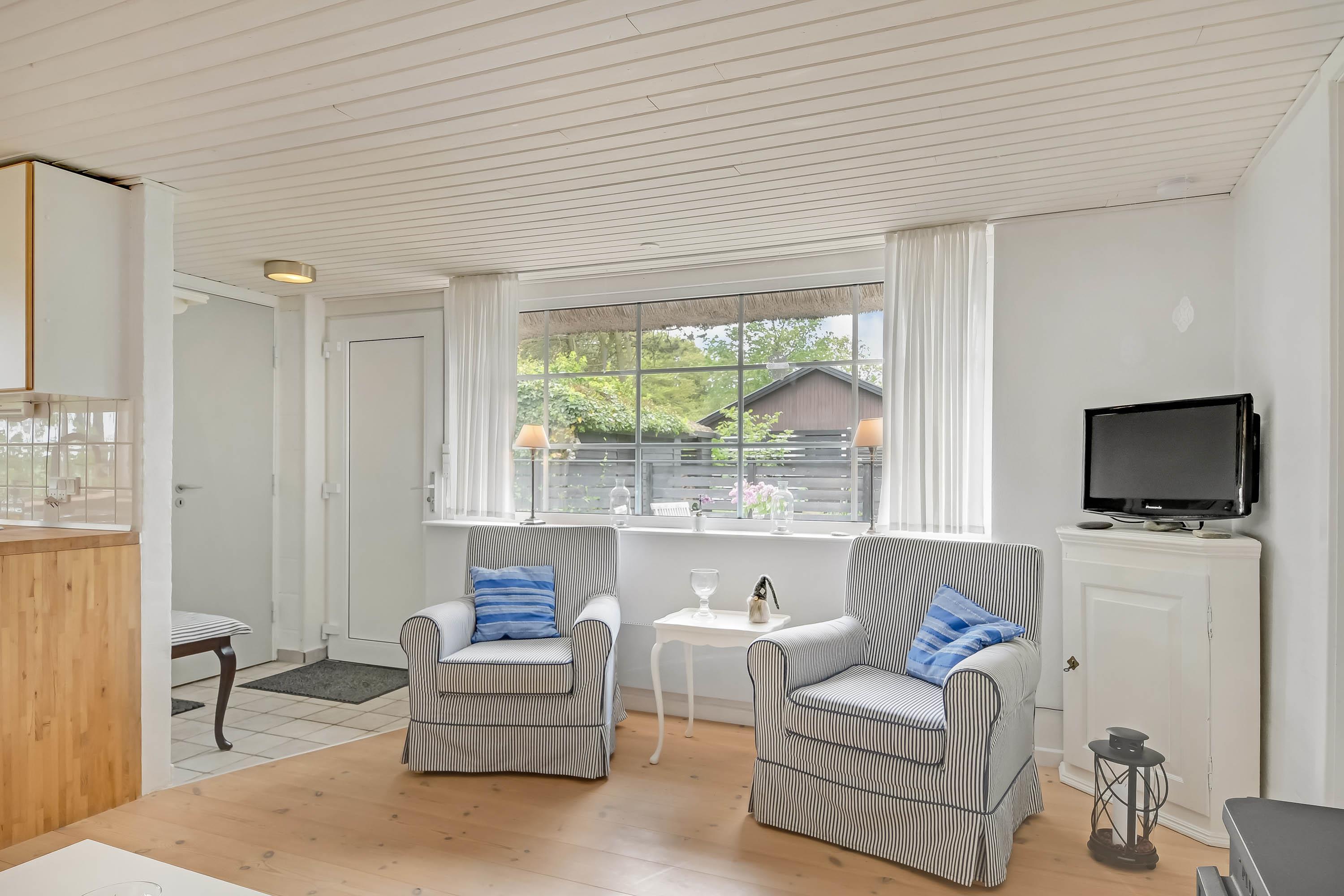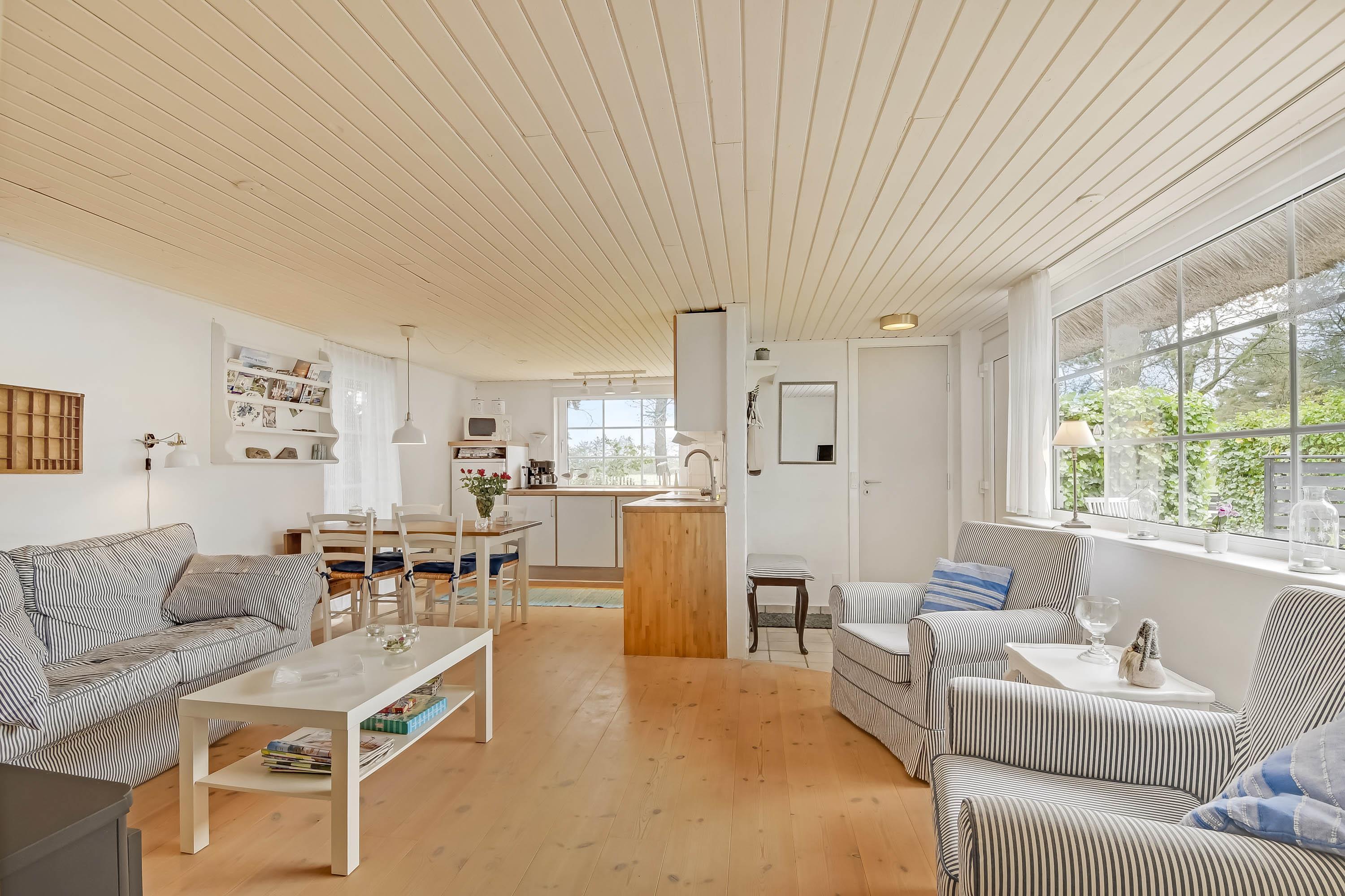 Feriehuset fremstår pænt, velholdt og med en varm og indbydende atmosfære. Det lyse køkken har et lille kig til Nissum Fjord, og i den hyggelige stue er der både spiseplads, sofagruppe og brændeovn – perfekt til hyggelige aftener efter en dag i naturen. Her er der fokus på komfort og samvær, og indretningen er enkel, funktionel og hjemlig.