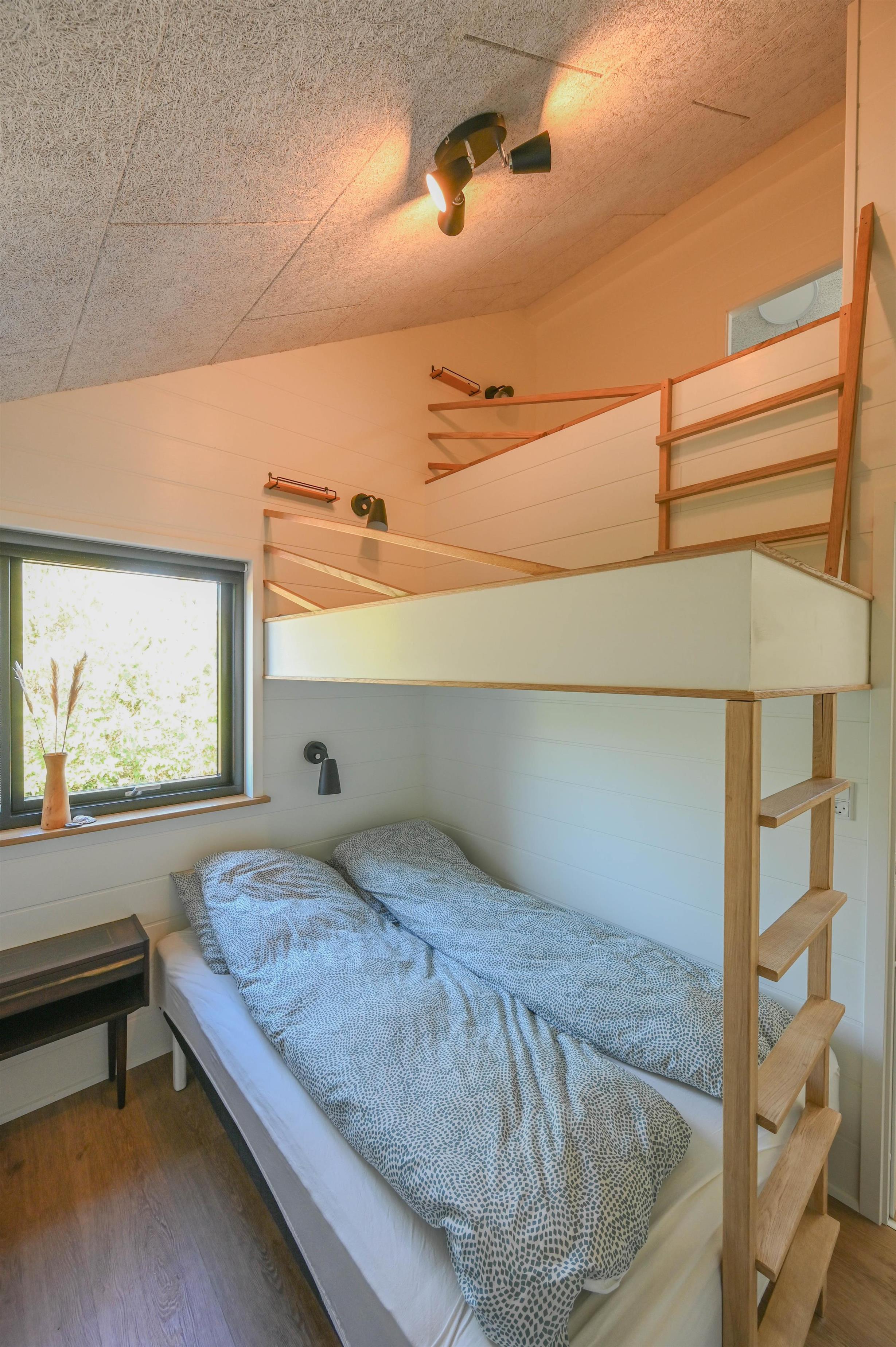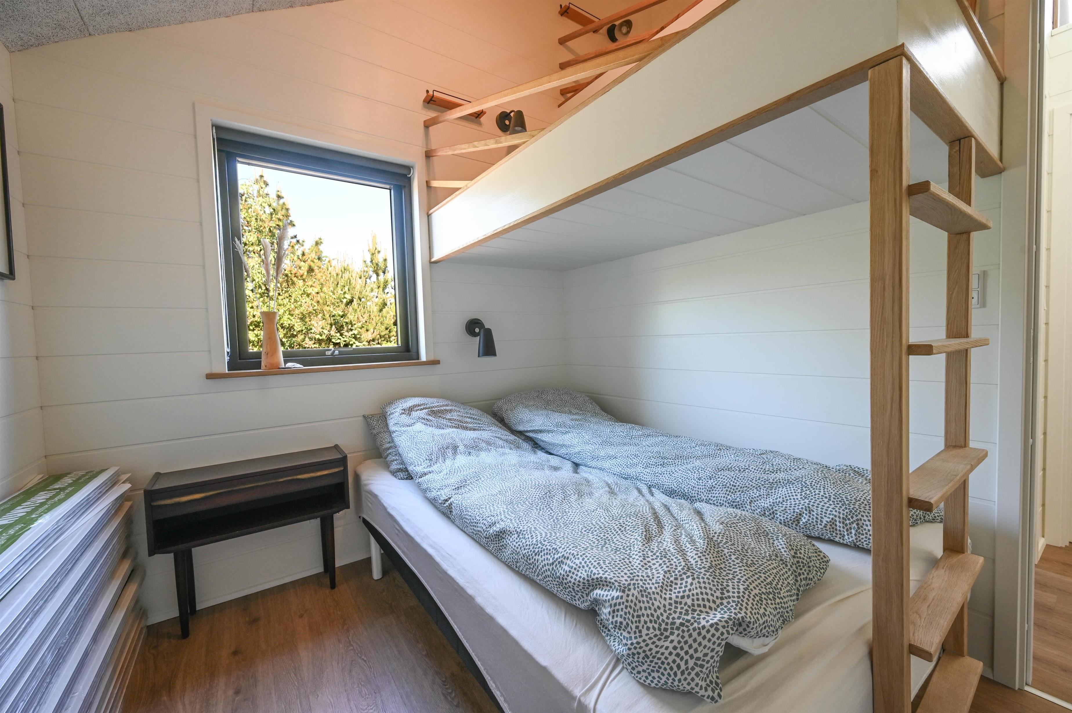Huset har tre gode værelser – to med dobbeltseng og ét med en trekvart seng samt køjesenge, som børnene vil elske. De to flotte badeværelser har bruser og toilet, og det ene desuden badekar og udgang til terrasse – ideelt efter en tur til stranden, hvor man lige skal skylle sandet af.