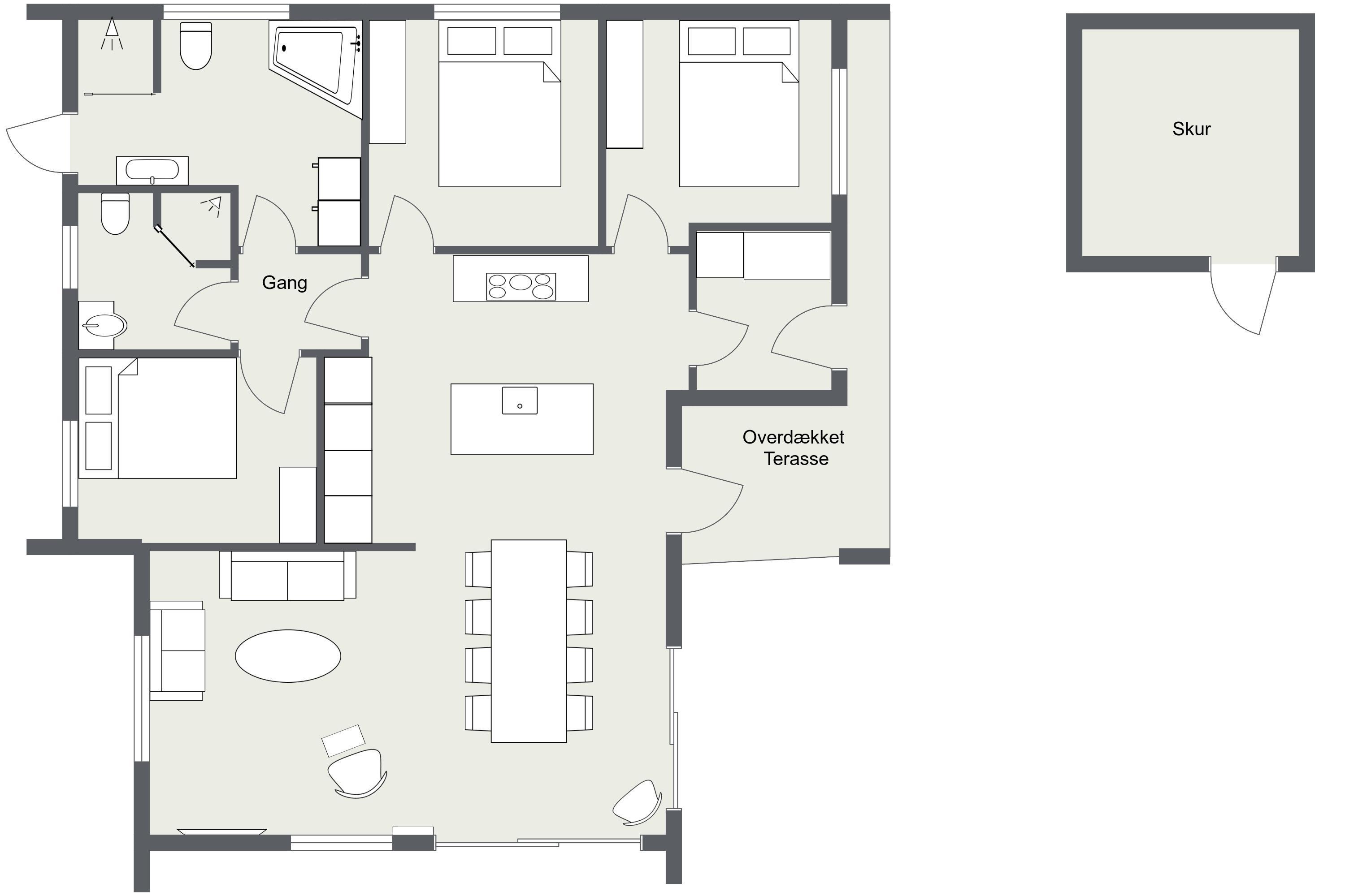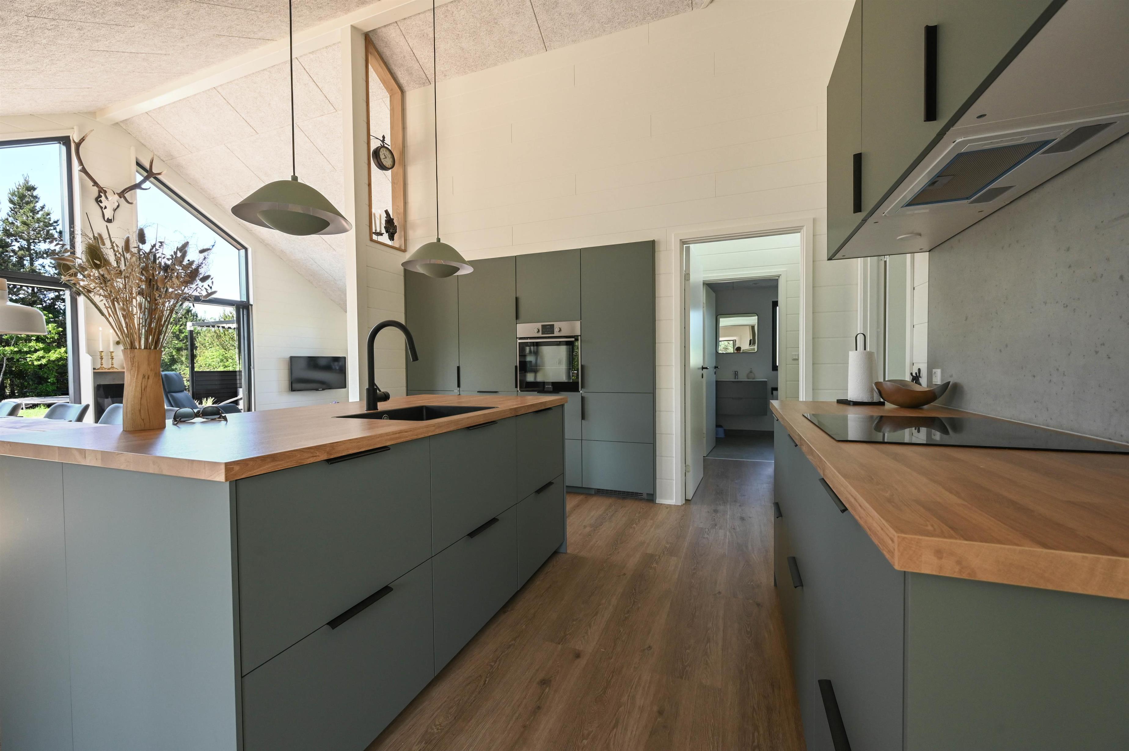 Det store køkken/alrum er husets naturlige samlingspunkt. Her er der højt til loftet, masser af lys og god plads til hele familien. Køkkenet er veludstyret, og fra alrummet er der direkte udgang til flere terrasser, hvor du kan nyde solen eller et måltid i det fri.